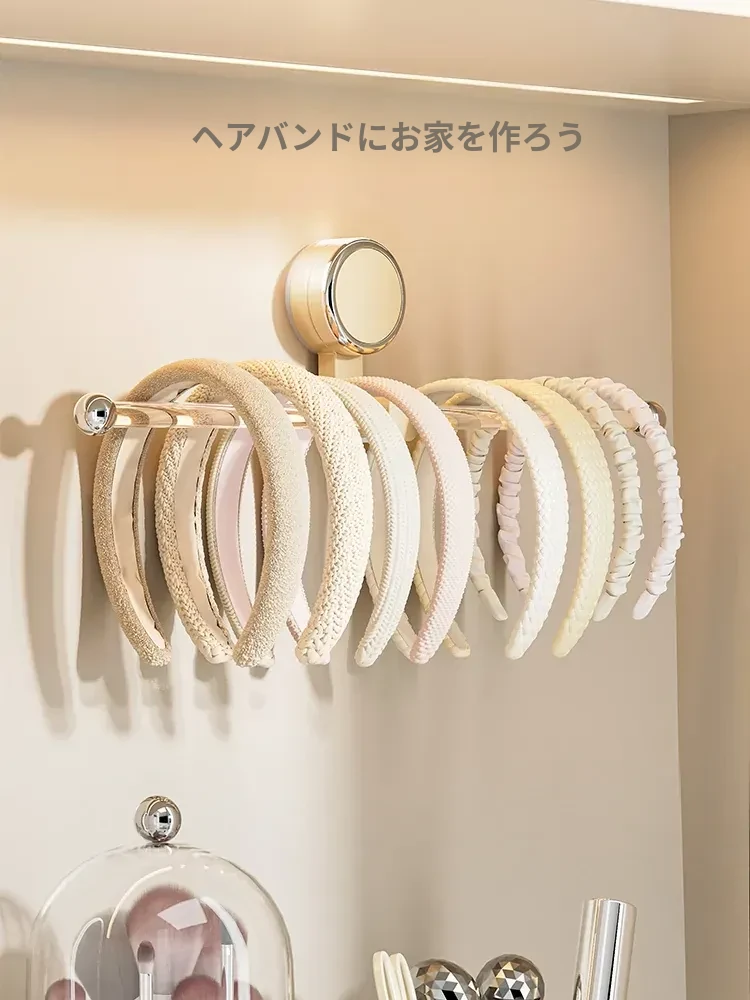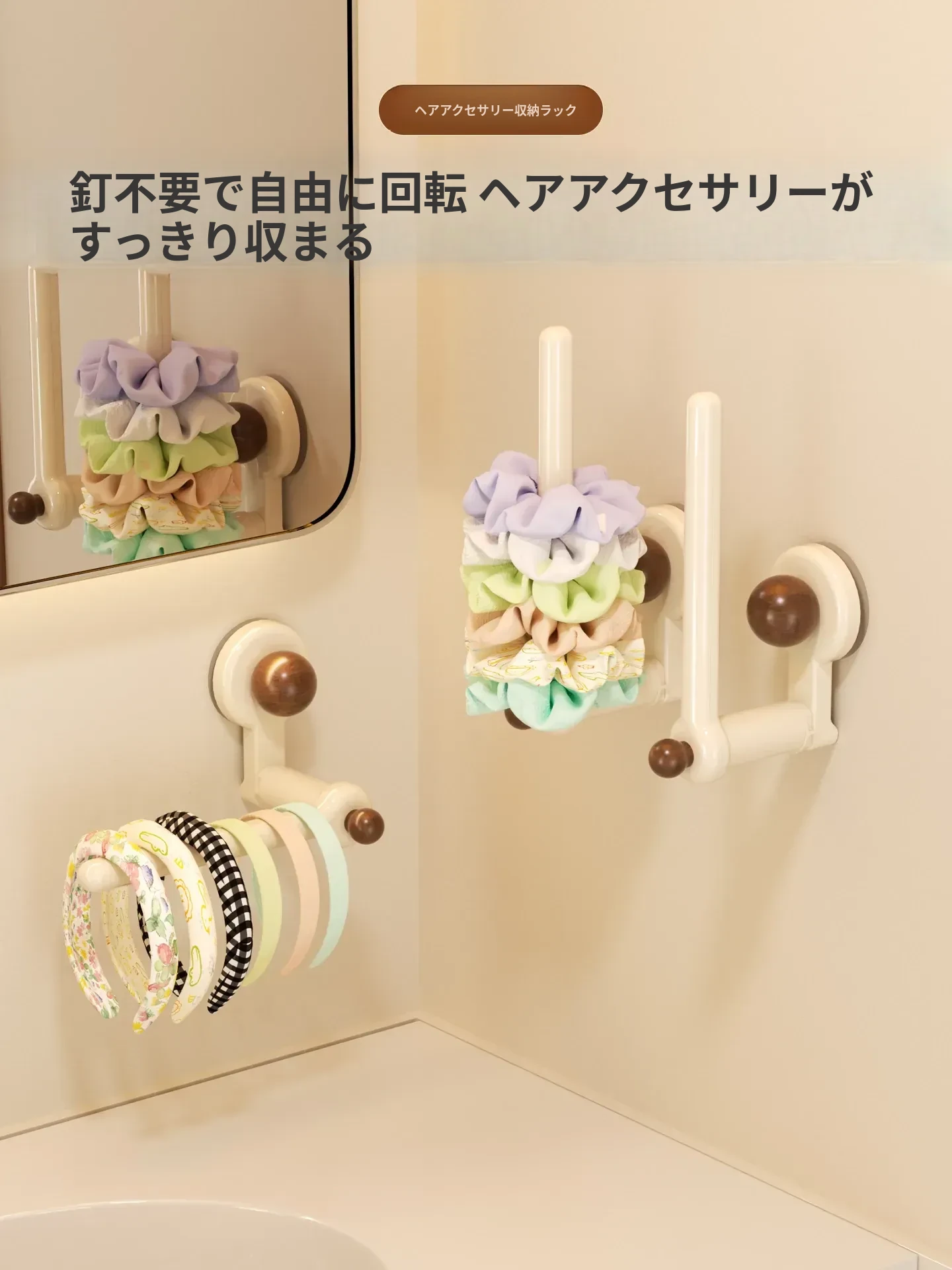 吸盤式ヘアバンド収納便利グッズ!壁掛けで穴あけ不要、髪のゴムやクリップをスマートに整理。お風呂場やトイレに最適なアイデア商品!