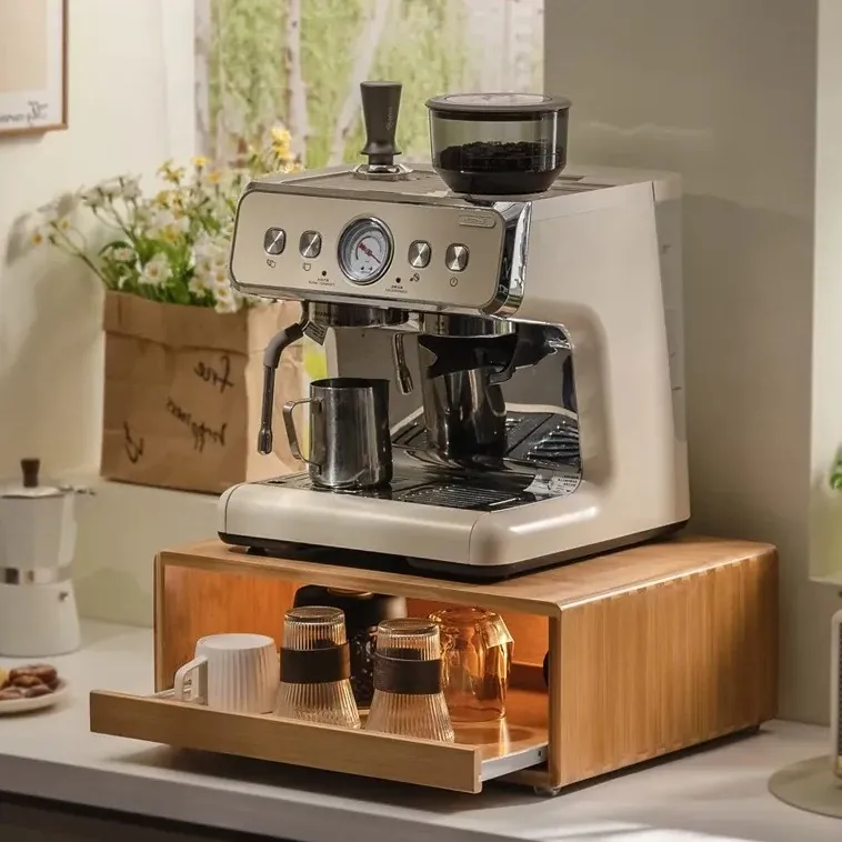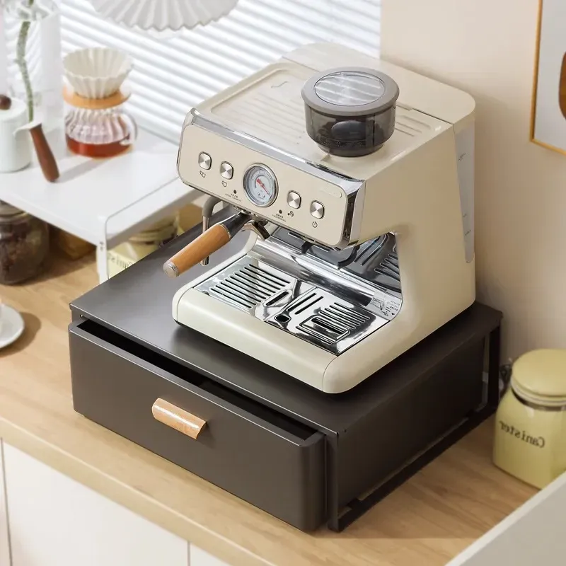 デコハブ 中古風コーヒーメーカー収納ラック デスクトップ引き出し式マグカップテーブル 防塵カップ収納ボックス - おしゃれなデザインで、キッチンやリビングをスッキリ整理!