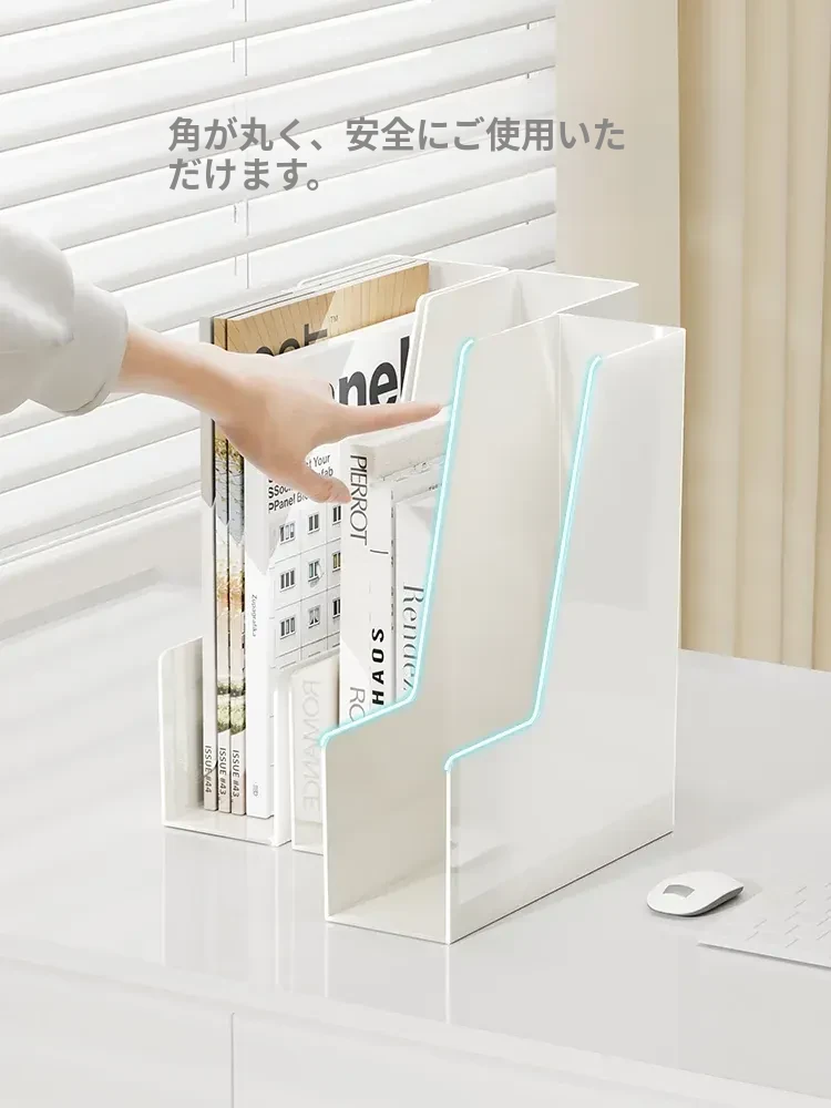 デスク上で便利に使える!学生向け書籍スタンド・仕切りボード。A4サイズの書類や資料をすっきり収納できるオフィス用ブックシェルフ。すべての文房具を整理整頓!