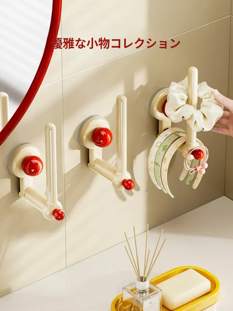 吸盤式ヘアゴム収納フック - バスルーム用壁掛けでスペースを有効活用!ヘアアクセサリーをスッキリ整理し、毎日のスタイリングをもっと便利に。おしゃれで機能的な収納アイテム!