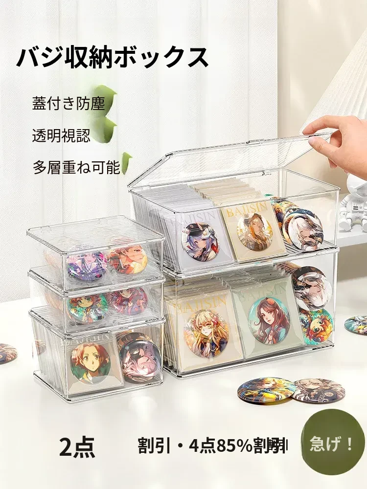 透明アクリル収納ボックス 蓋付き 整理ラック 手帳周辺グッズやバッジ・ブローチのディスプレイに最適!おしゃれで機能的な収納で、あなたのコレクションを美しく演出します。