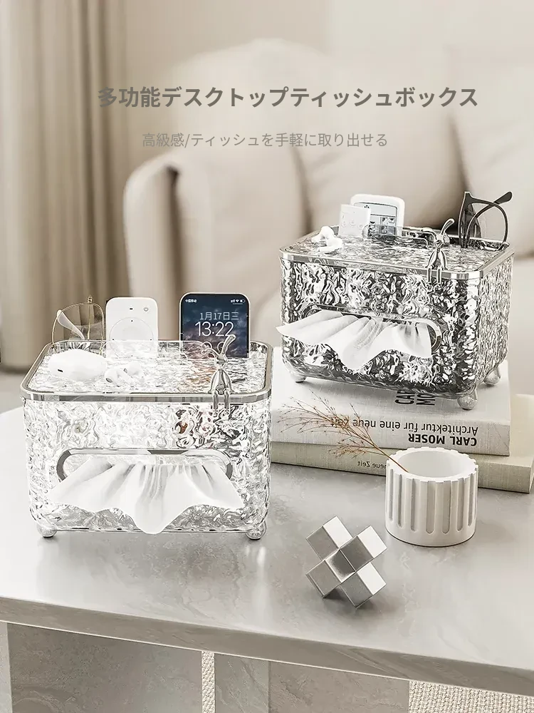 高級感溢れる多機能ティッシュボックス|リビング、寝室、ダイニングに最適!リモコンや小物も収納可能なスタイリッシュなデザインで、あなたの生活空間を華やかに演出します。