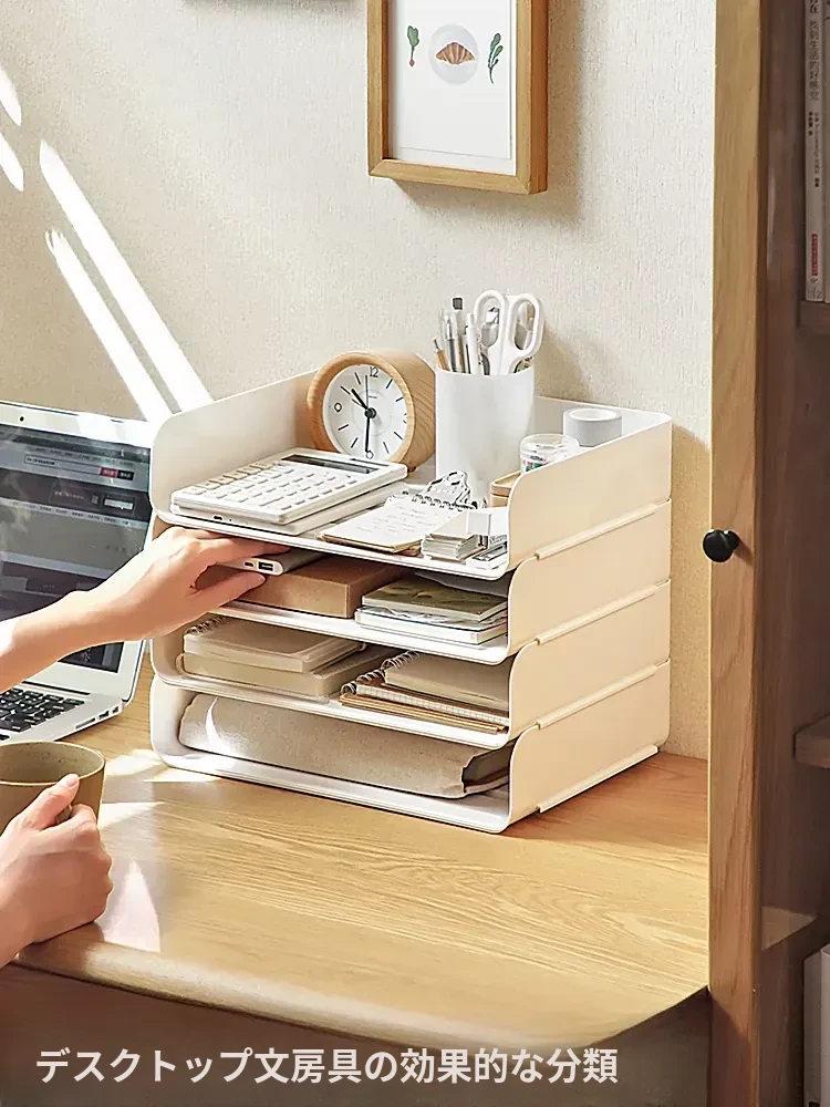 多層オフィスデスク用ファイル収納ボックス 学生向け文具・雑貨整理 A4用紙や領収書もスッキリ整理!デザイン性と機能性を兼ね備えた必需品!