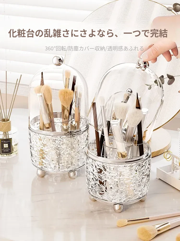 メイクブラシ収納ケース 回転式 防塵カバー付き コスメ収納ボックス リップスタンド&アイシャドウブラシ用メイクバケツ すっきり整理で美しいメイク環境を実現!