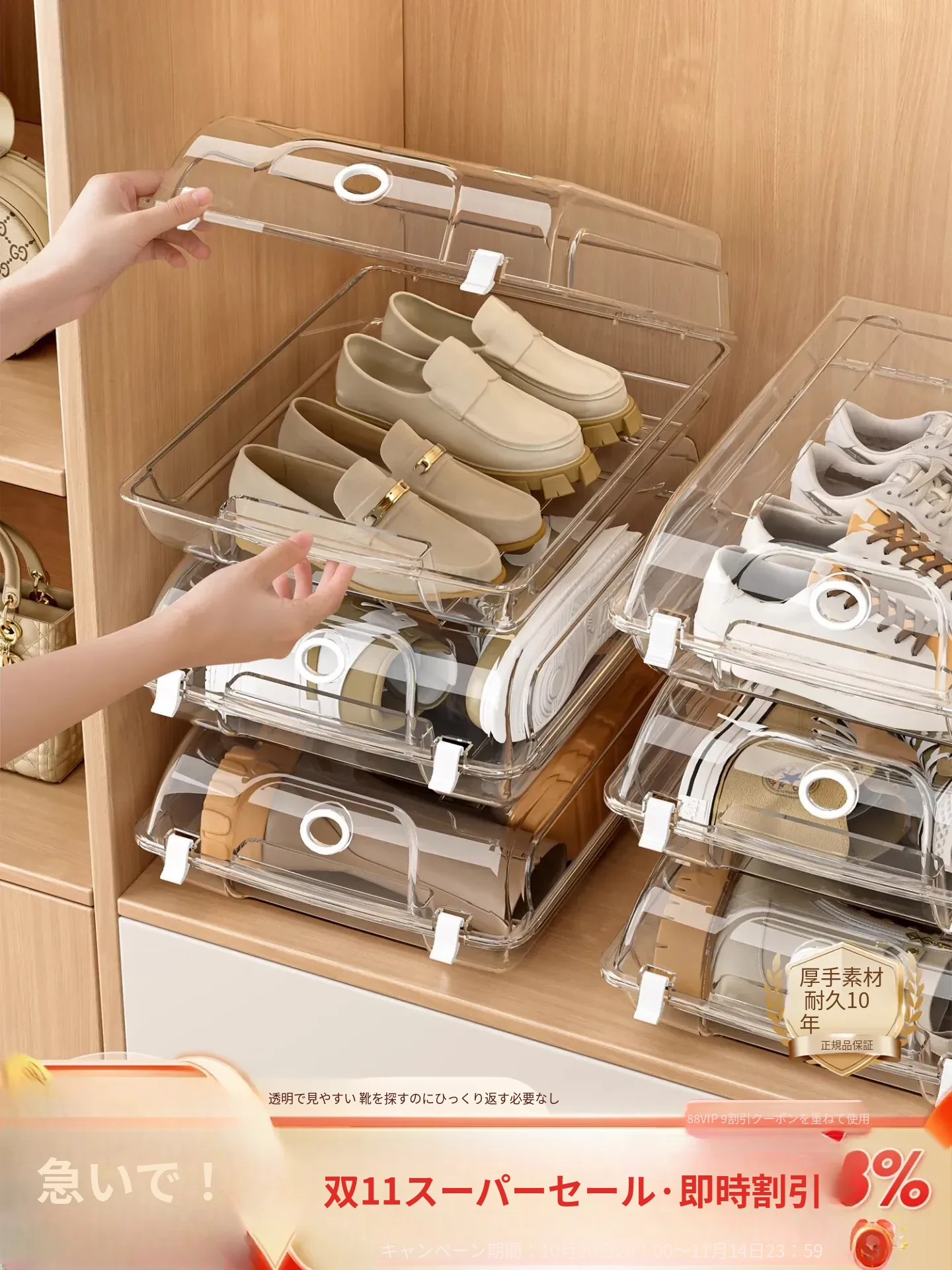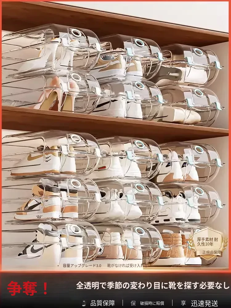 透明靴箱 - スペースを節約する靴収納の必需品!プラスチック製で防塵効果抜群の靴ラック。家庭用に最適な収納ボックスで、靴をきれいに整理整頓!