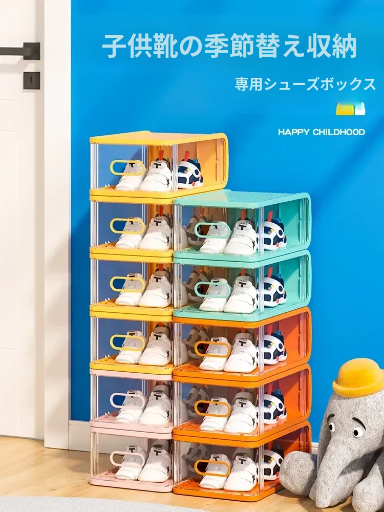 子供用おもちゃ・靴収納ボックス 透明なシューズストレージボックス 省スペースで防塵!整理整頓に最適な靴箱、かわいいデザインでお部屋をスッキリ!