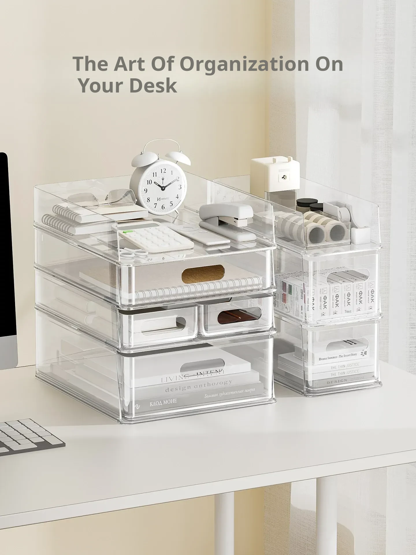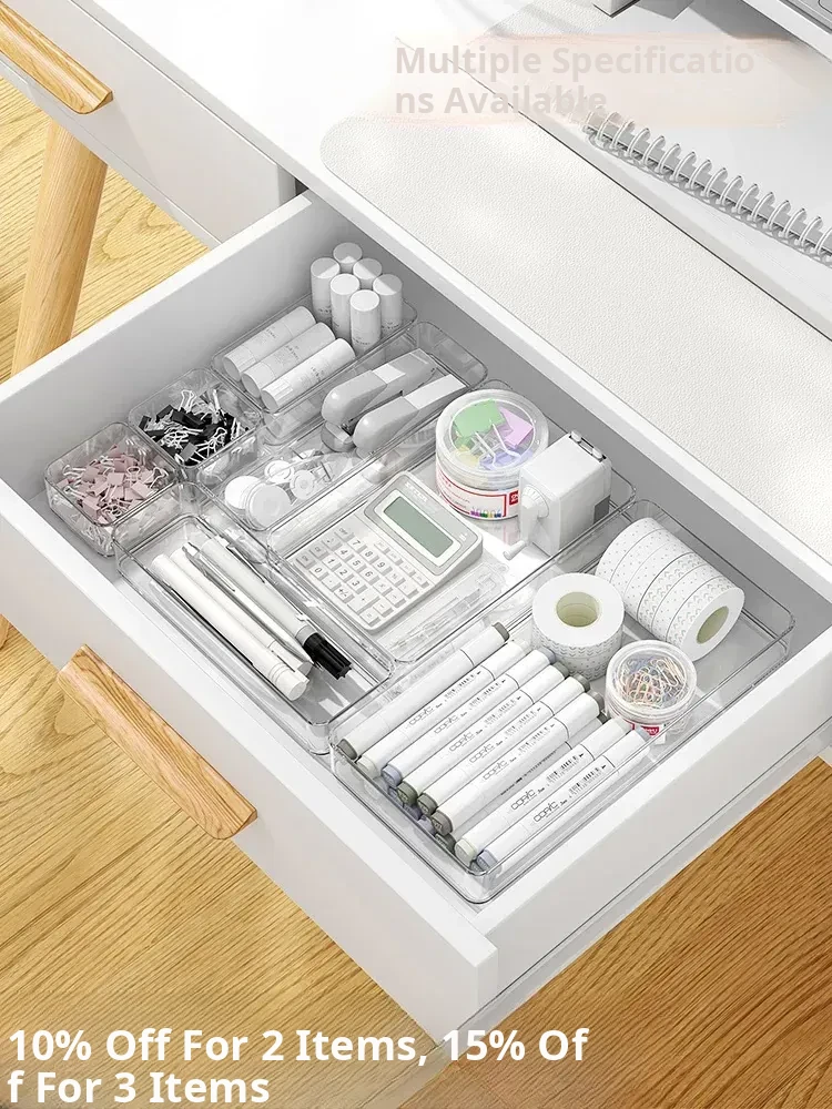Japanese Style Transparent Drawer Organizer - Stackable Desktop Storage Box with Built-in Dividers for Home Use, Perfect for Sorting Stationery and Miscellaneous Items