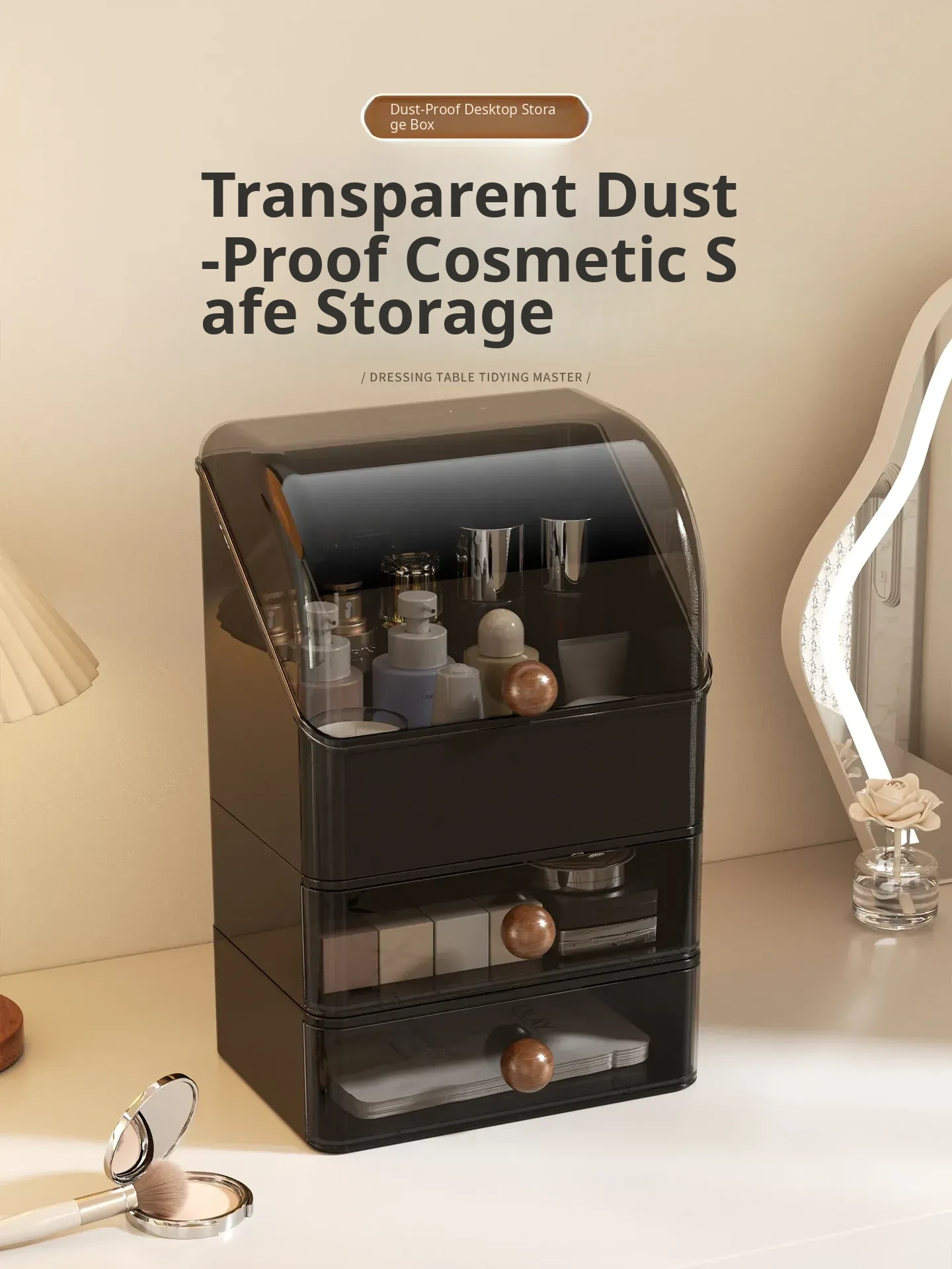 Premium Large Capacity Dustproof Cosmetic Storage Box with Divided Drawers - Elegant Makeup Organizer for Skincare Products and Vanity Essentials