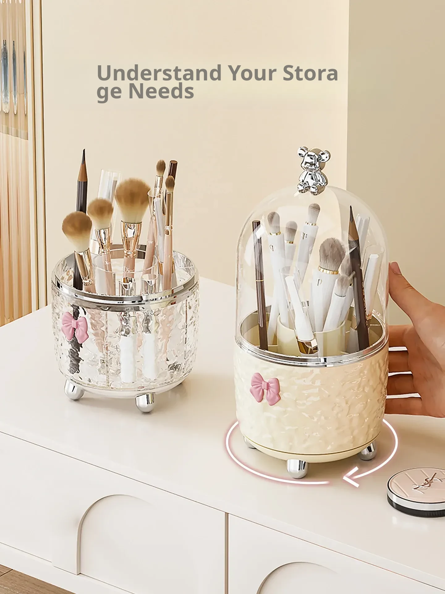 Rotating Makeup Brush Organizer with Dustproof Lid - Stylish Storage Box for Vanity, Perfect for Eyeshadow, Lipstick, and Eyeliner - Keep Your Beauty Essentials Tidy!