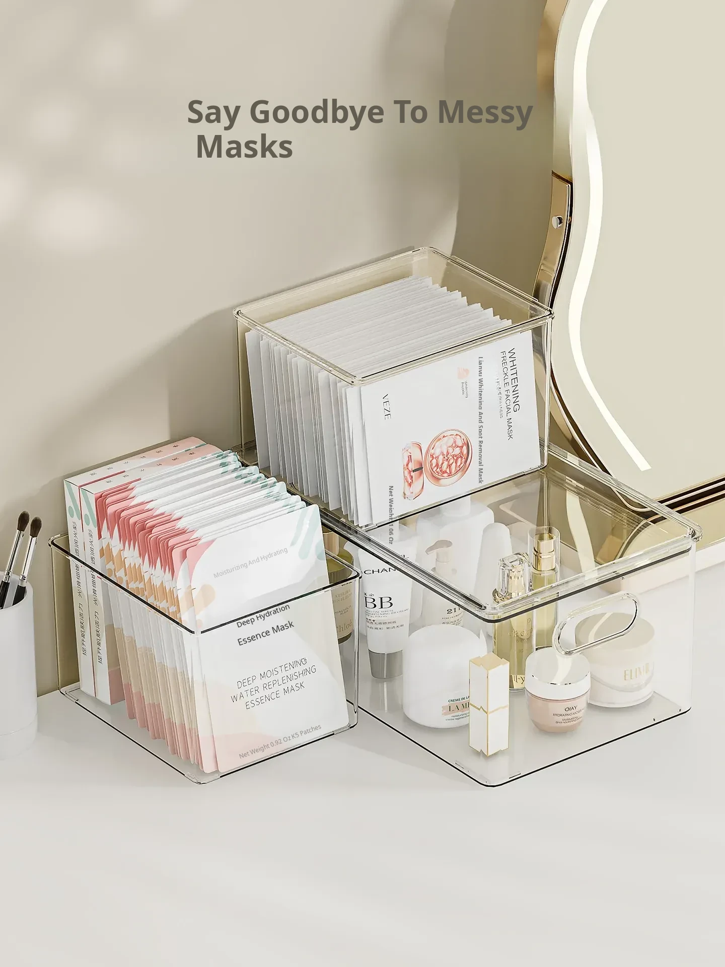 Acrylic Face Mask Organizer Box - Stylish Desktop Makeup Storage for Skincare Products, Clear Cosmetic Display Rack for Your Vanity