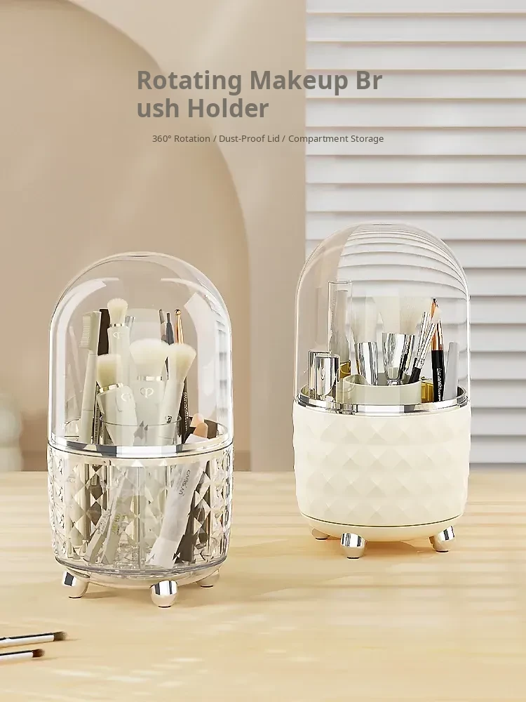 Rotating Makeup Brush Holder with Dustproof Lid - Stylish Desktop Organizer for Lipsticks, Eyeshadow Brushes, and Makeup Tools. Perfect for Your Vanity!