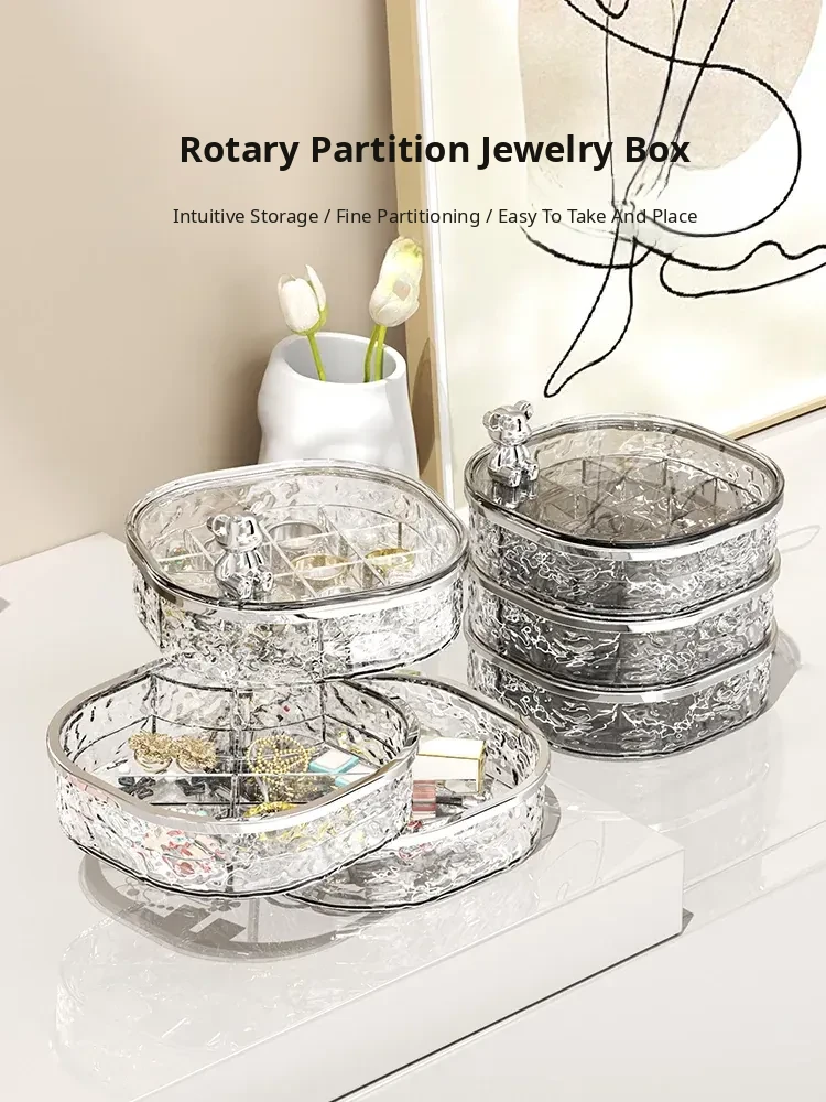 Elegant Multi-Layer Jewelry Box with Dividers - Stylish Rotating Organizer for Earrings, Hair Clips, and Accessories - Perfect for Hair Ties and Hairpins Storage