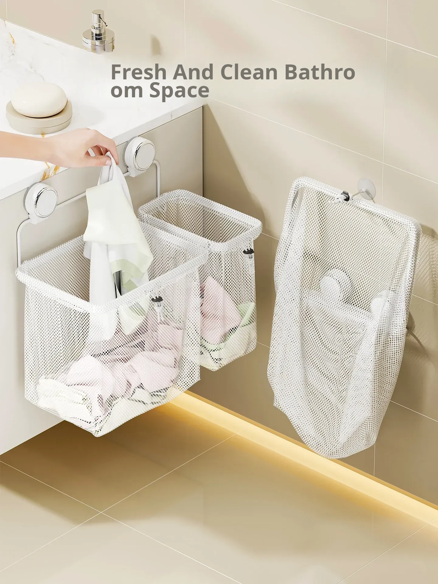 Foldable Wall-Mounted Laundry Basket with Suction Cups - Ideal for Dirty Clothes Storage in Bathroom and Laundry Room, Space-Saving Design for Convenient Organization