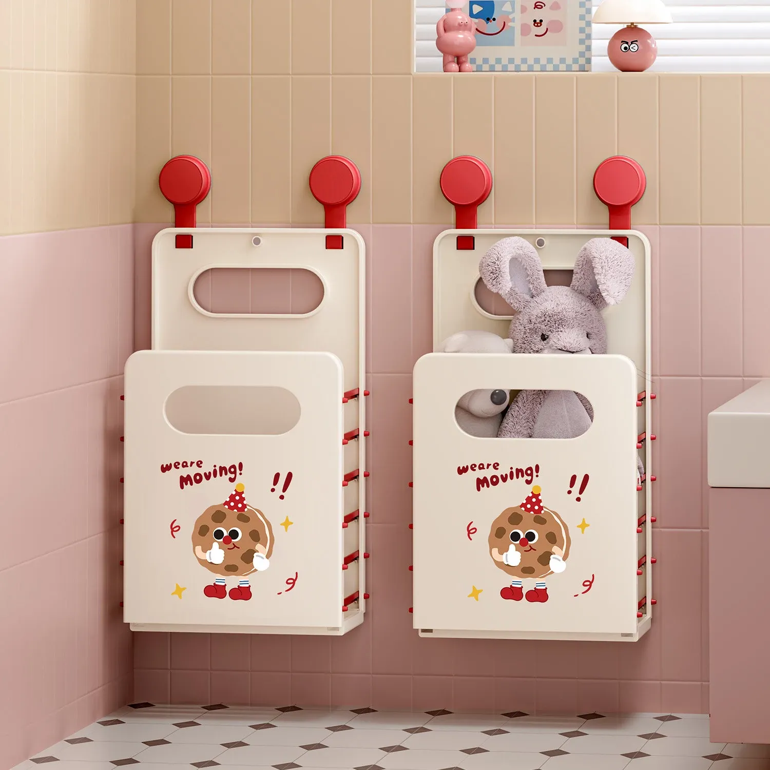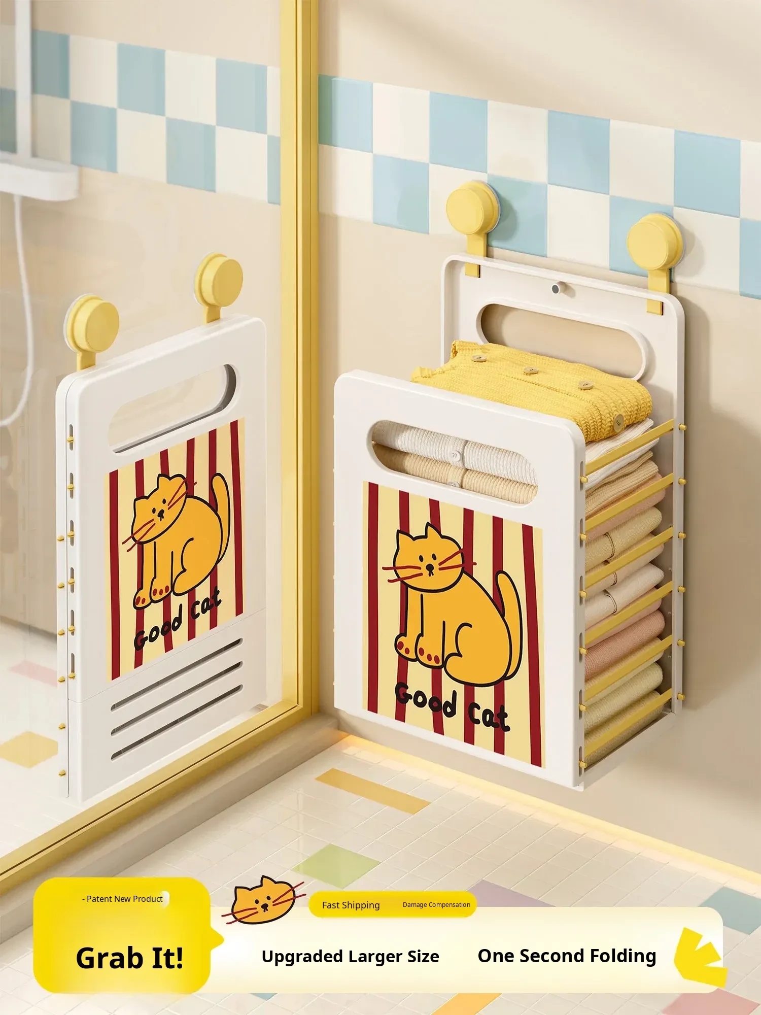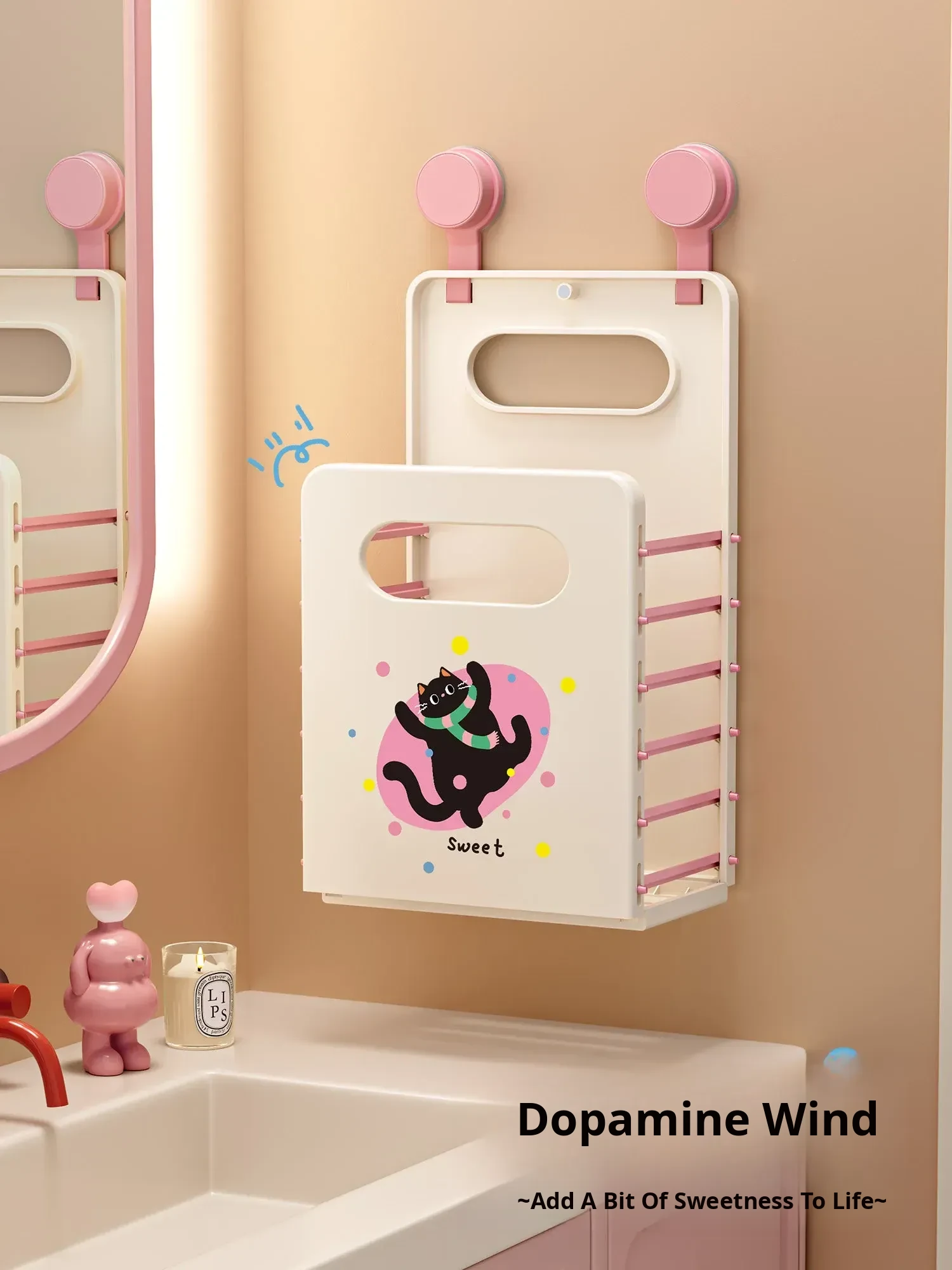 Cute Cartoon Cat Wall-Mounted Foldable Laundry Basket - Large Capacity Storage Bin with Suction Cup, No Drilling Needed for Easy Bathroom Organization
