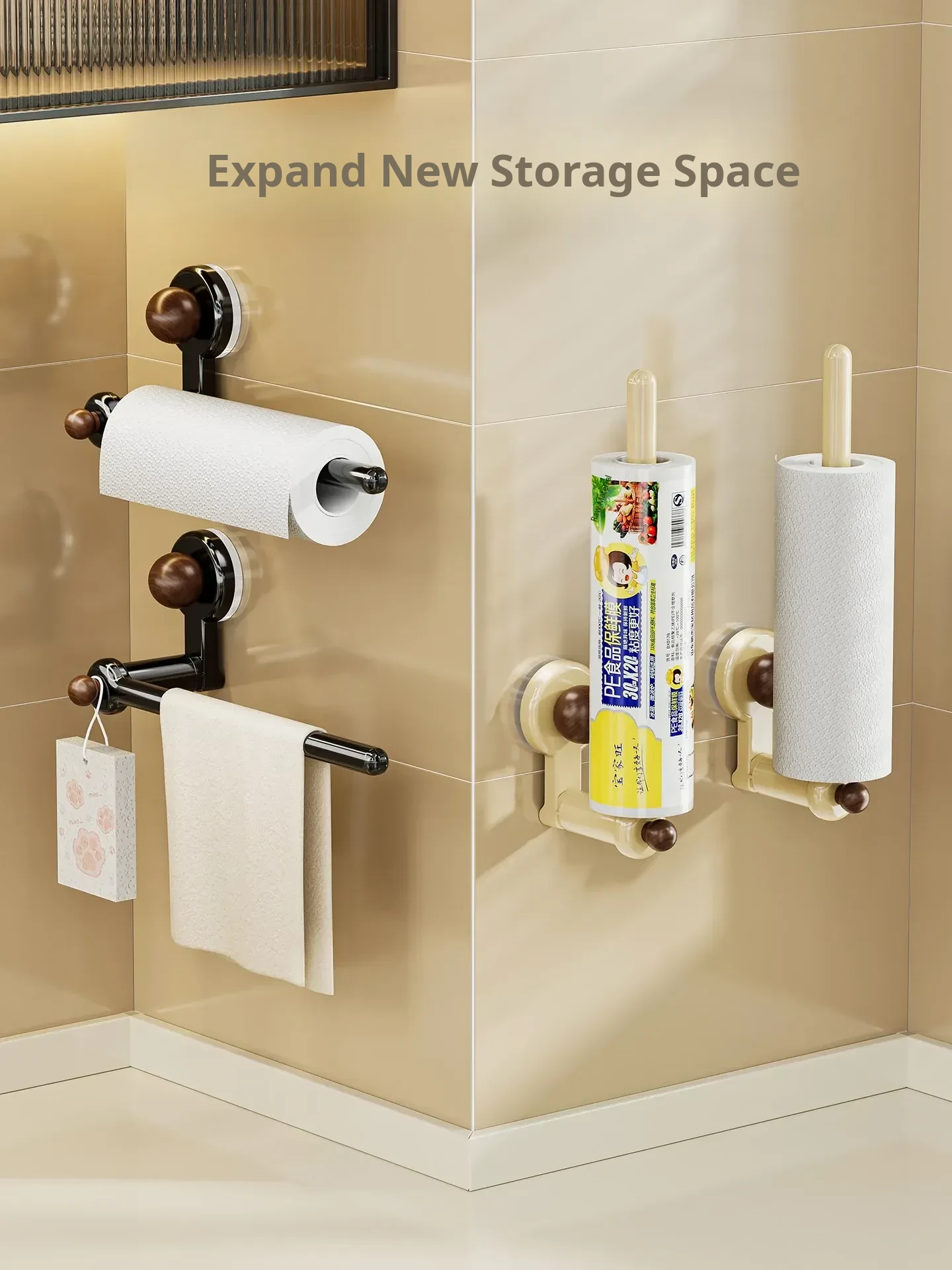 Suction Cup Kitchen Paper Holder - No Drill Required, Perfect for Hanging Towels, Oil-Absorbing Paper, and Cling Film Rolls - Space-Saving Storage Solution for Cabinets