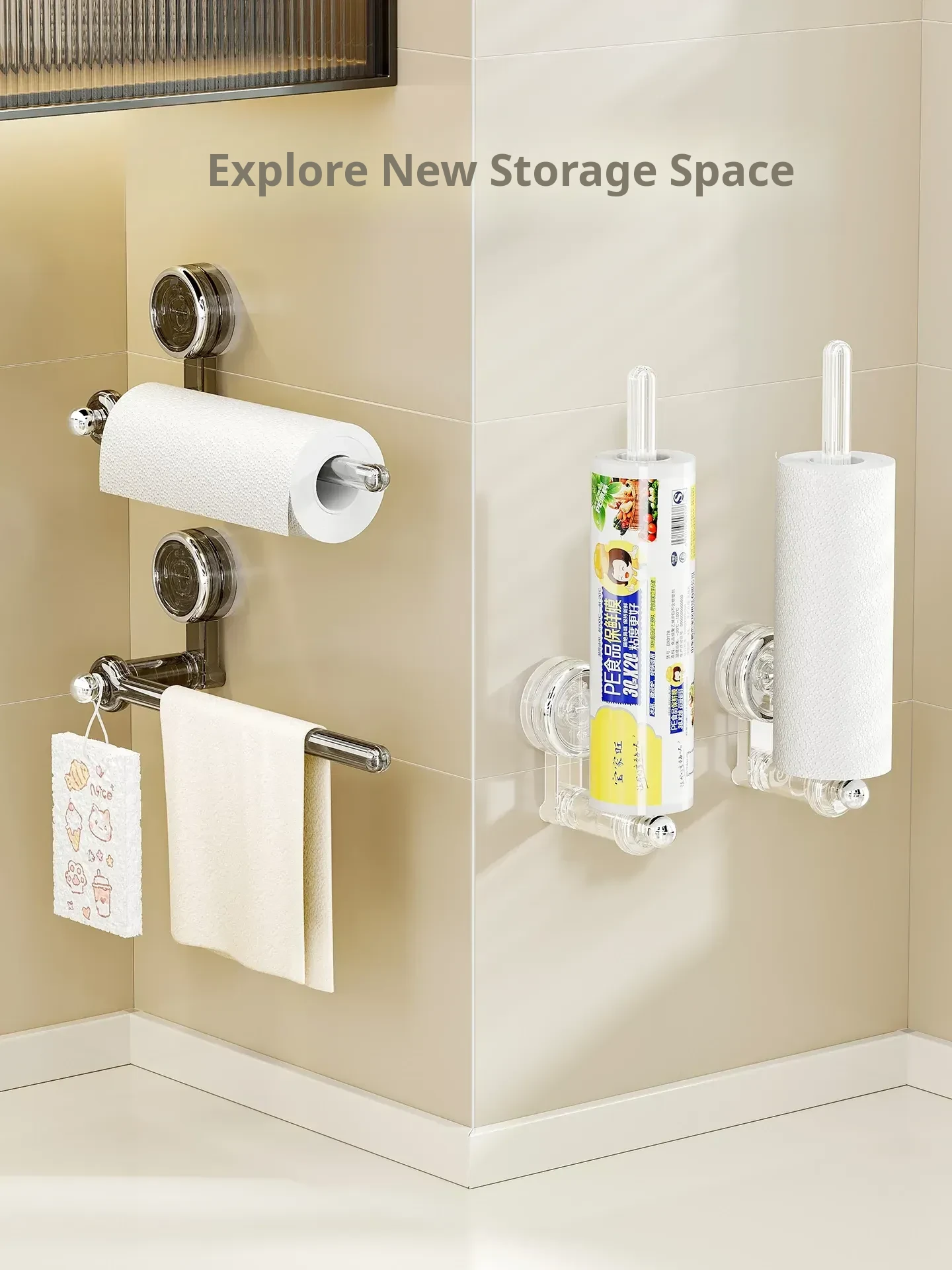 Suction Cup Kitchen Paper Holder - No Drilling Required, Convenient Wall-Mounted Rack for Disposable Cloths and Plastic Wrap - Perfect Organizer for Your Kitchen!