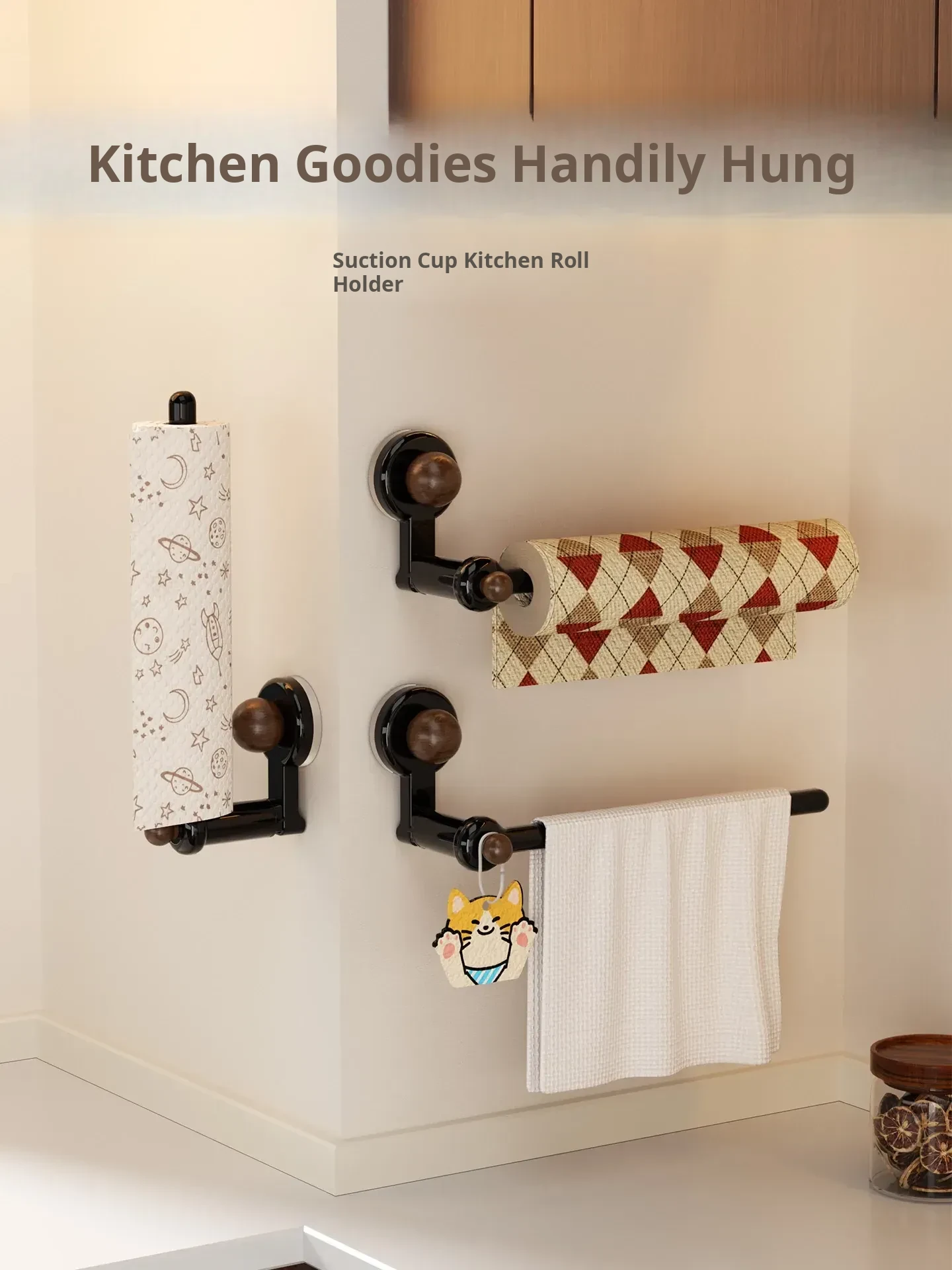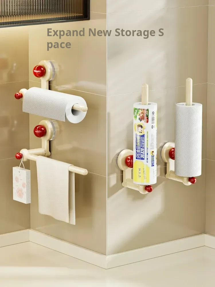 Suction Cup Kitchen Paper Towel Holder - Cabinet Organizing Rack for Cling Film, Lazy Susan Cloth, and Roll Paper Storage - Perfect for a Tidy and Efficient Kitchen!