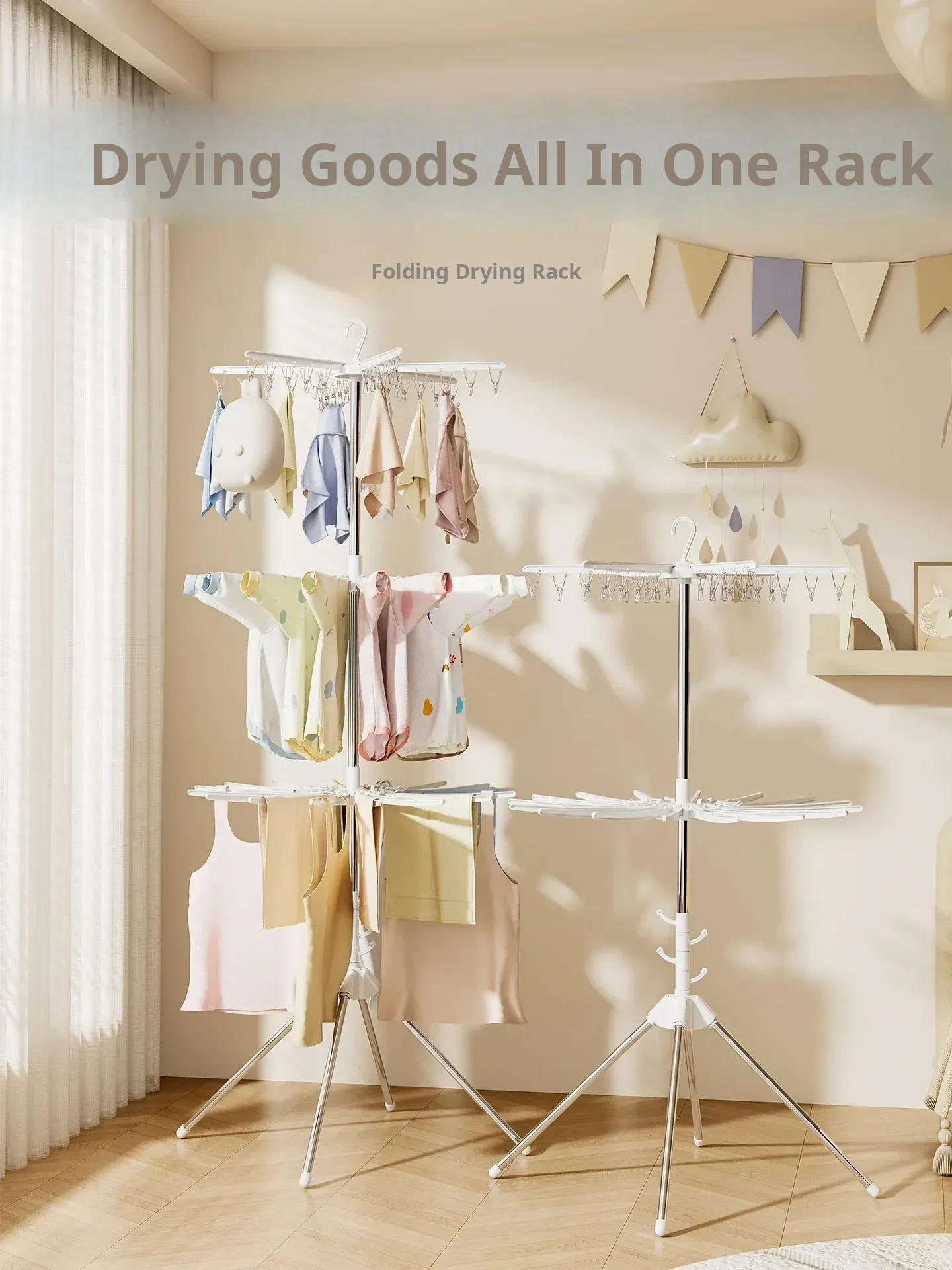 Compact Foldable Baby Drying Rack - Multi-Tier Indoor Floor Stand for Children, Perfect for Windows and Balconies, Your Essential Drying Solution!