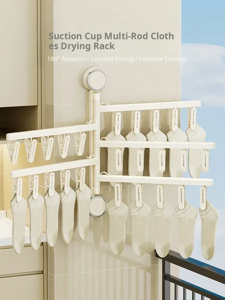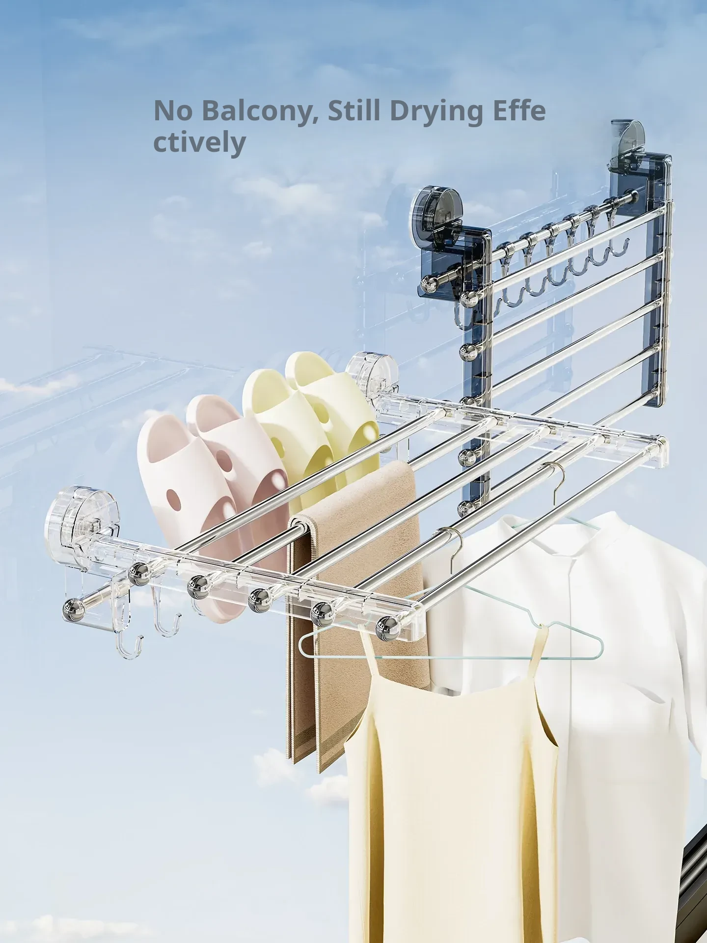 Rotatable Suction Cup Clothes Drying Rack - No Drill, No Trace, Perfect for Home Use, Ideal for Balconies and Windows, Adjustable and Space-Saving Laundry Solution