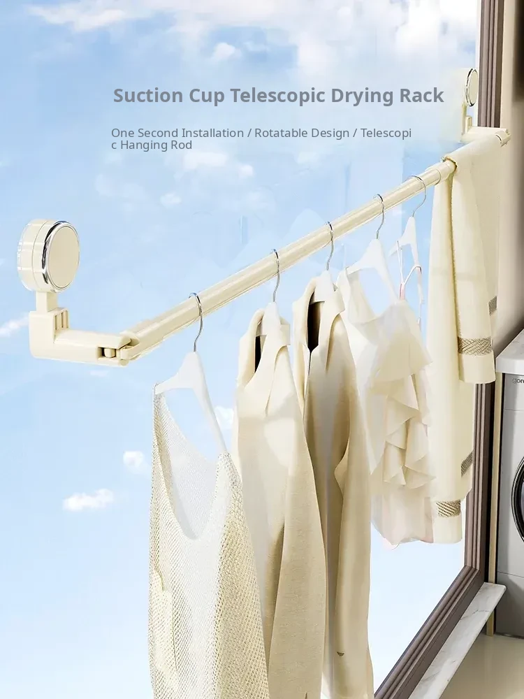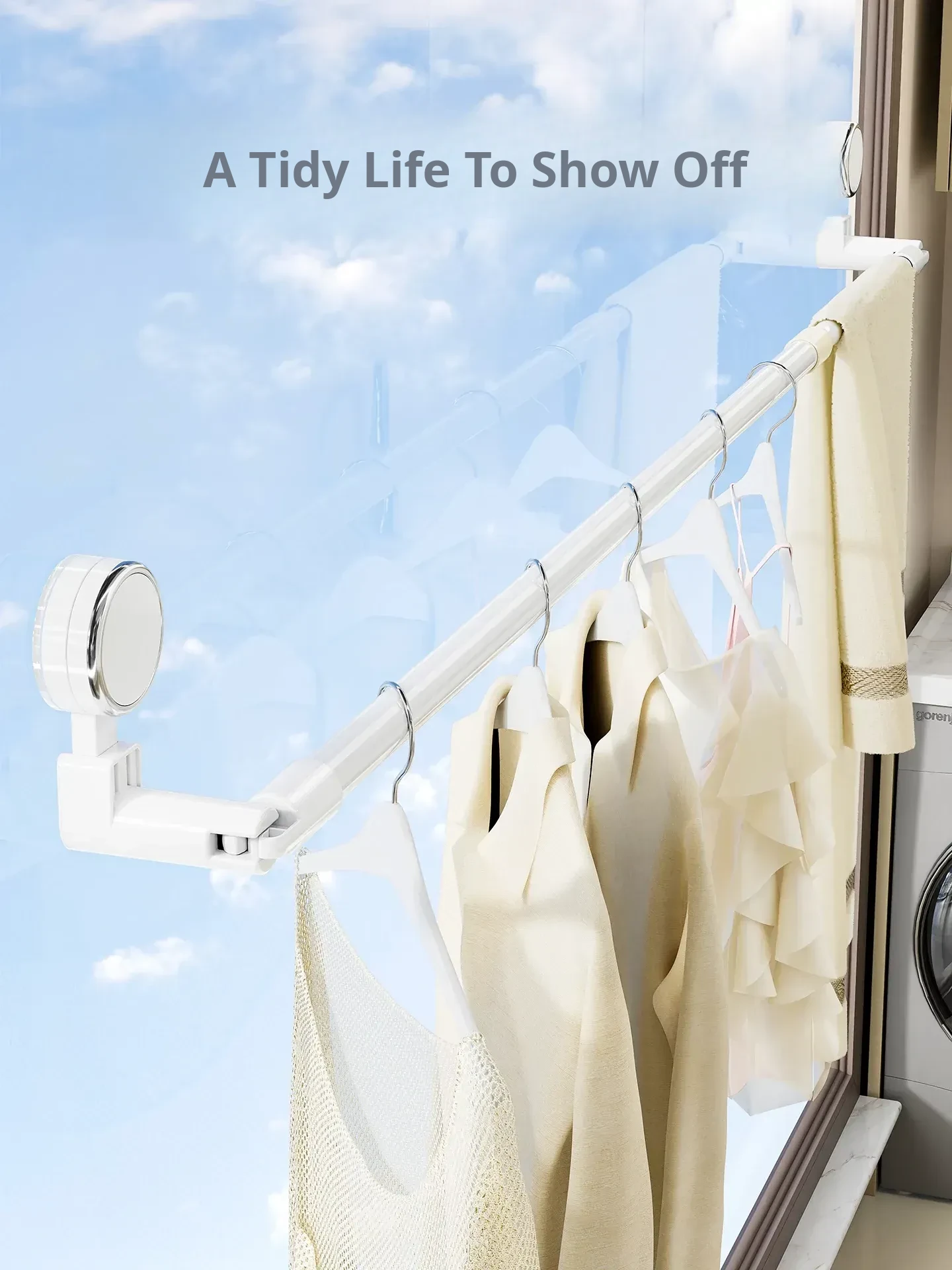 Rotating Suction Cup Clothes Drying Rack - No Drilling Required! Perfect for Home Use, Balcony, and Windows. Adjustable and Retractable Clothes Rod - Your Ultimate Drying Solution!
