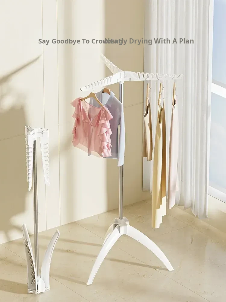 Foldable Free-Standing Clothes Drying Rack - Compact Indoor & Balcony Use, No Installation Required, Easy-to-Use Clothes Hanging Rod for Bedroom - Your Ultimate Drying Solution!