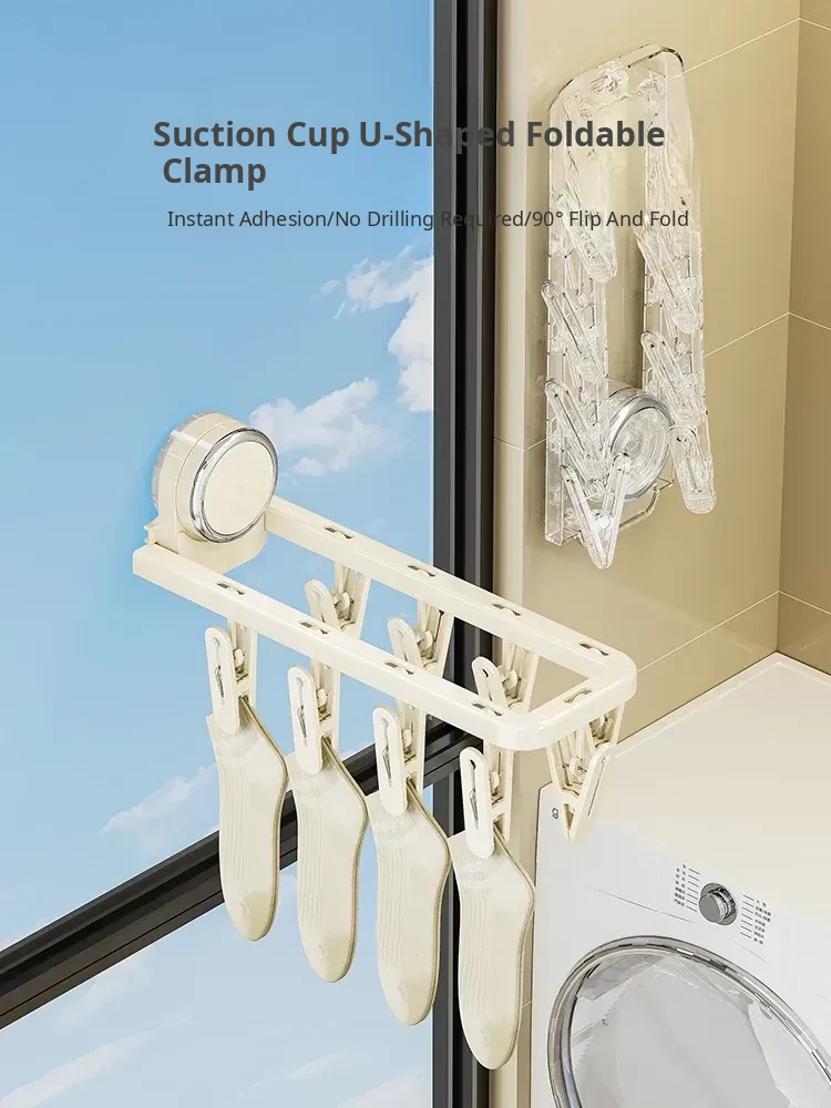 Foldable Wall-Mounted Sock Drying Rack with Suction Cups - Versatile Multi-Clip Clothes Hanger for Home, Ideal for Panties, Socks, and Small Items, Perfect for Balconies