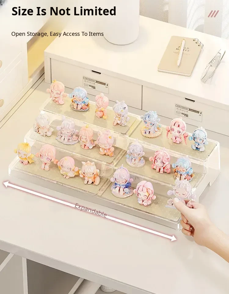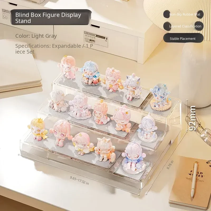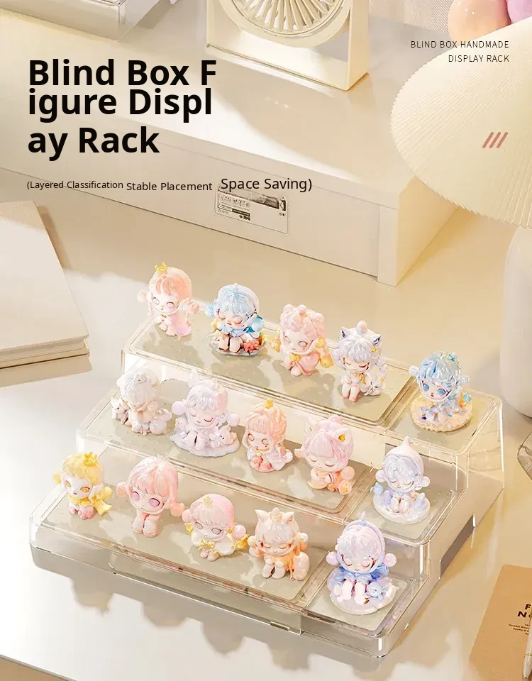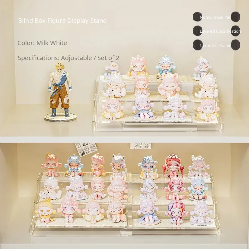 Adjustable Step Display Stand for Blind Boxes - Perfect for Bubble Mart Figure Collection, Acrylic Shelf Organizer for Showcasing Your Favorites.