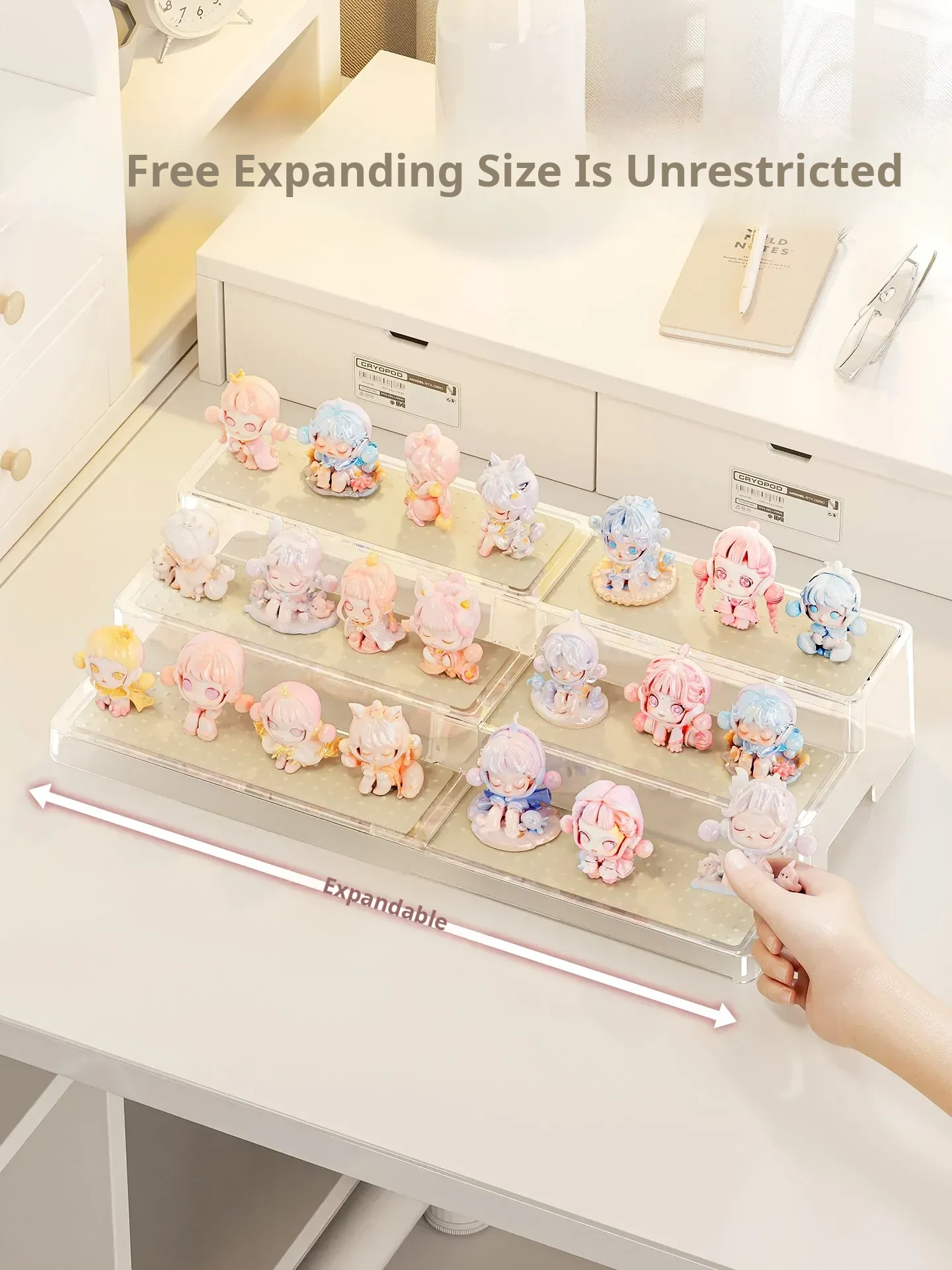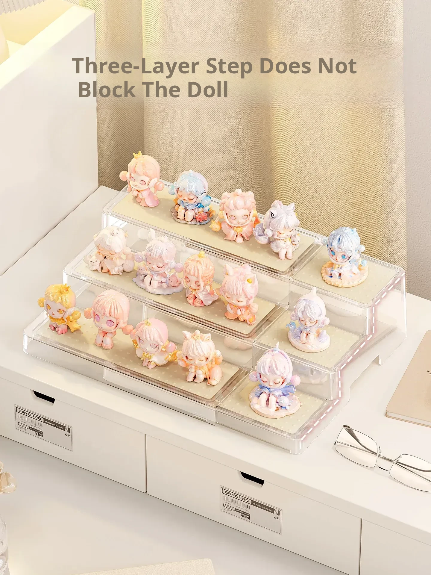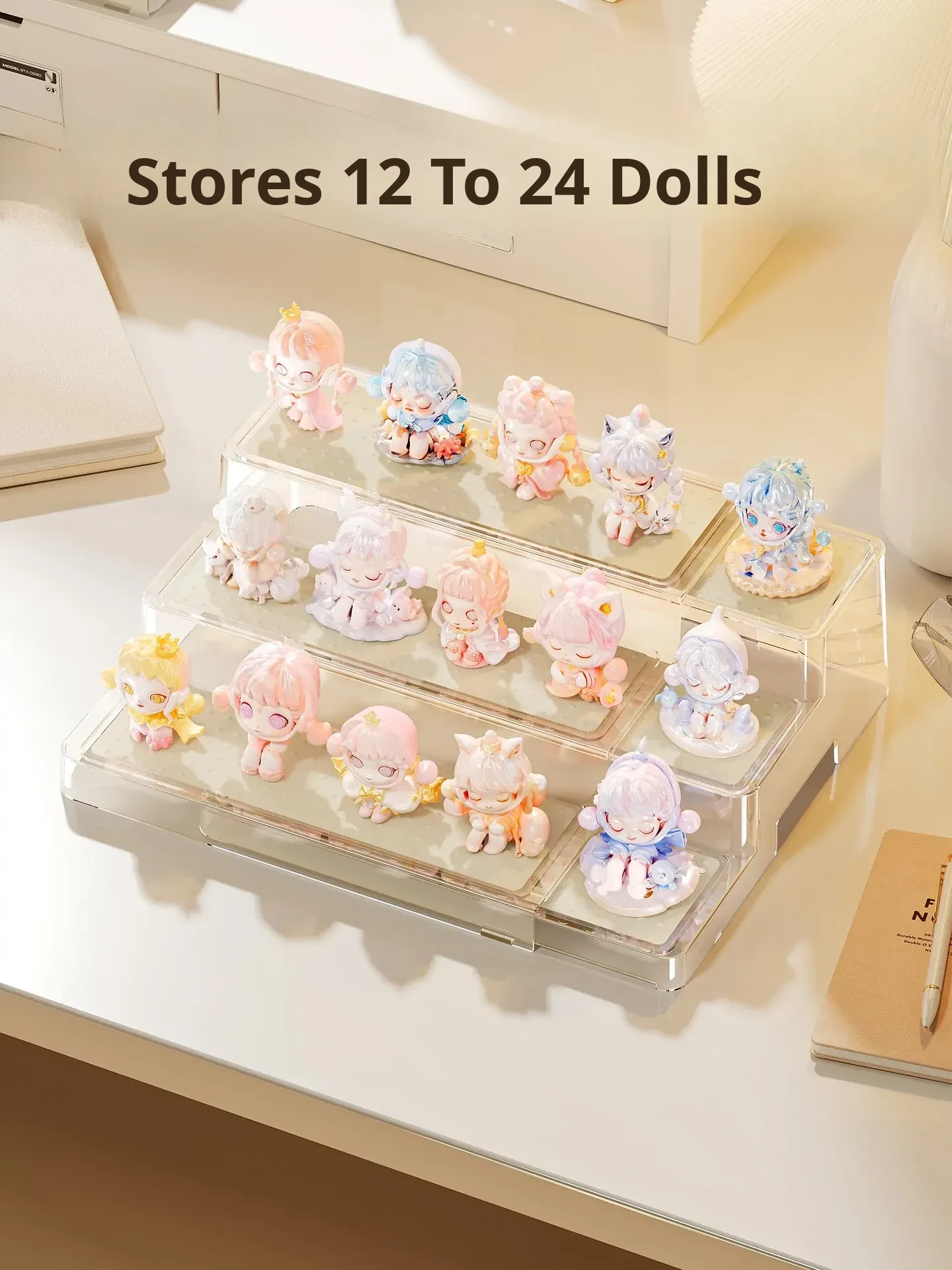 Adjustable Step Display Stand for Blind Boxes - Perfect for Bubble Mart Figure Collection, Acrylic Shelf Organizer for Showcasing Your Favorites.