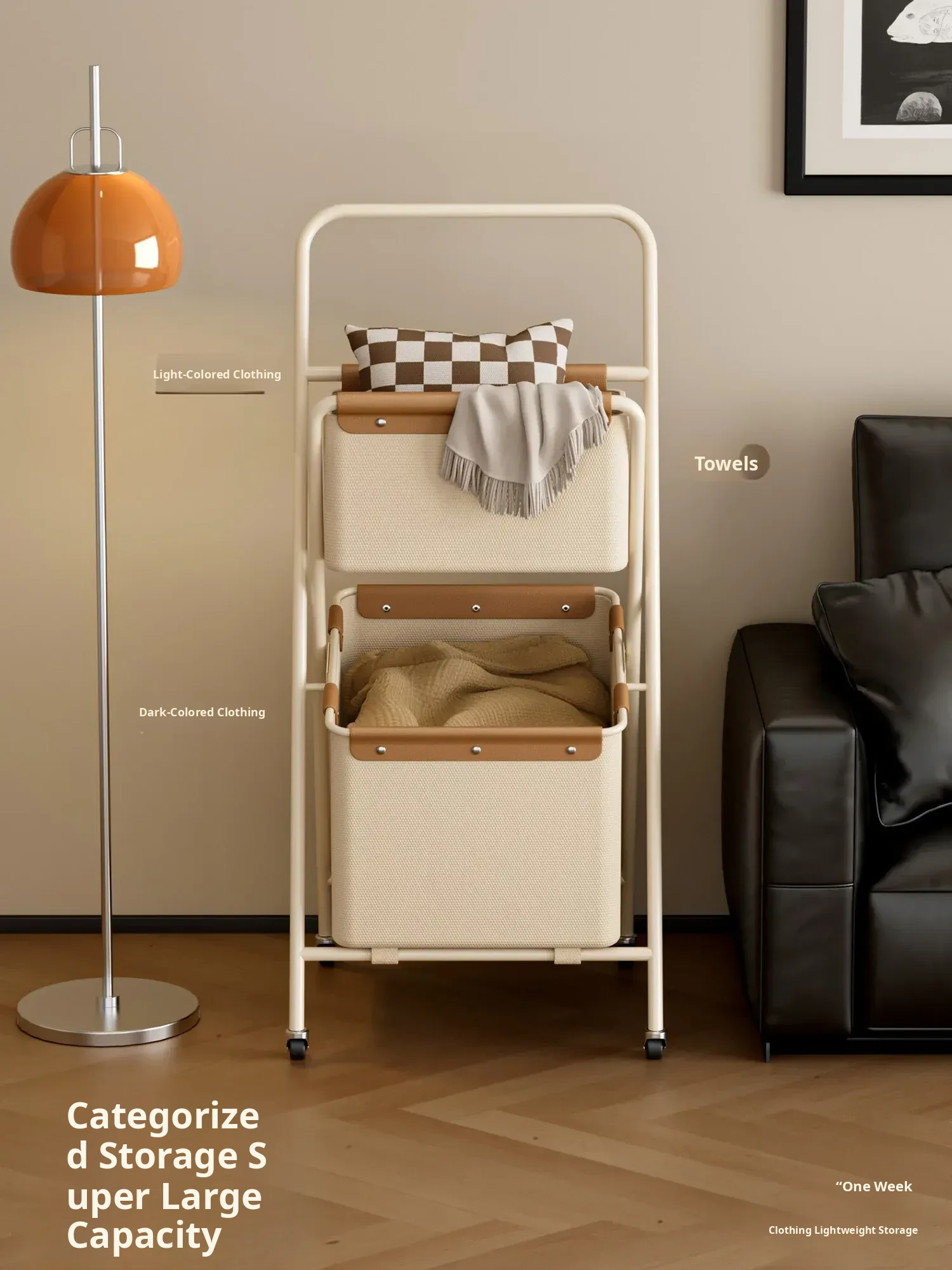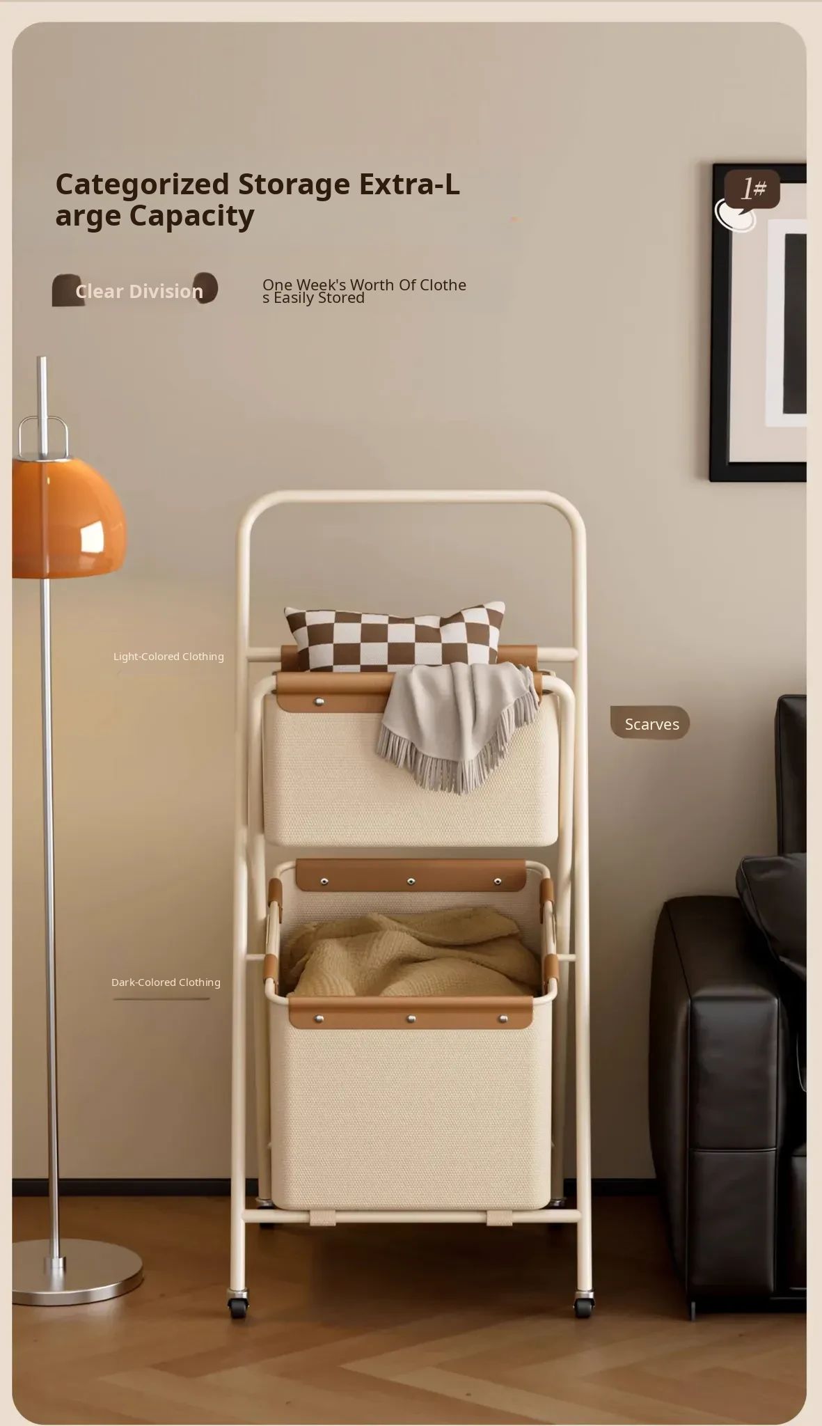 Collapsible Double-Layer Laundry Basket - Large Capacity Dirty Clothes Organizer with Dividers for Home Storage - Space-Saving Design for Easy Use