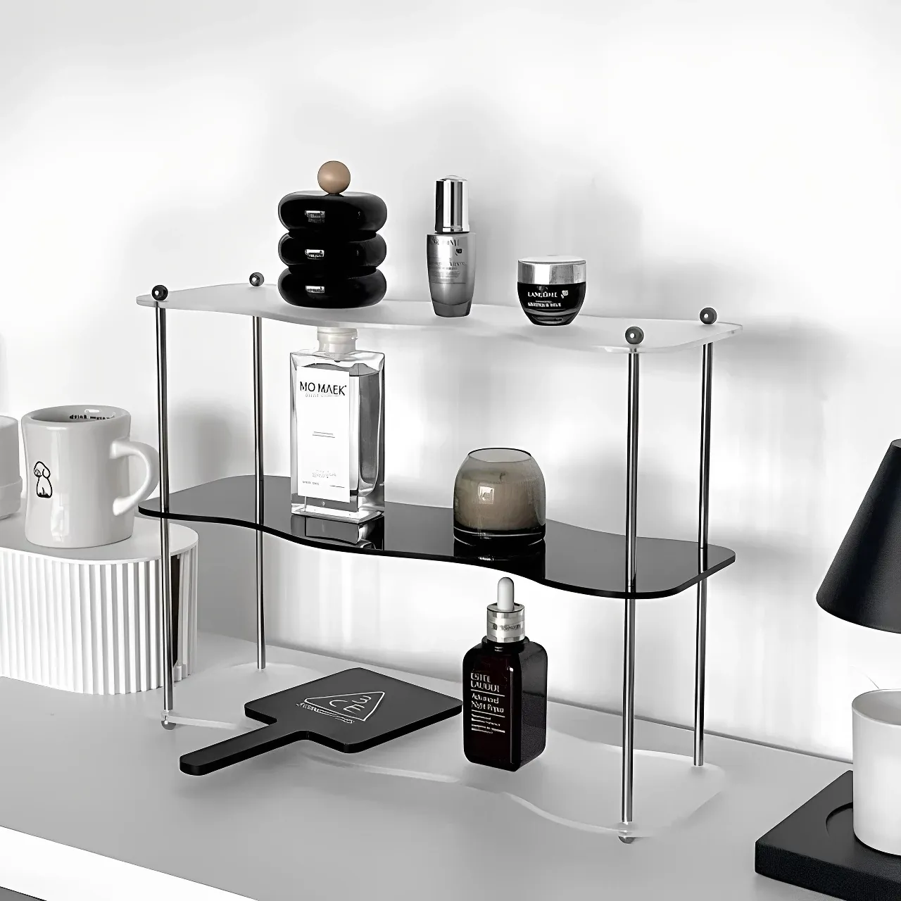 DecoHub Bauhaus Acrylic Multi-Tier Storage Rack - Stylish Organizer for Cups, Makeup, Perfumes & More - Perfect for Your Bathroom or Desktop