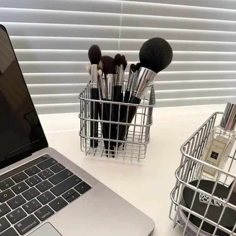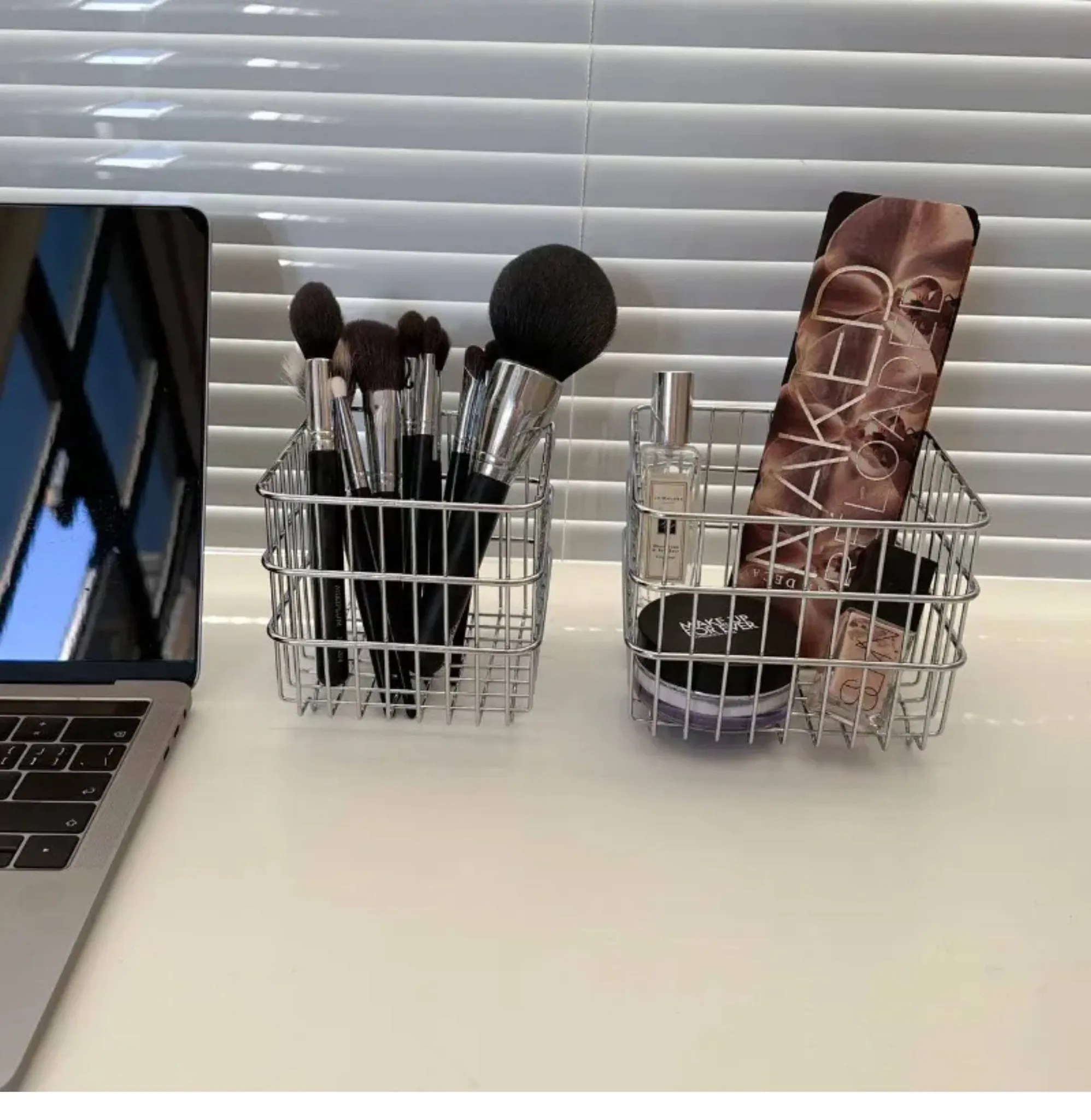 DecoHub Bauhaus-Inspired Iron Storage Basket - Stylish Desktop Organizer for Makeup Brushes & Bathroom Essentials, Perfect for Home Décor and Clutter-Free Living