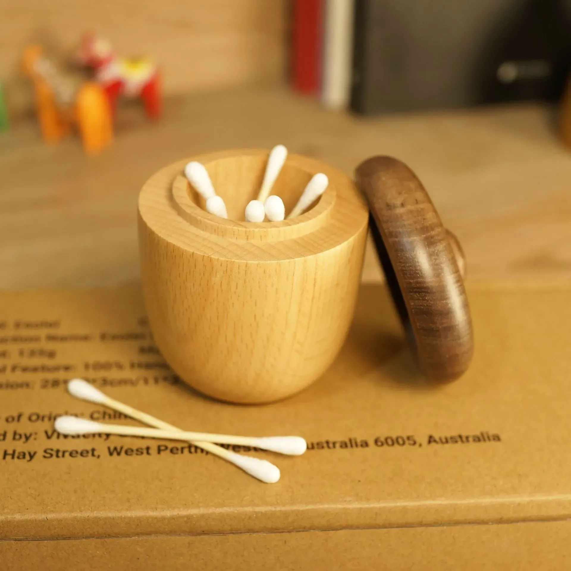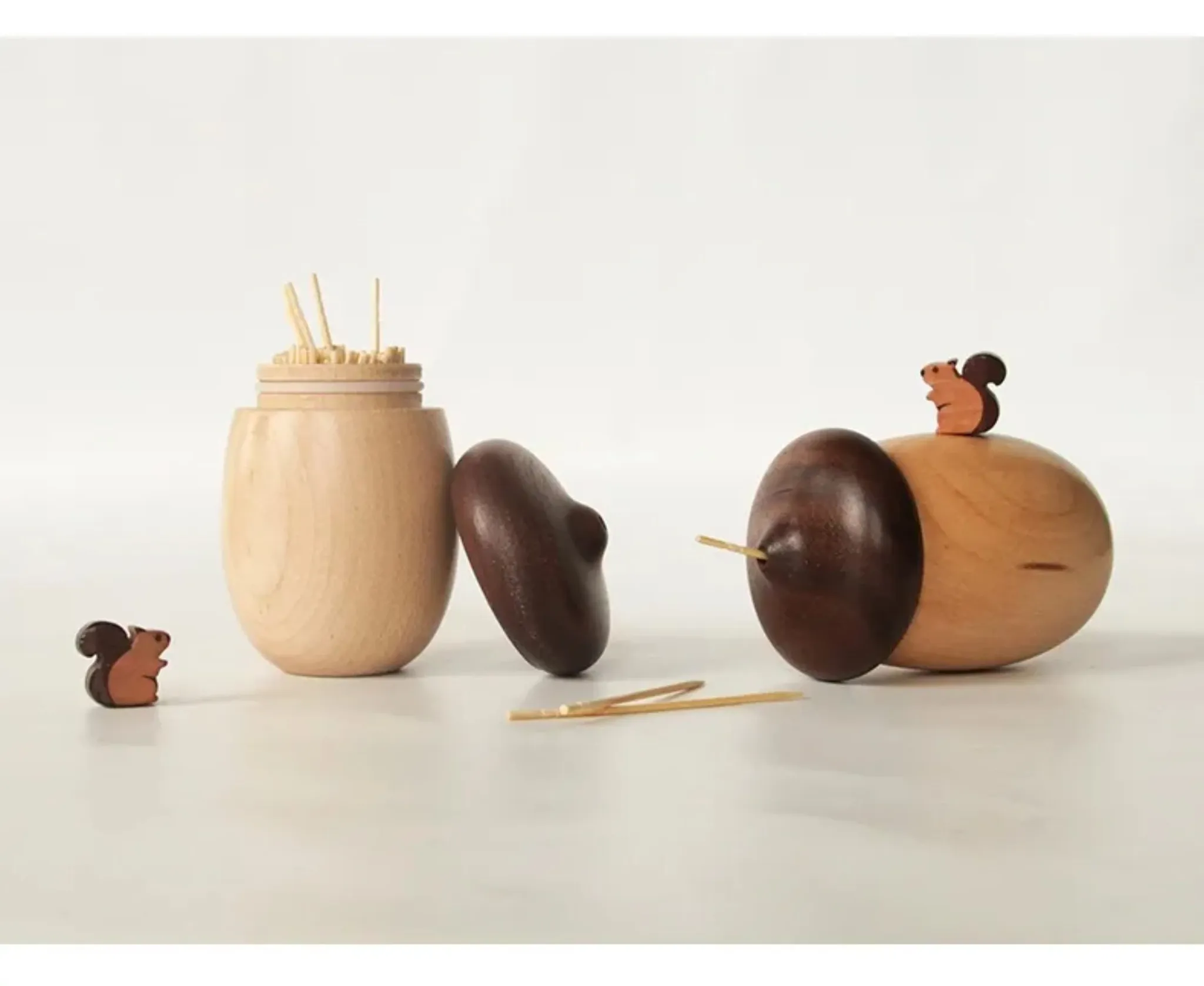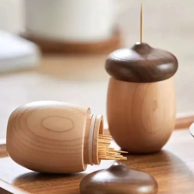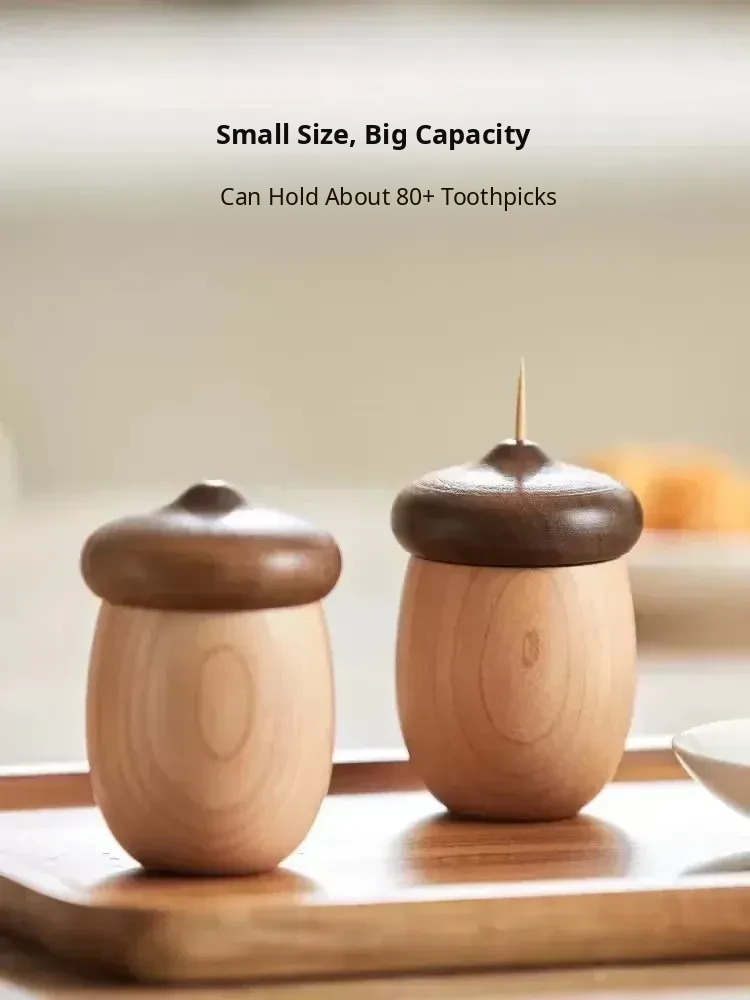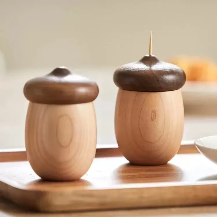 DecoHub Hazelnut Toothpick Holder - Creative Wooden Acorn Cotton Swab Organizer, Japanese-Inspired Nut Toothpick and Dental Floss Storage Box