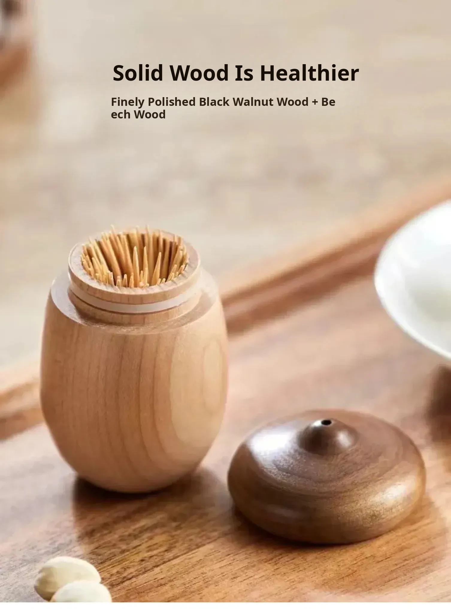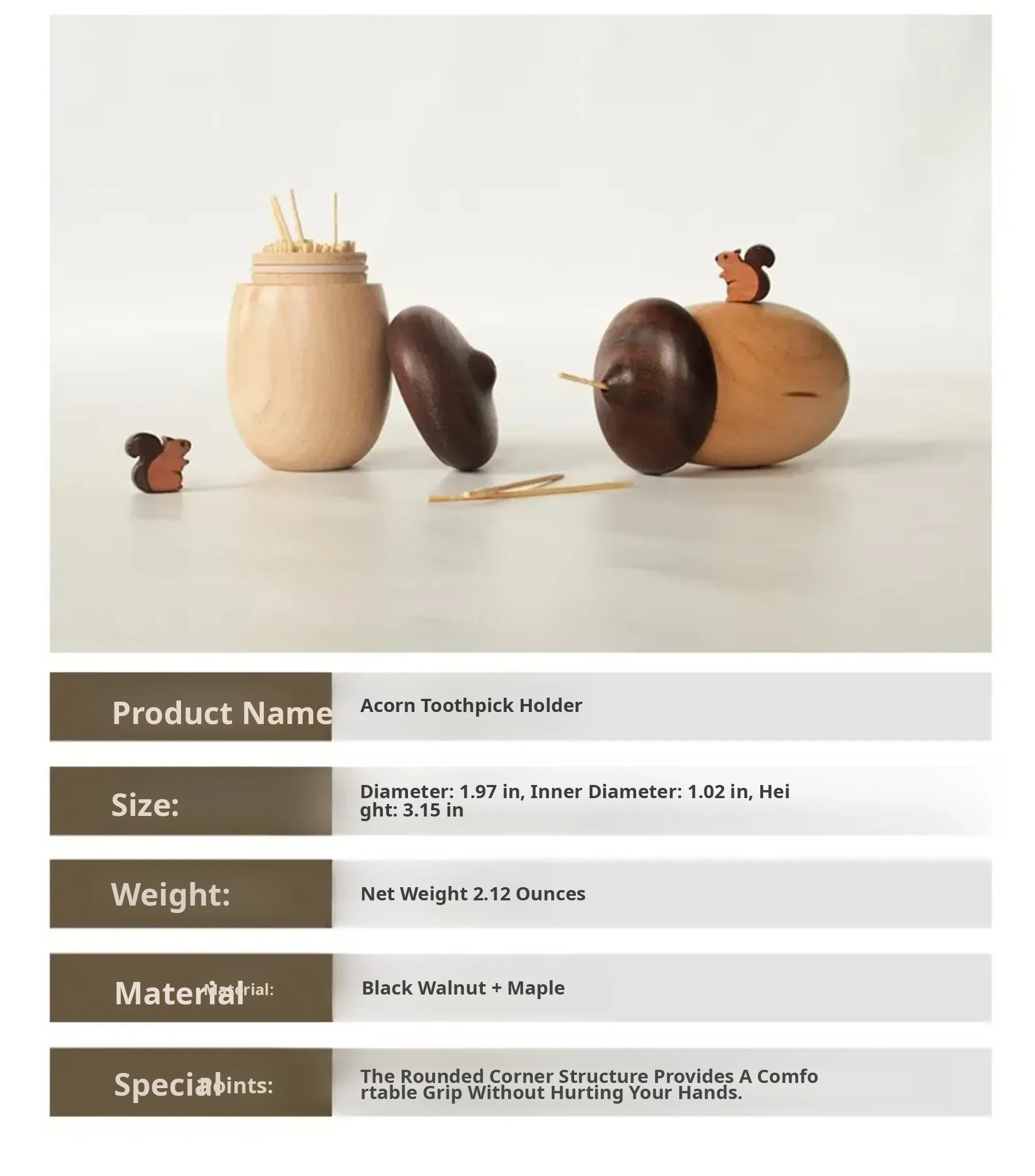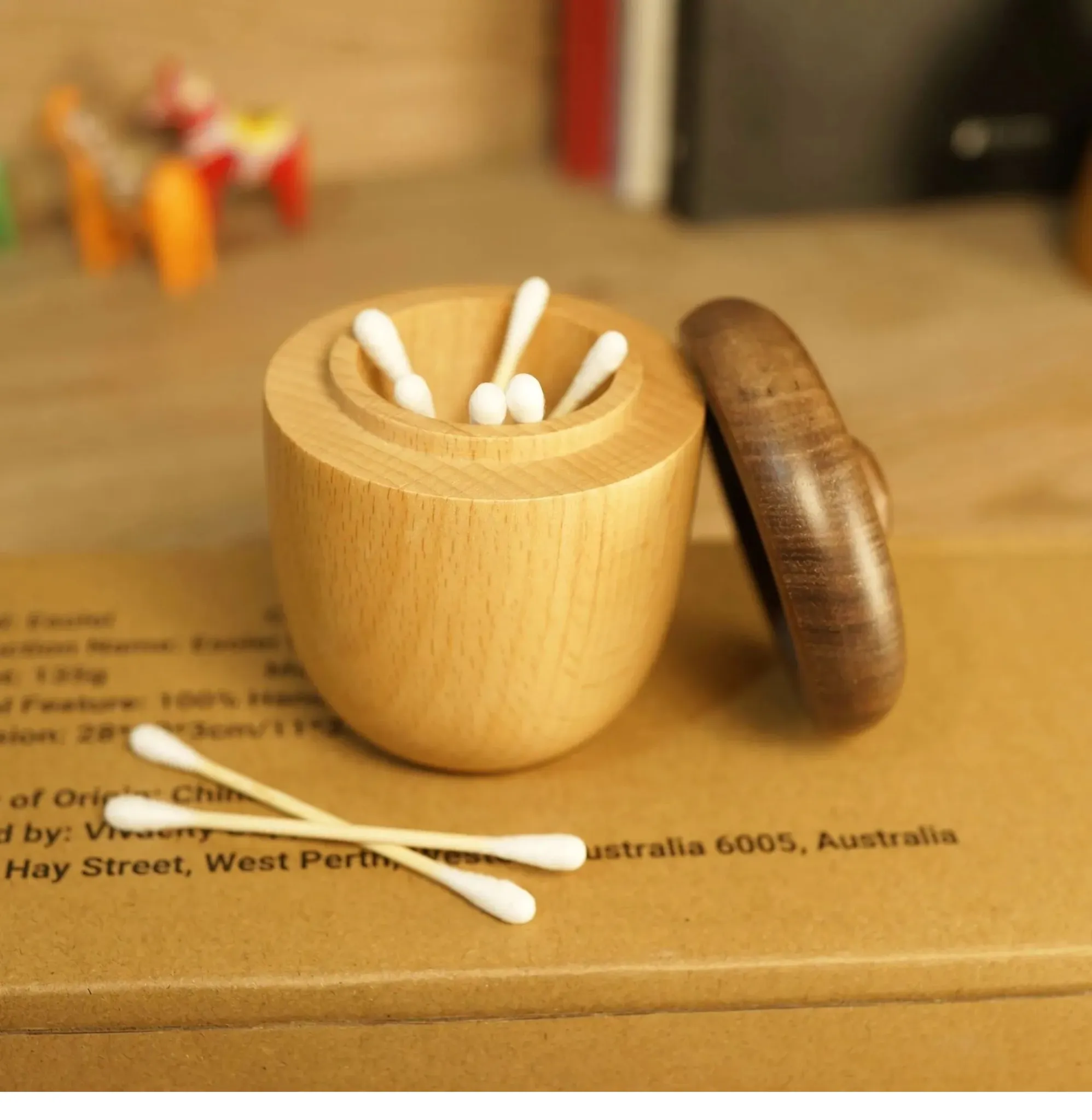 DecoHub Hazelnut Toothpick Holder - Creative Wooden Acorn Cotton Swab Organizer, Japanese-Inspired Nut Toothpick and Dental Floss Storage Box
