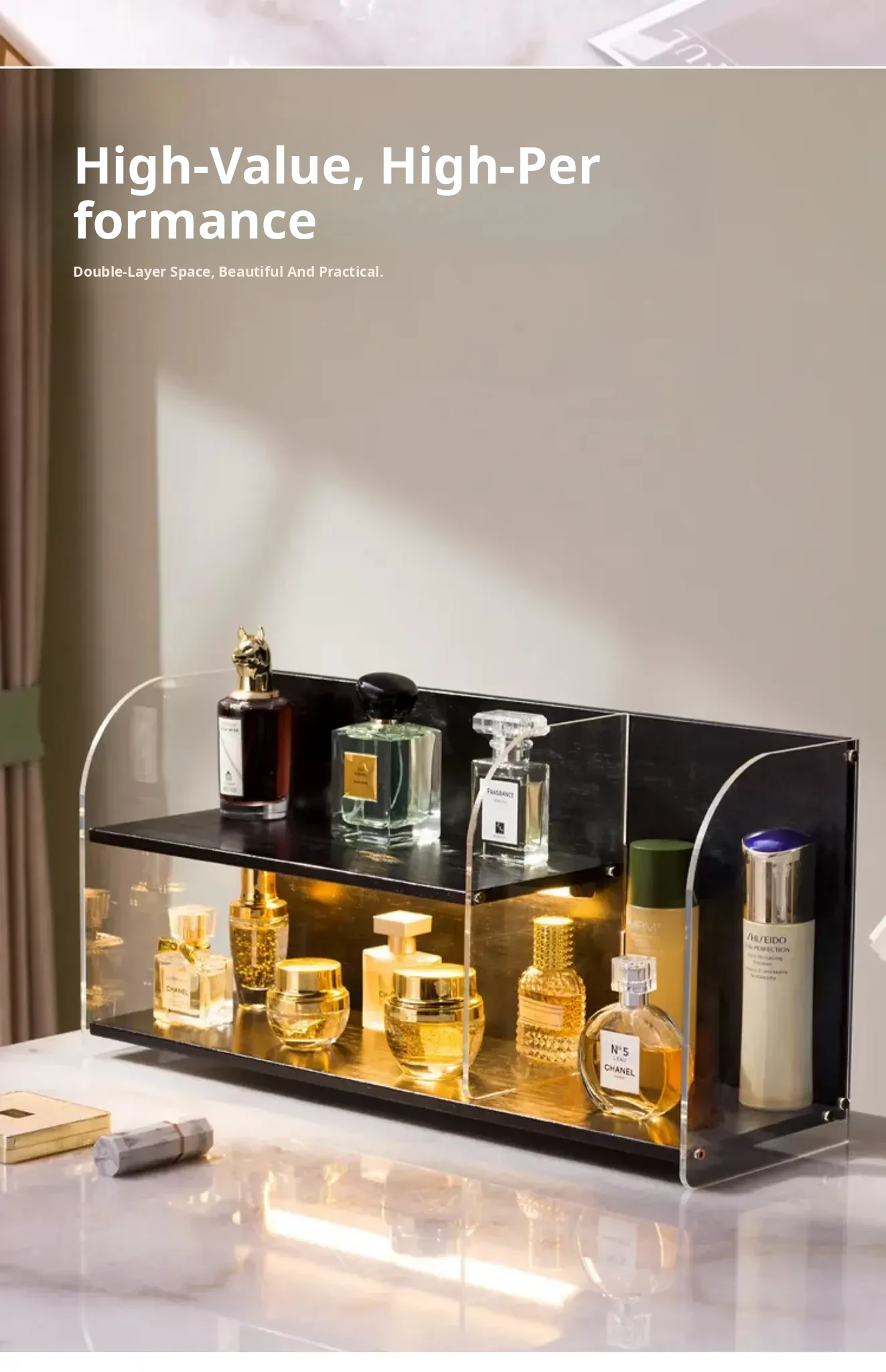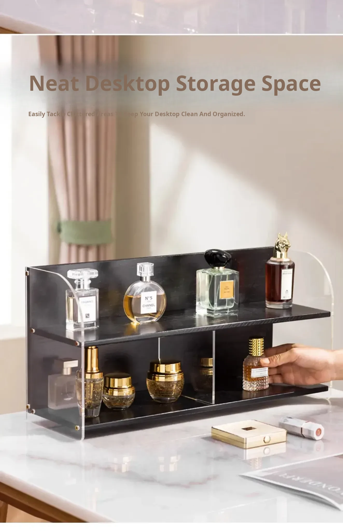 DecoHub Makeup Brush Organizer - Stylish Desktop Storage for Skincare Products, Vanity Lipstick Holder and Cosmetic Rack