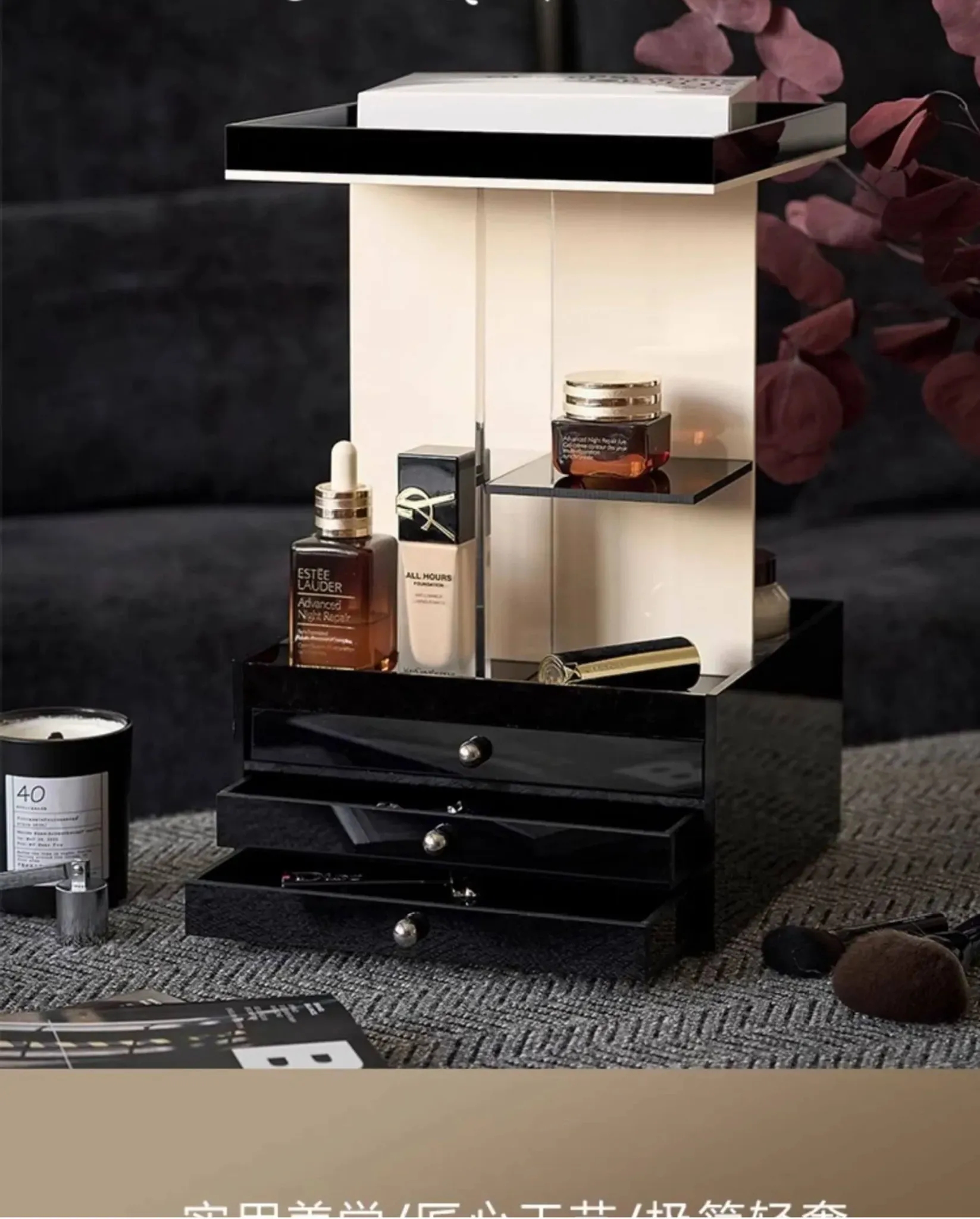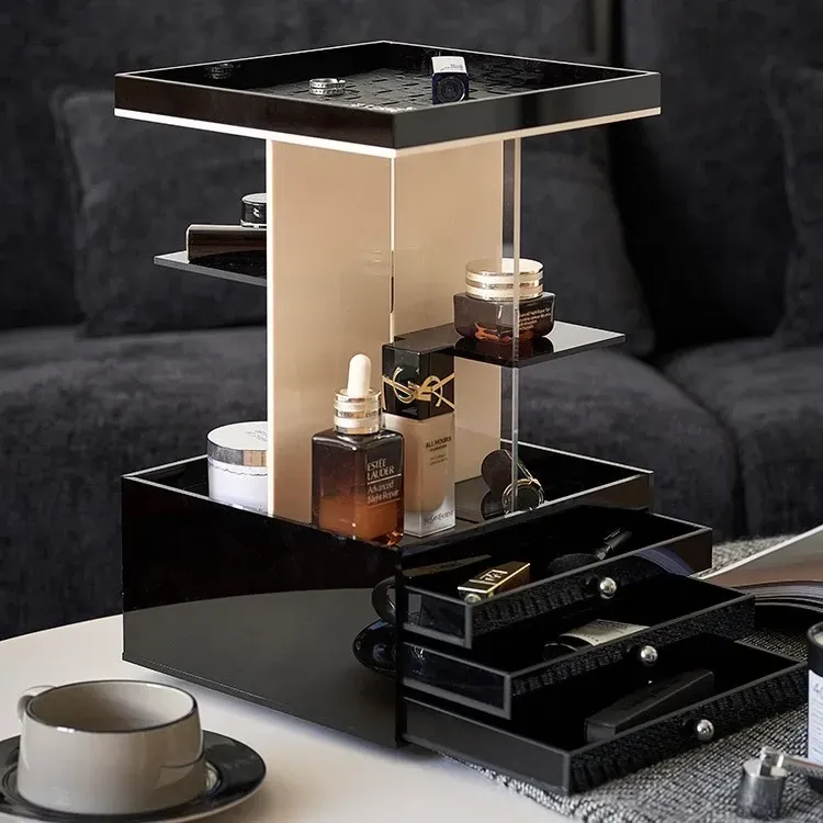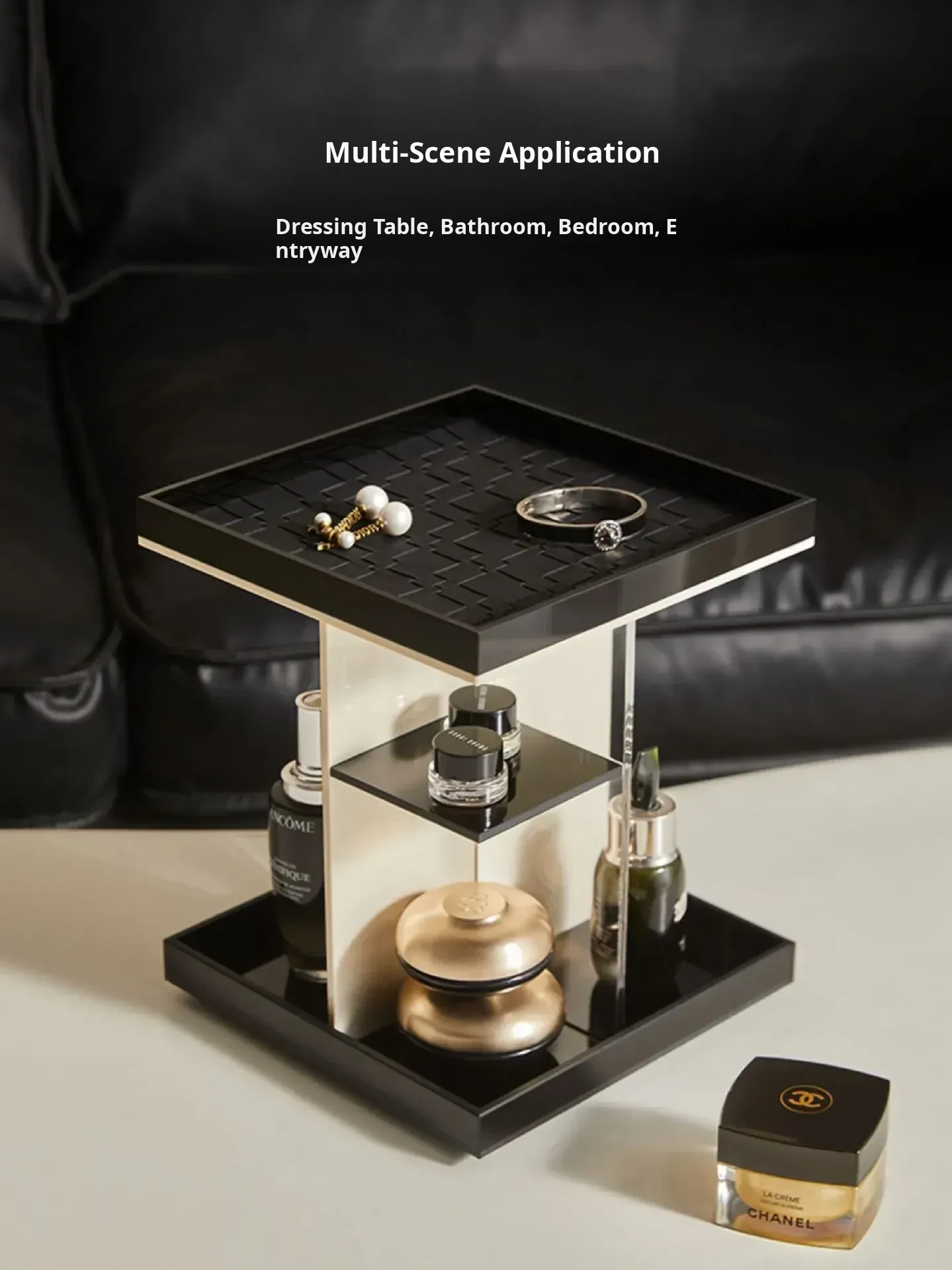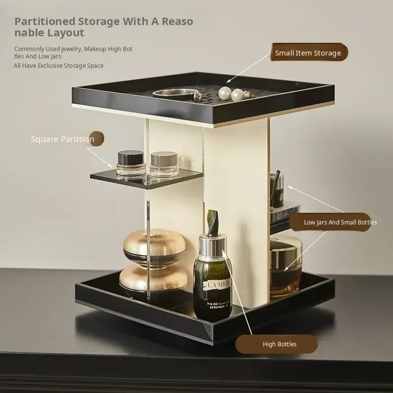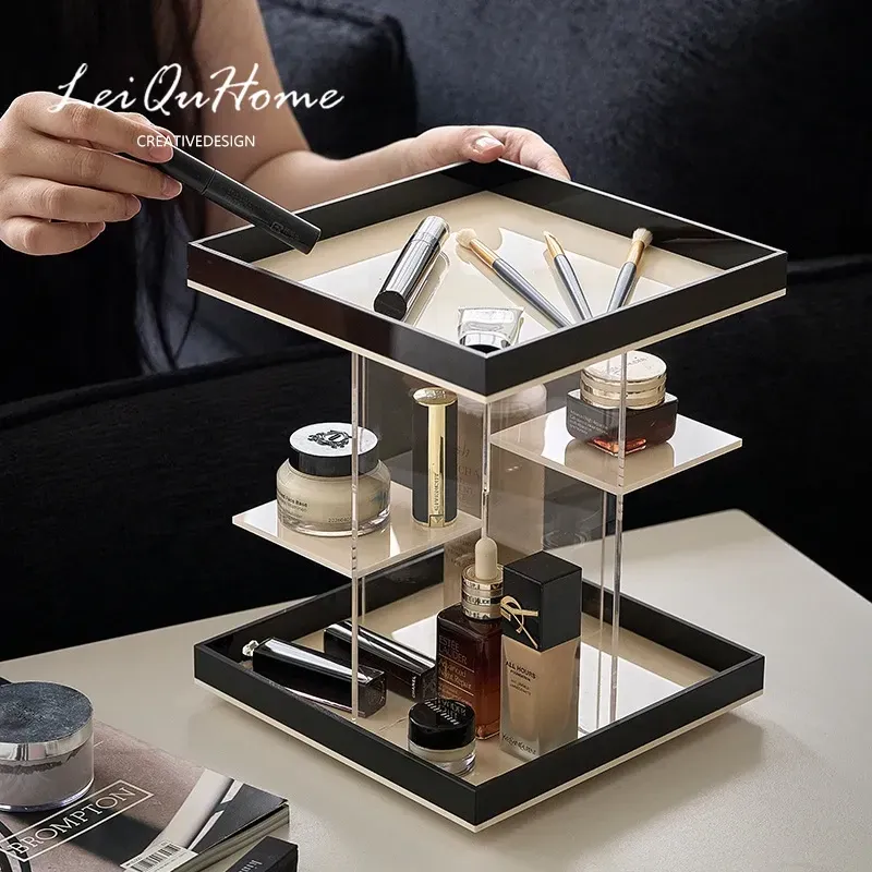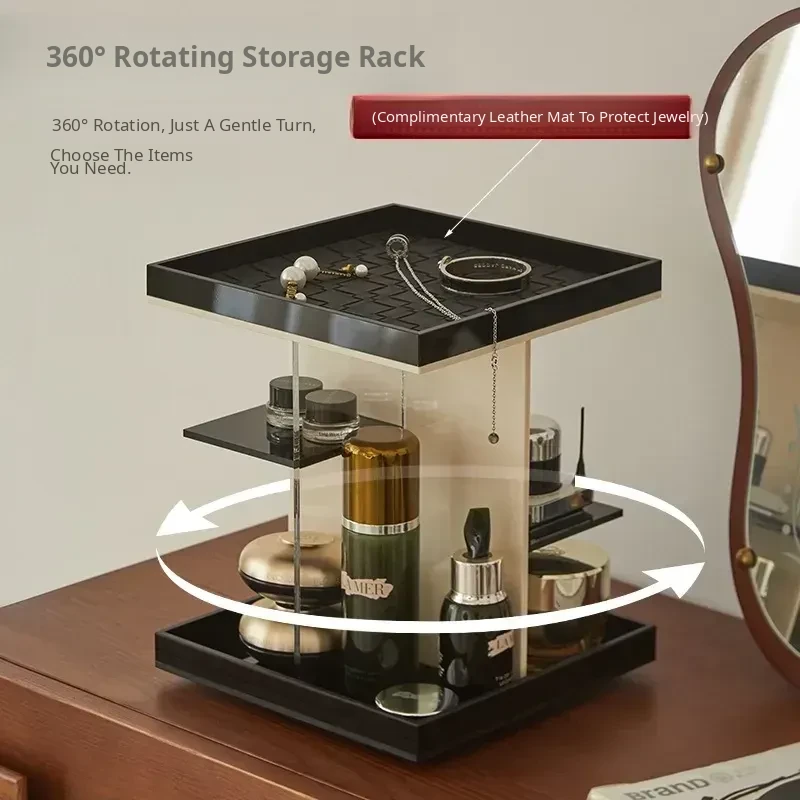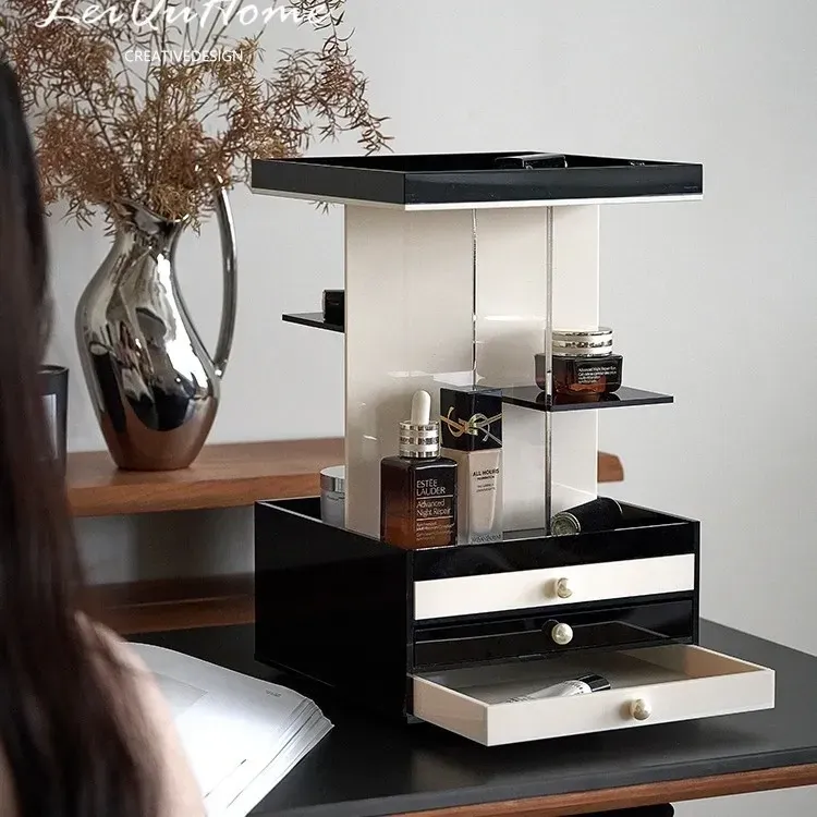 Mousse Black and White Three-Layer Drawer (360°Rotate (with Leather)