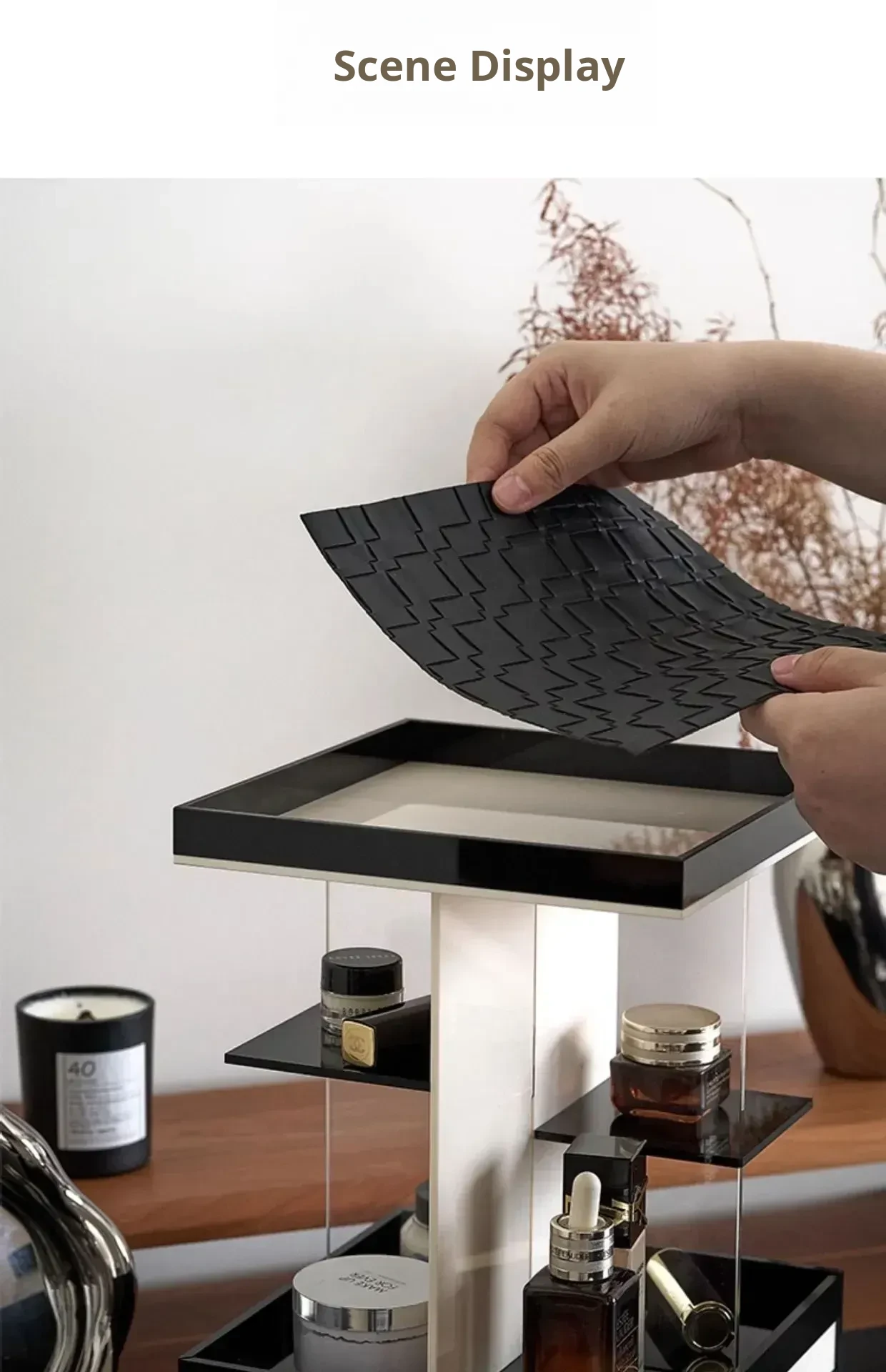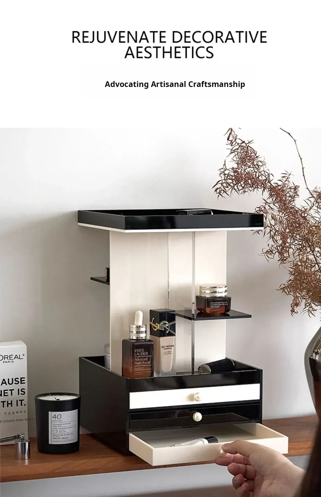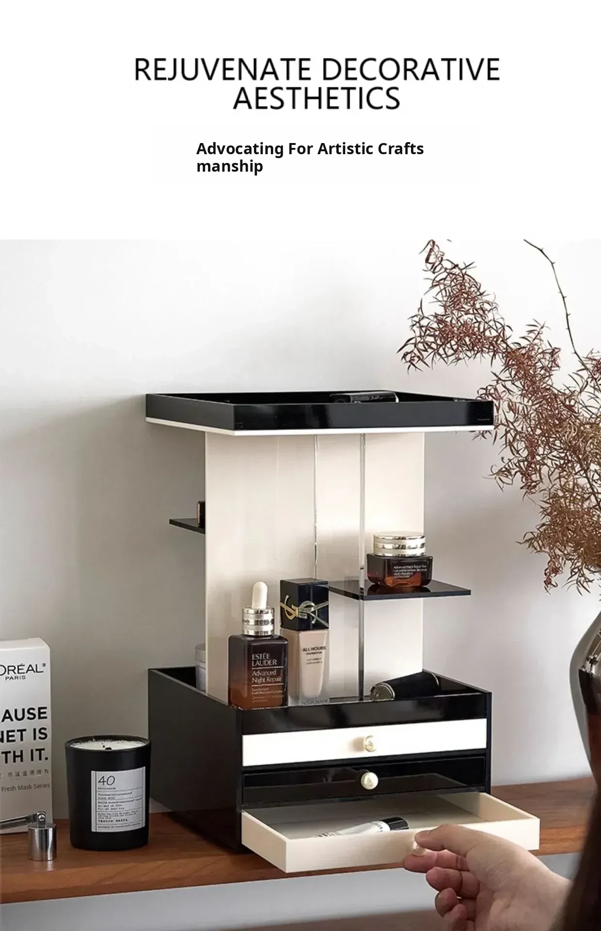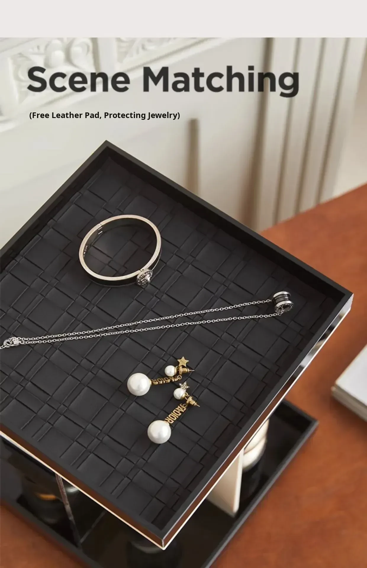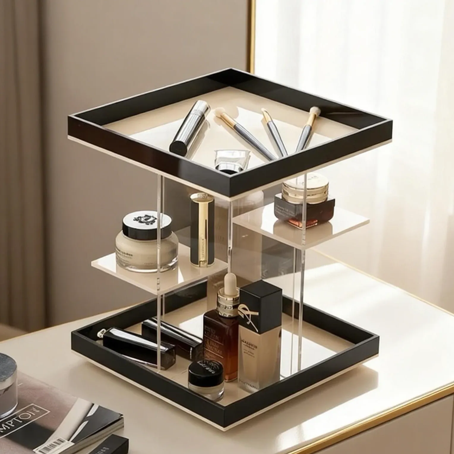 Mousse Black and White Three-Layer Drawer (360°Rotate (with Leather)