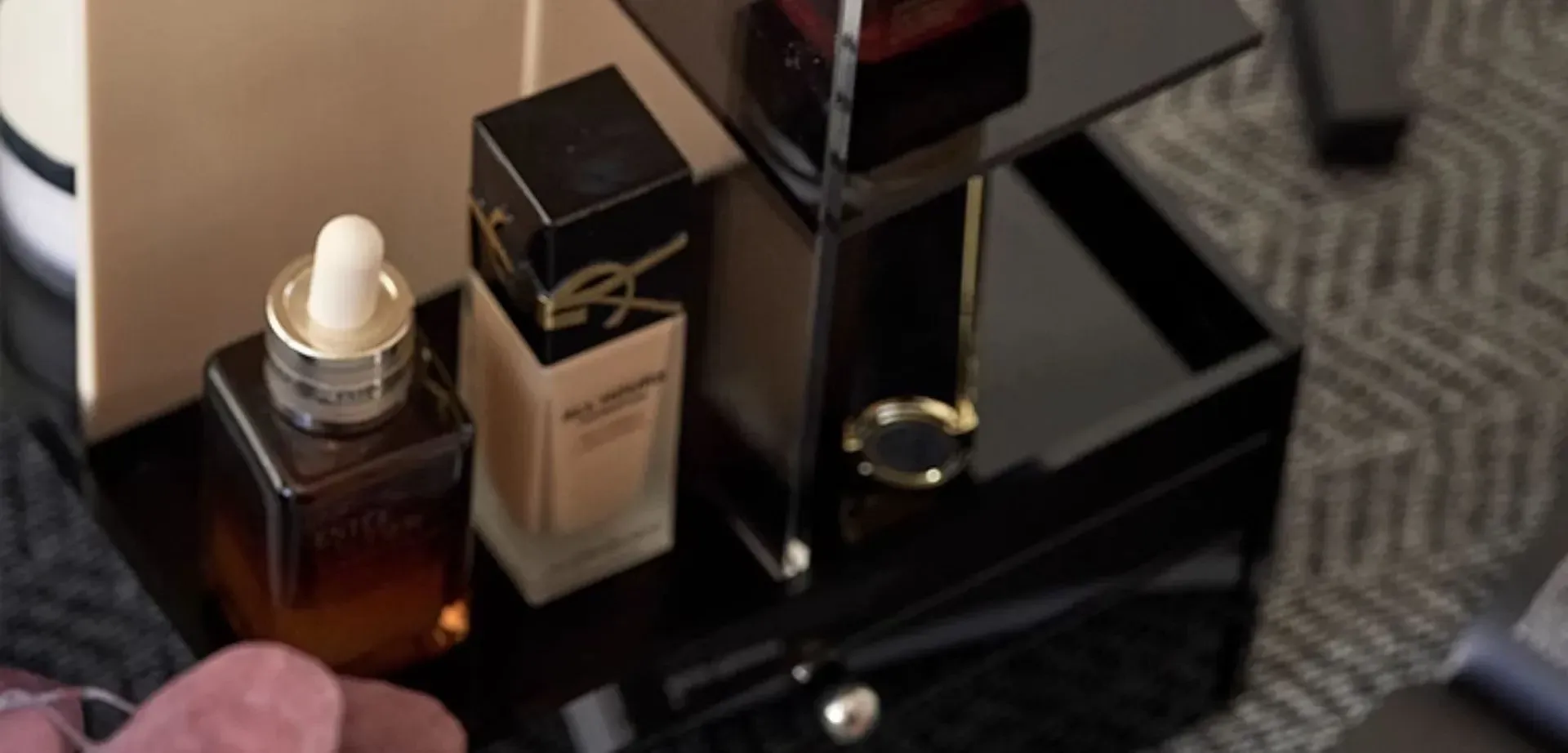 DecoHub Rotating Makeup Organizer - Elegant Skincare & Perfume Storage for Your Bathroom Vanity, Stylish and Functional Design