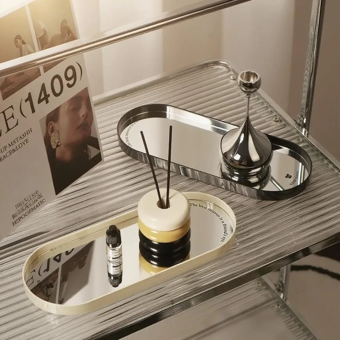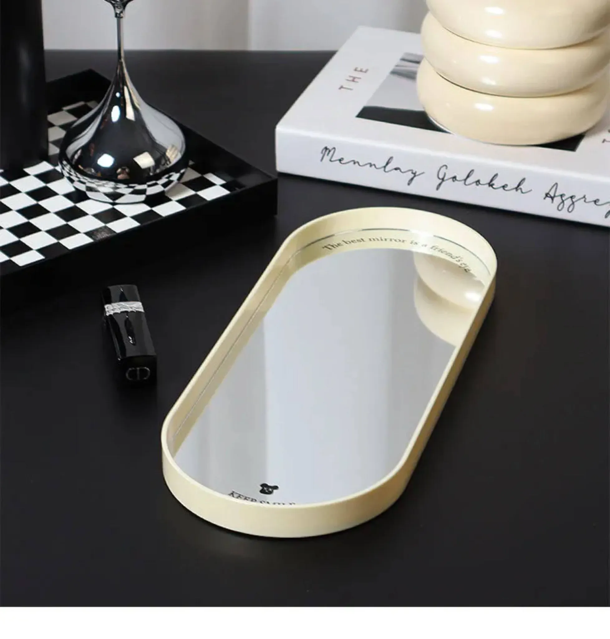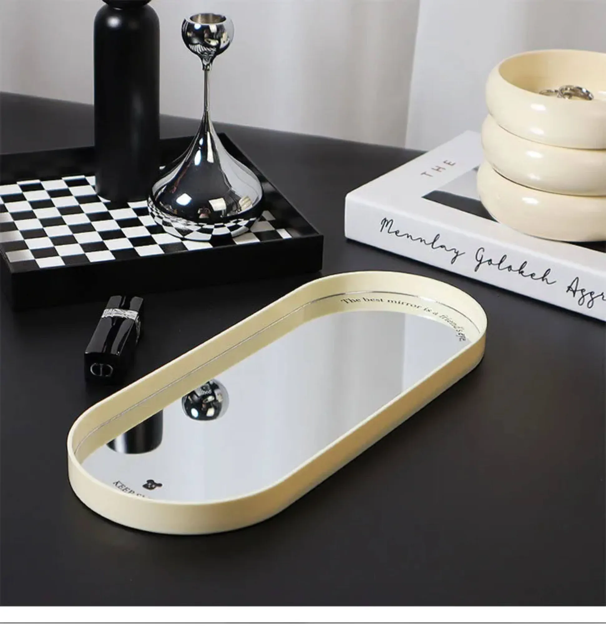 DecoHub Scandinavian Oval Mirror Tray – Elegant Storage Solution for Living Room & Entryway, Perfect for Cosmetics, Fragrances, and Key Organization
