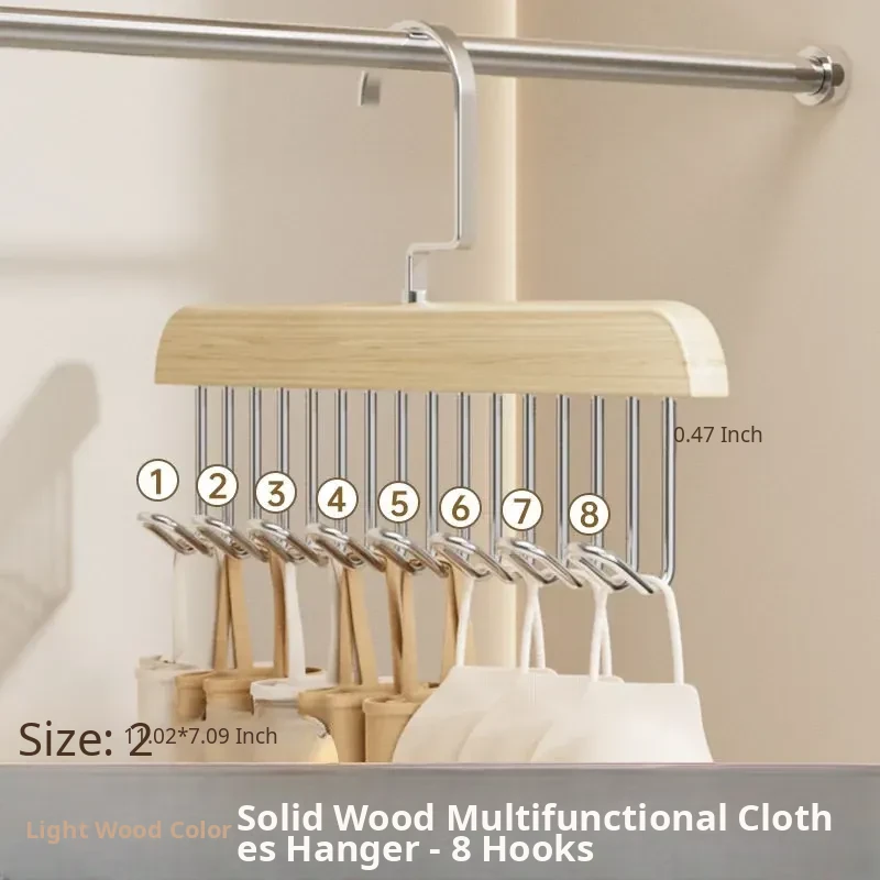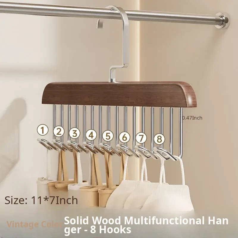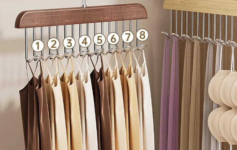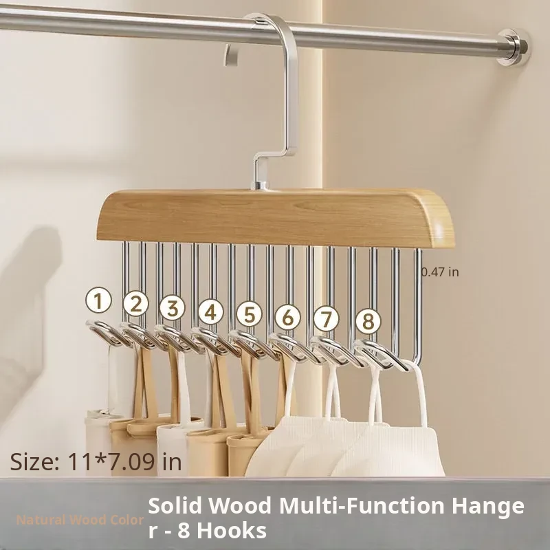 DecoHub Wooden Hook Hanger with 8 Hooks - Versatile and Rotatable Storage Solution for Home, Perfect for Organizing Bras, Straps, and Accessories in Style!