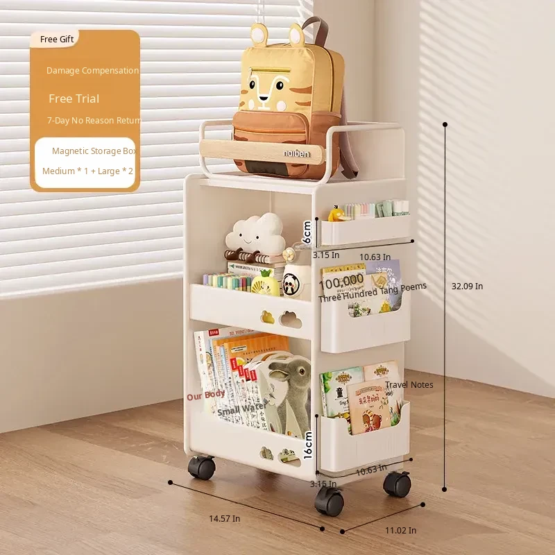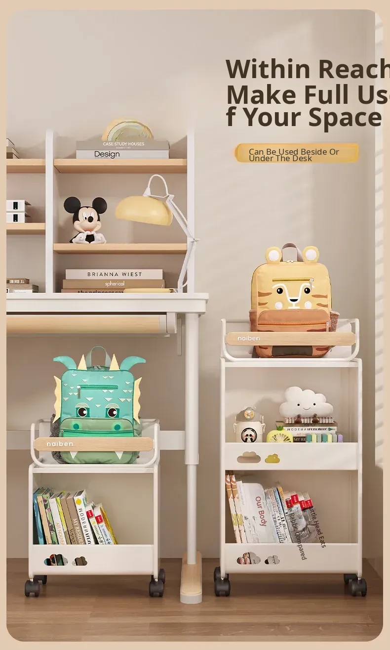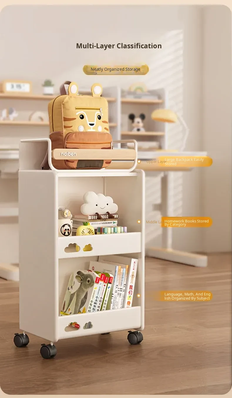 Durable Bookshelf Trolley for Middle School Students - Compact Storage Rack for Toys and Supplies, Ideal for Under-Desk Organization