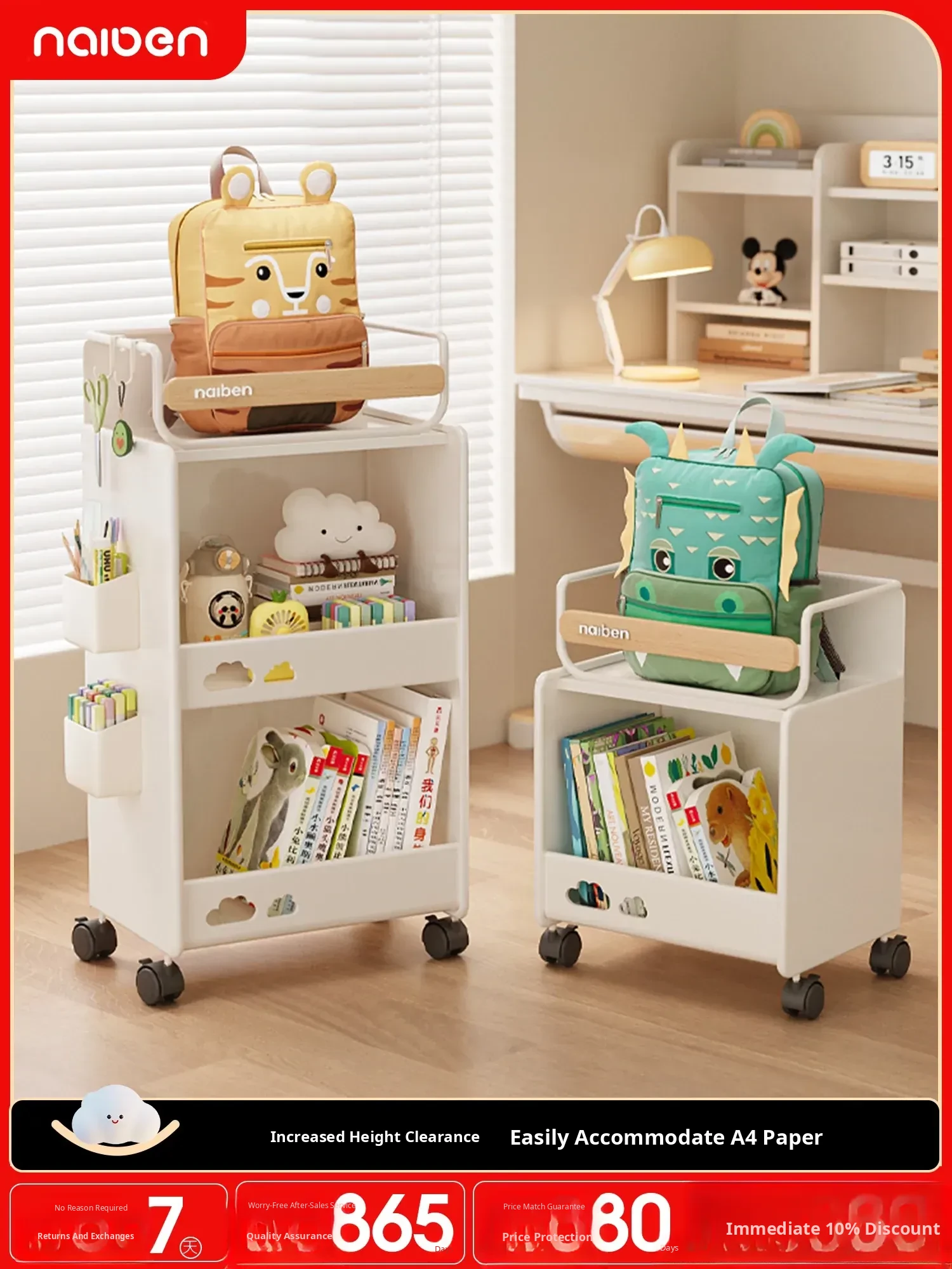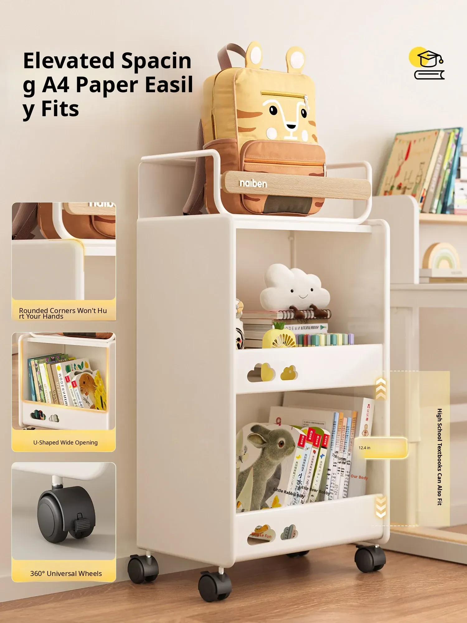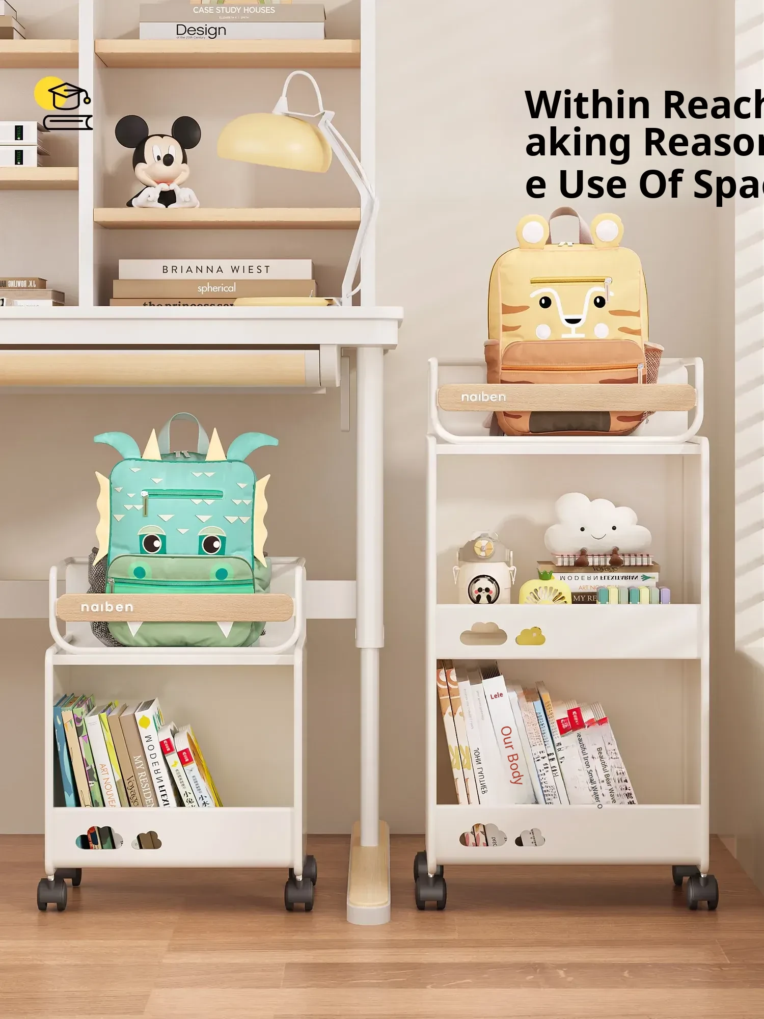 Durable Bookshelf Trolley for Middle School Students - Compact Storage Rack for Toys and Supplies, Ideal for Under-Desk Organization