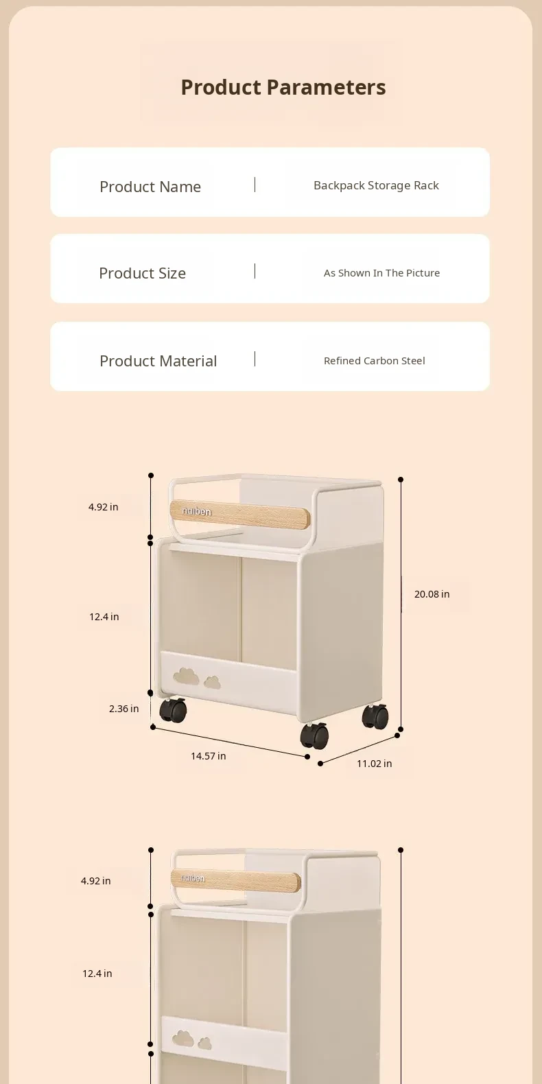 Warm White 2-Tier [50kg Heavy-Duty, Large Textbook Capacity Backpack] Full Carbon Steel / Sturdy and Durable