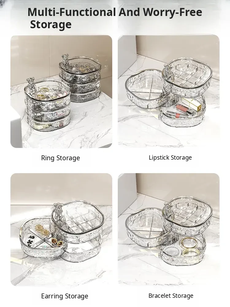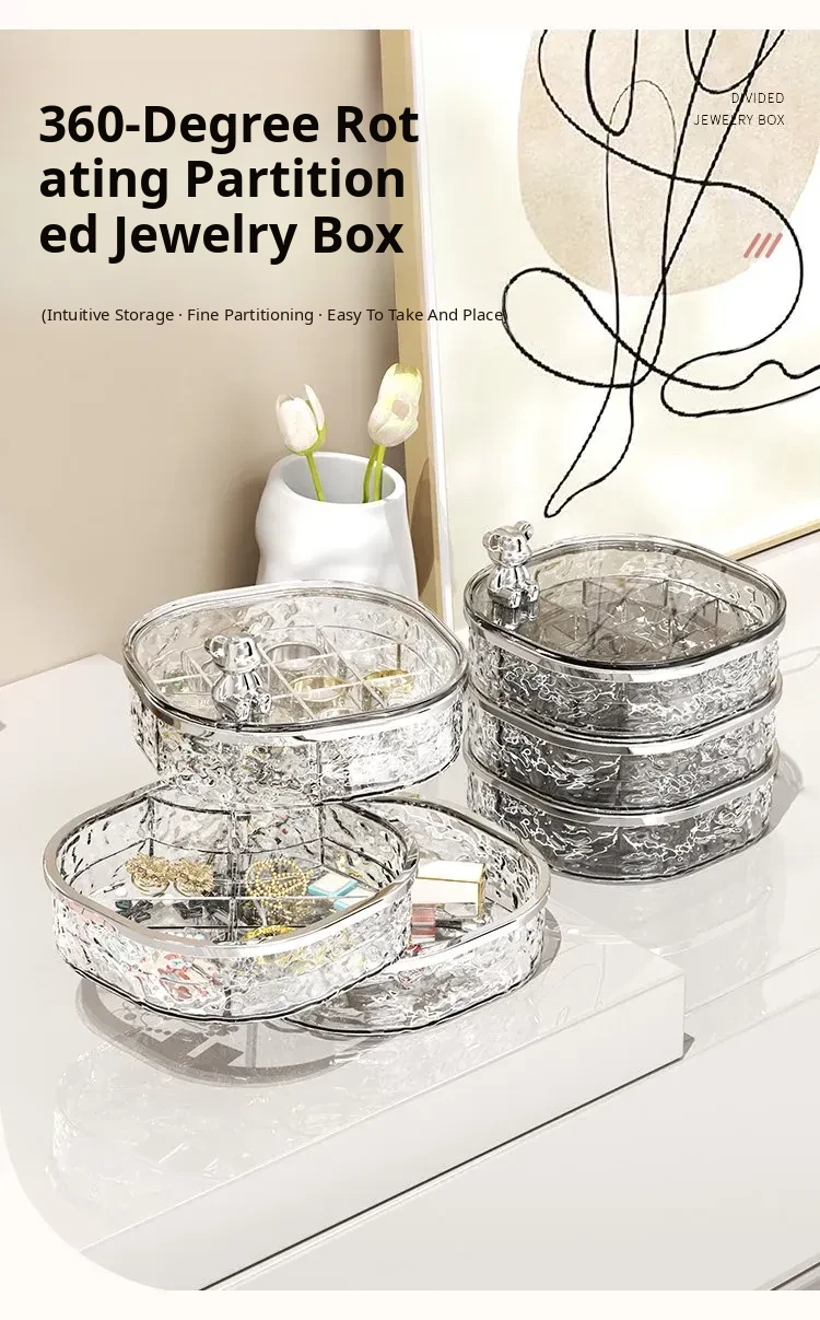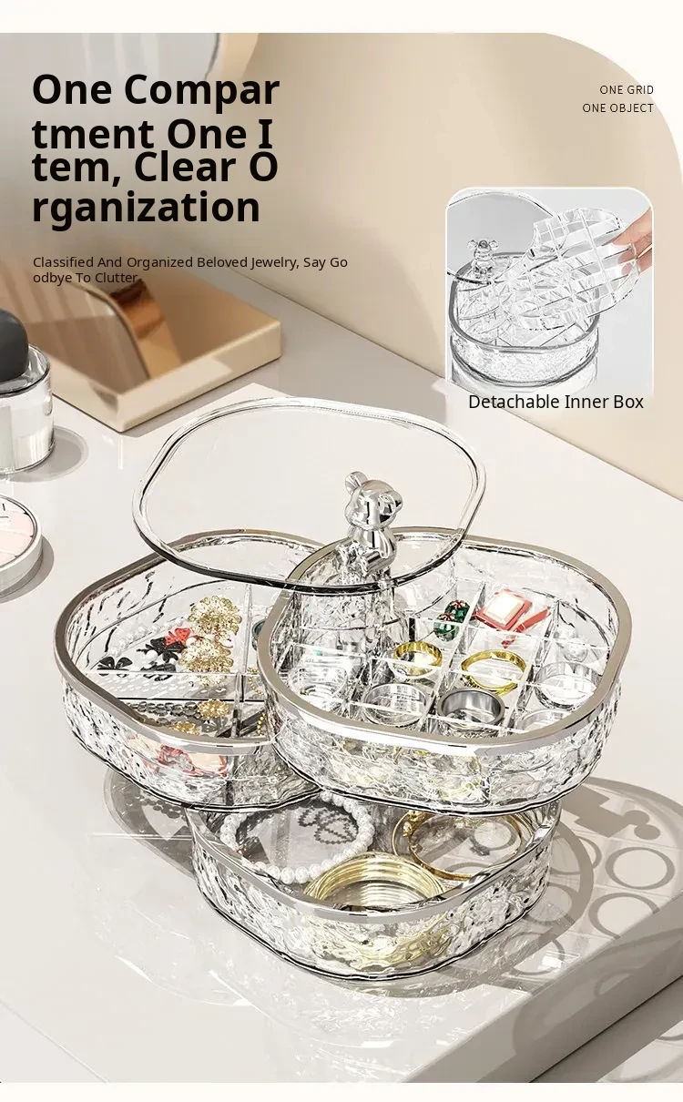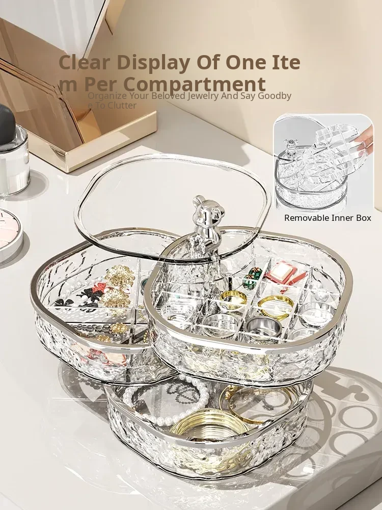 Elegant Multi-Layer Jewelry Box with Dividers - Stylish Rotating Organizer for Earrings, Hair Clips, and Accessories - Perfect for Hair Ties and Hairpins Storage