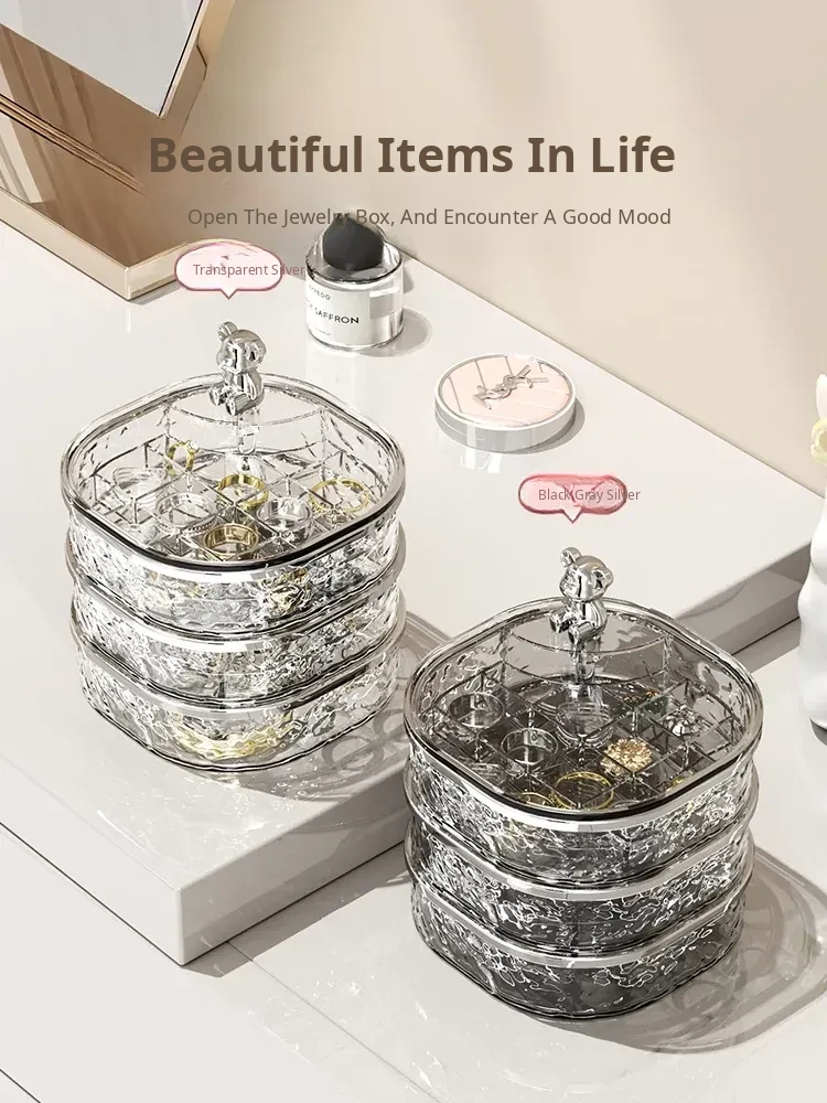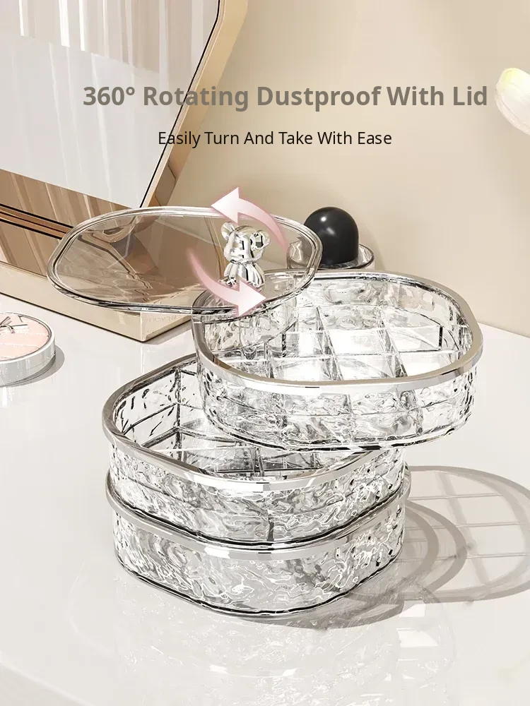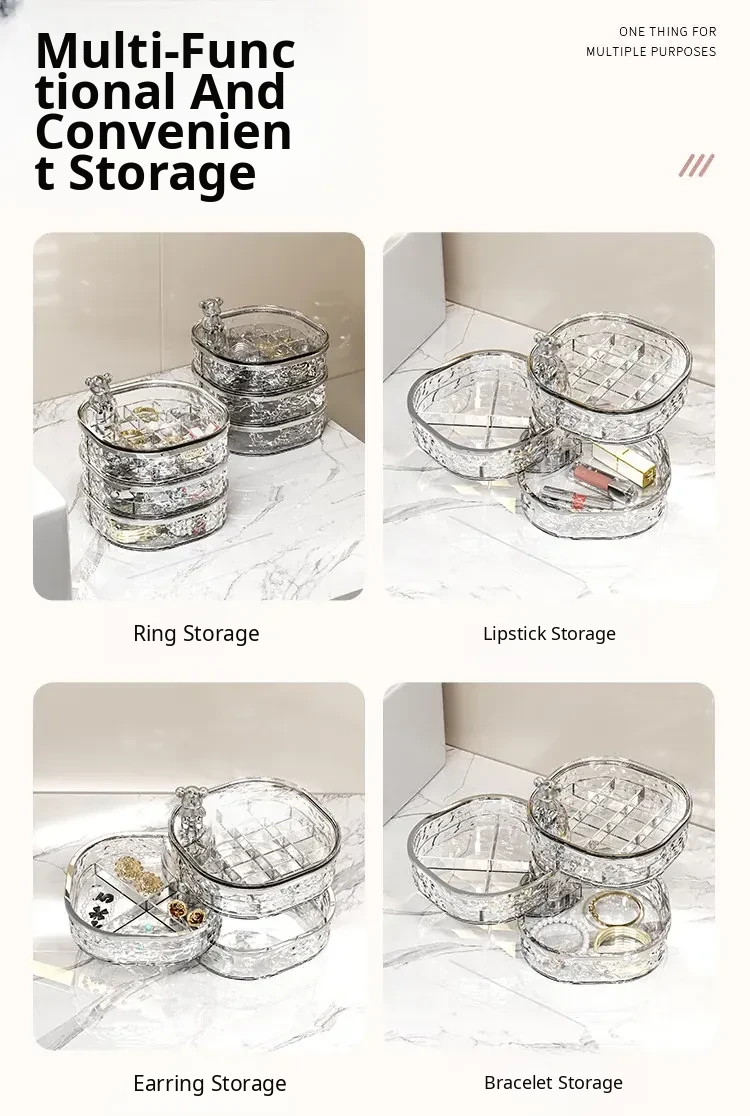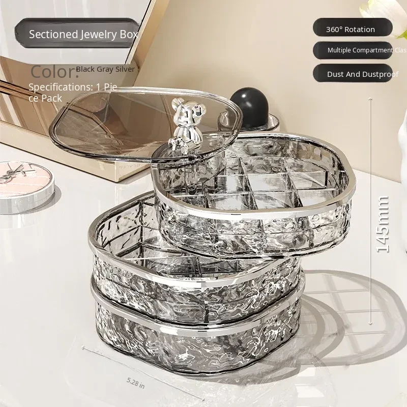 Elegant Multi-Layer Jewelry Box with Dividers - Stylish Rotating Organizer for Earrings, Hair Clips, and Accessories - Perfect for Hair Ties and Hairpins Storage