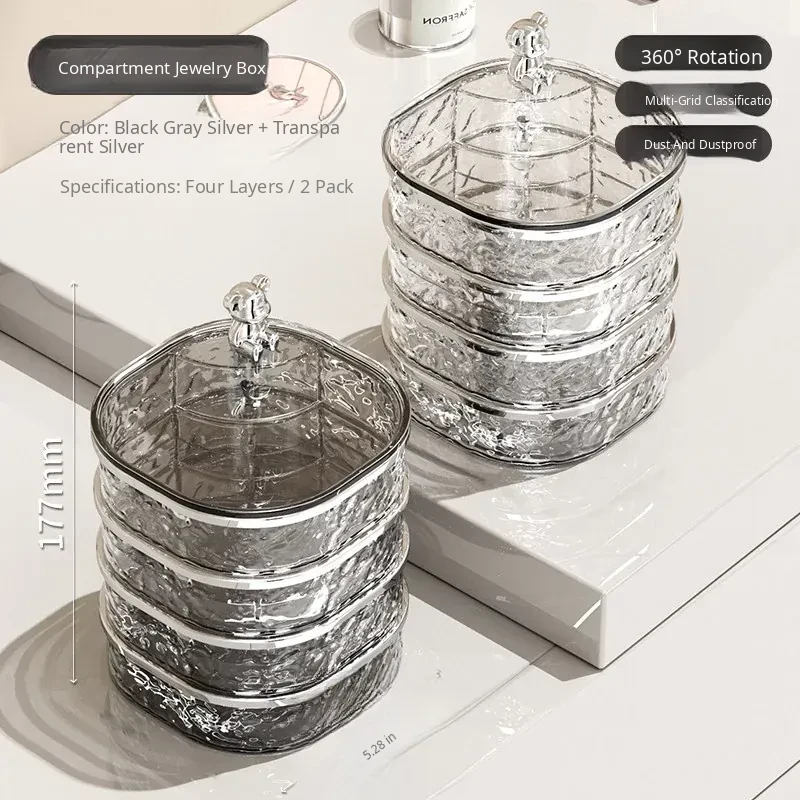 [Transparent Silver] 4 Layers with Compartments⭐Rotatable