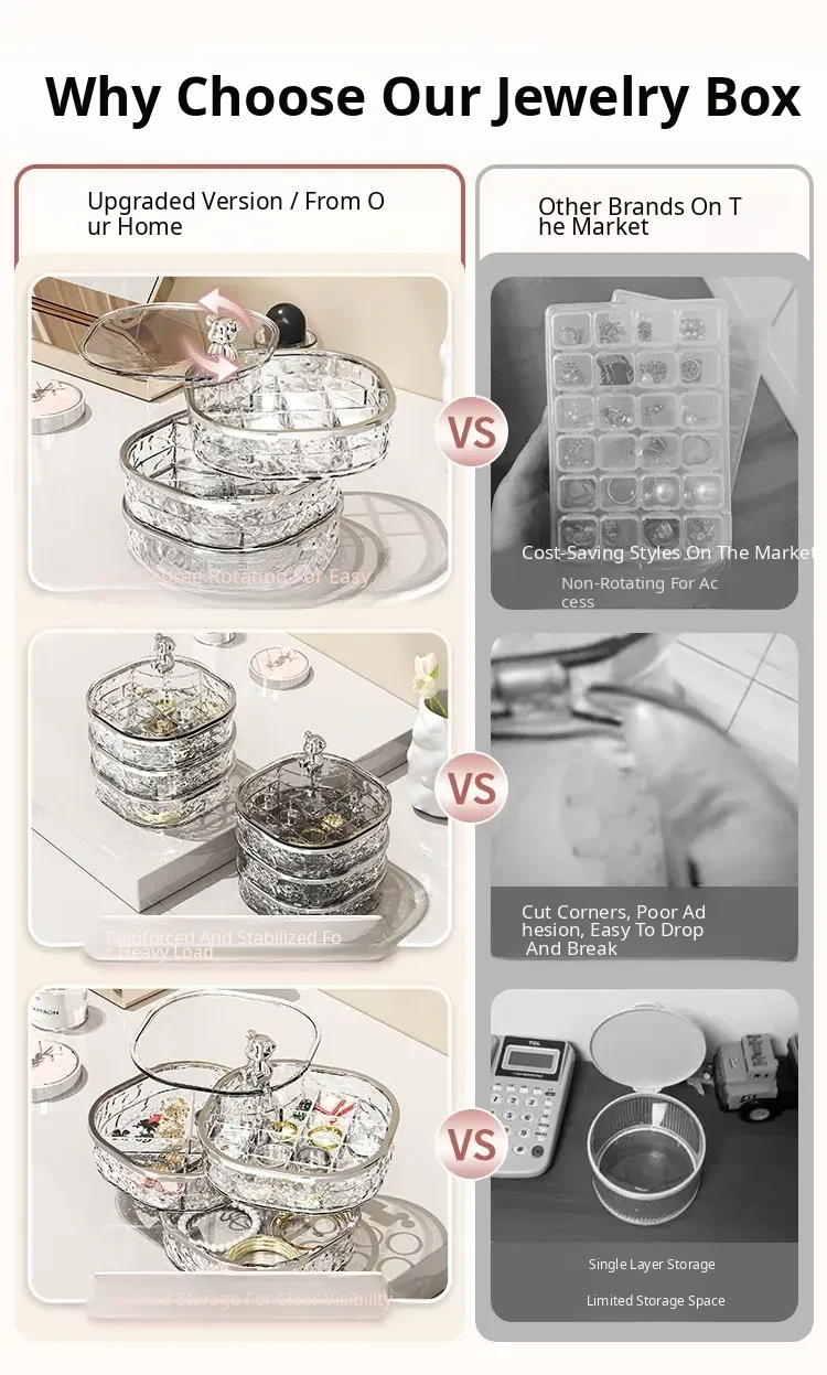[Transparent Silver] 3 Layers with Compartments⭐Rotatable