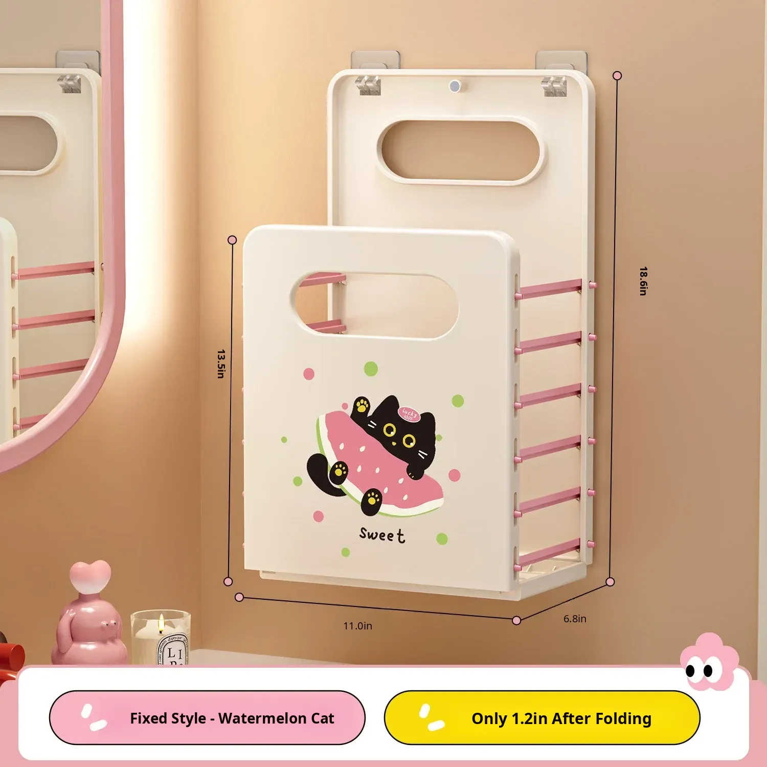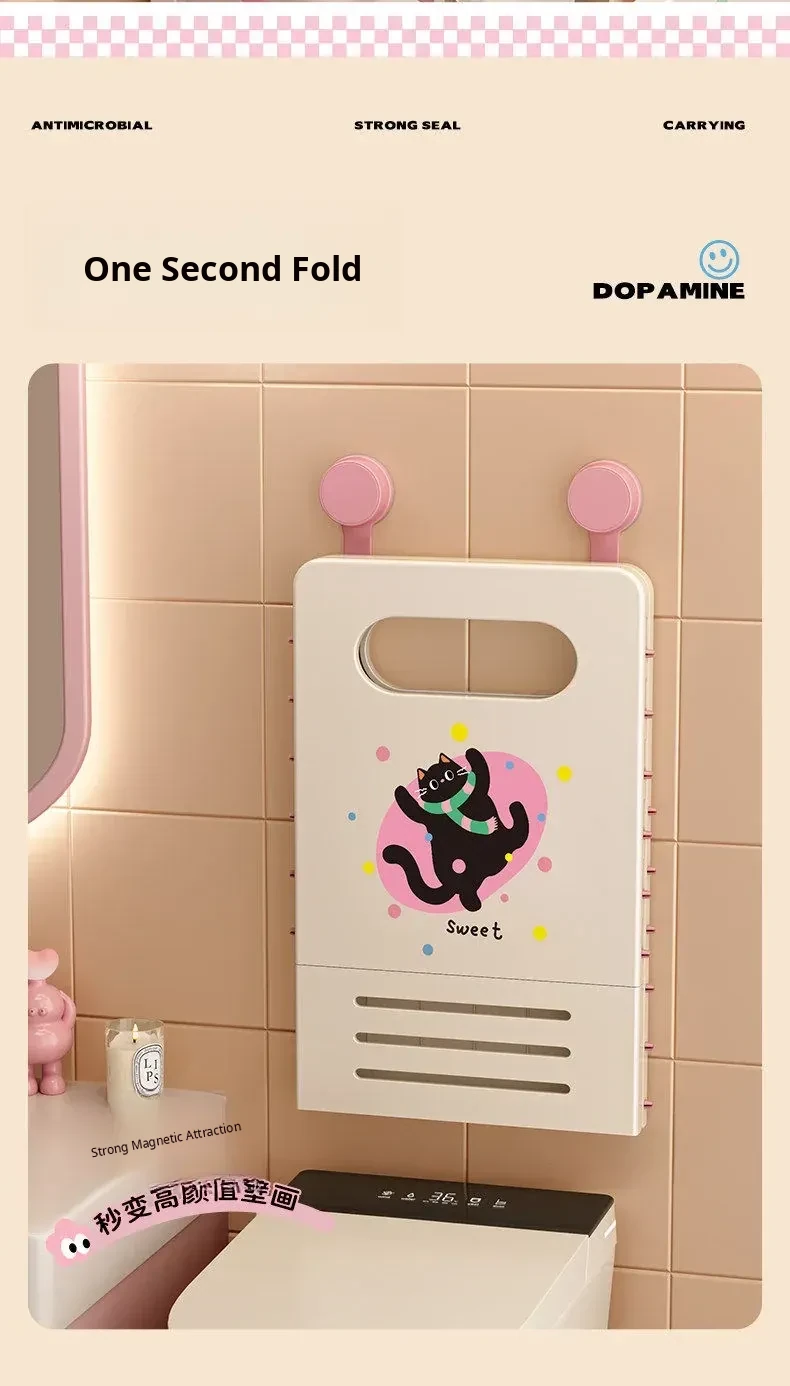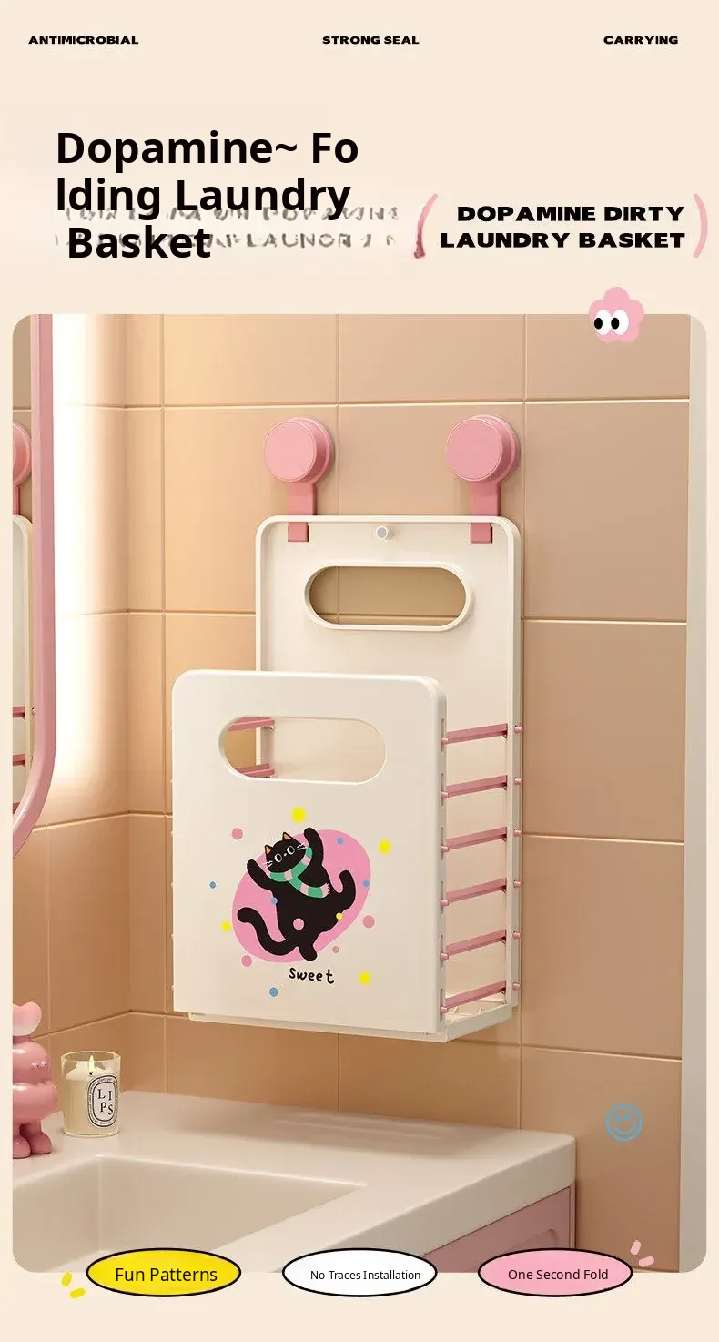 Foldable Wall-Mounted Laundry Basket with Suction Cups - Ideal for Dirty Clothes Storage in Bathroom and Laundry Room, Space-Saving Design for Convenient Organization
