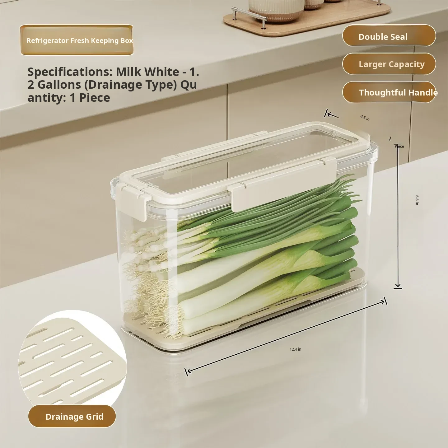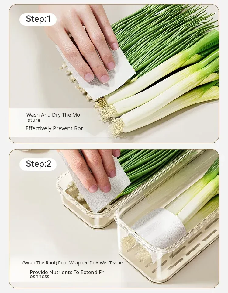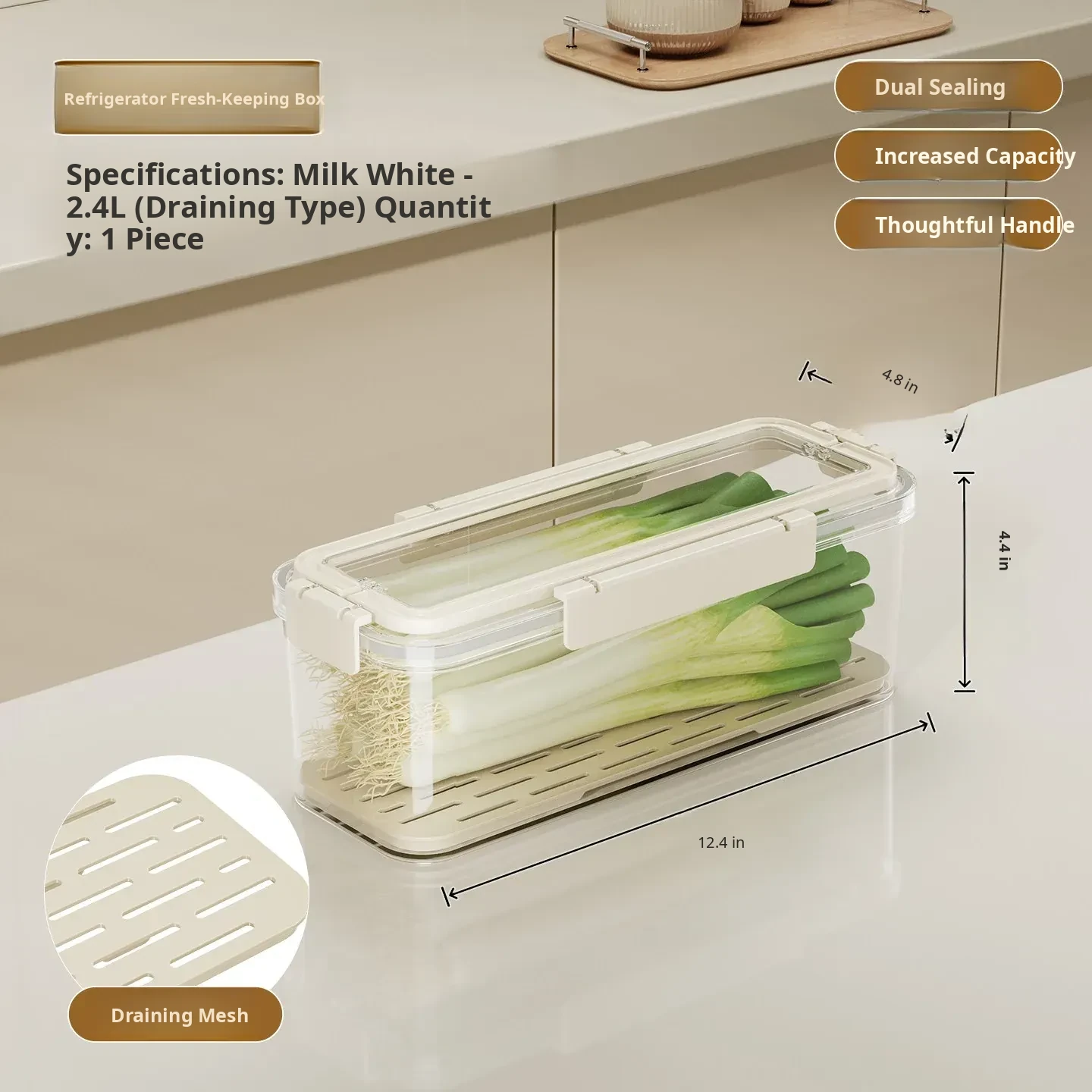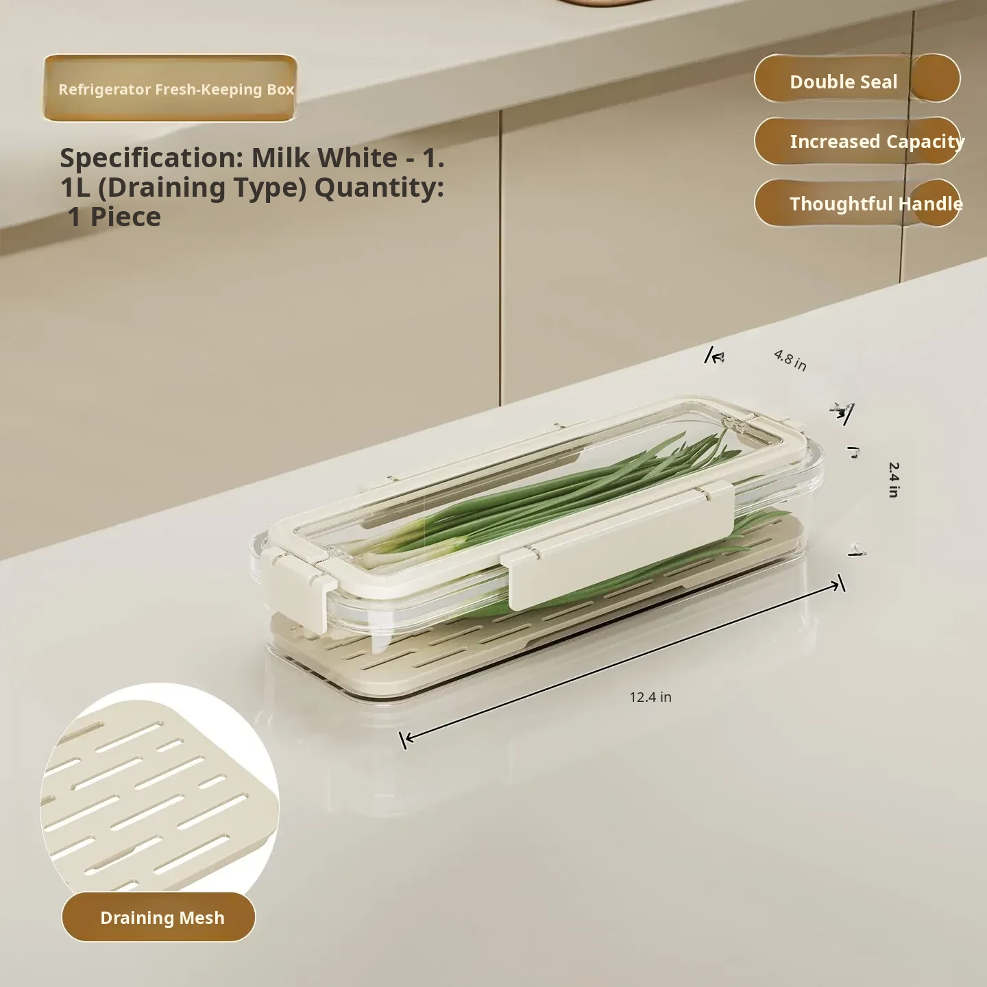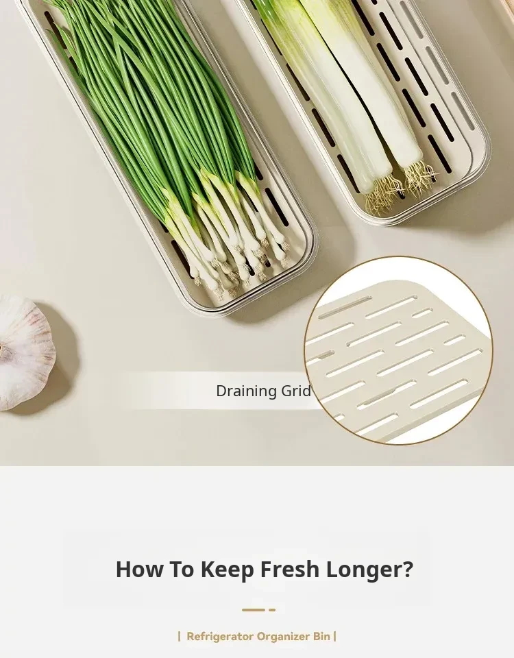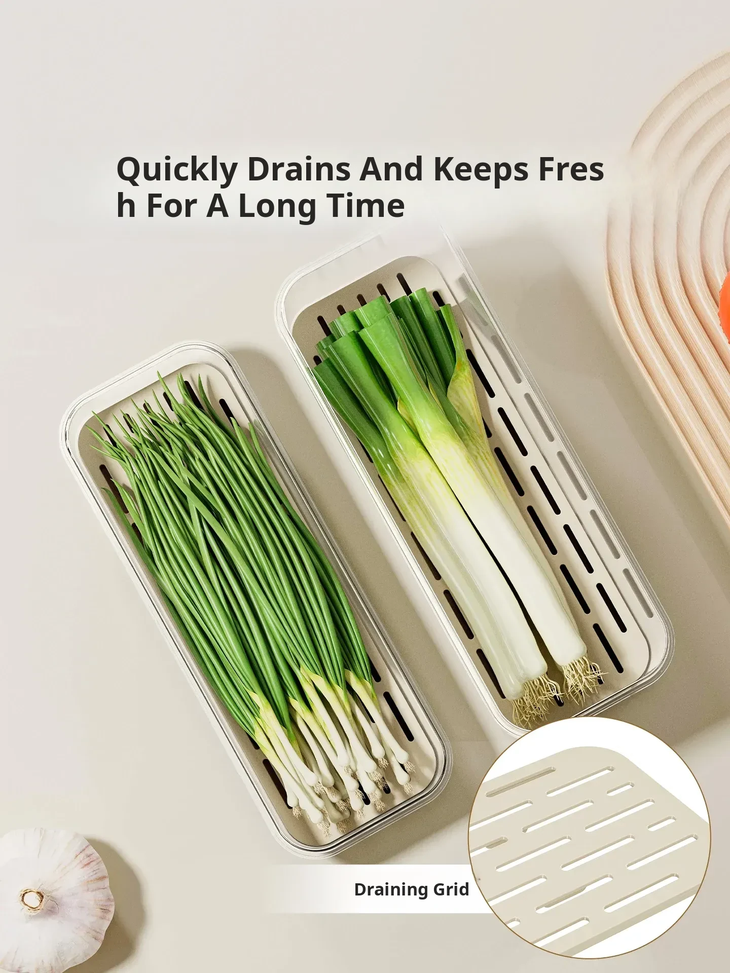 Food-Grade Freshness Keeper for Green Onions, Ginger, and Garlic - Stackable Sealed Storage Box for Cilantro and Leeks with Draining Design - Perfect Kitchen Organizer for Your Refrigerator
