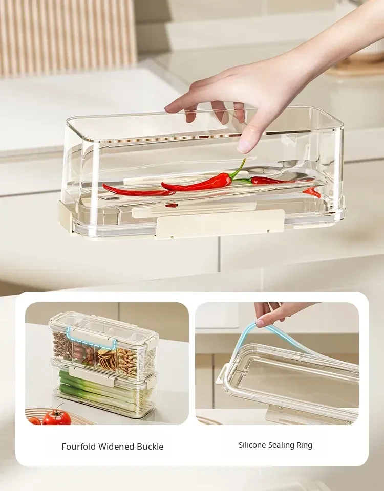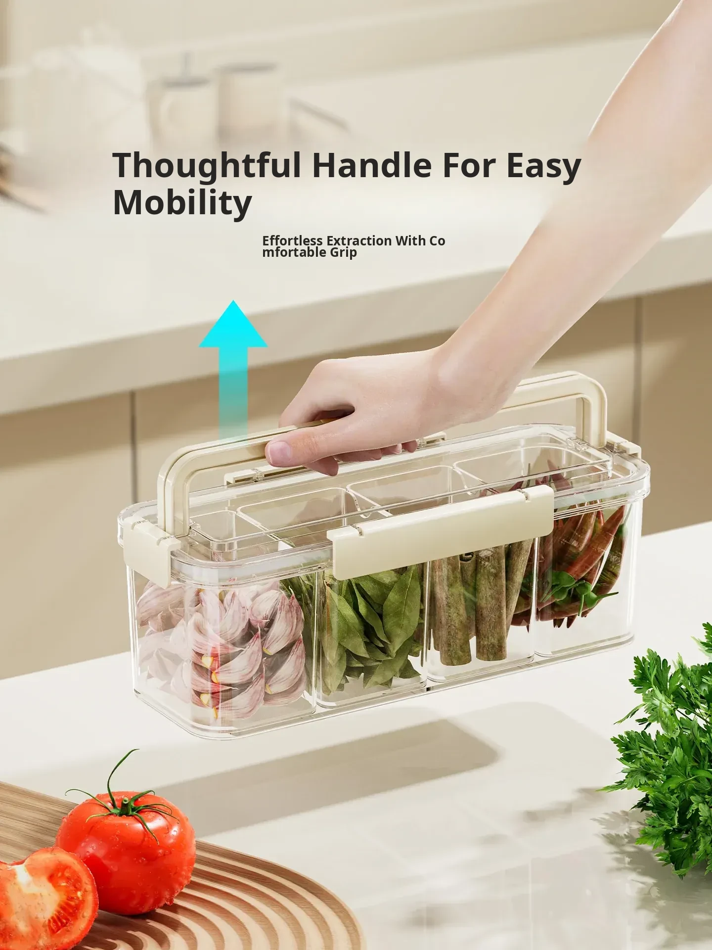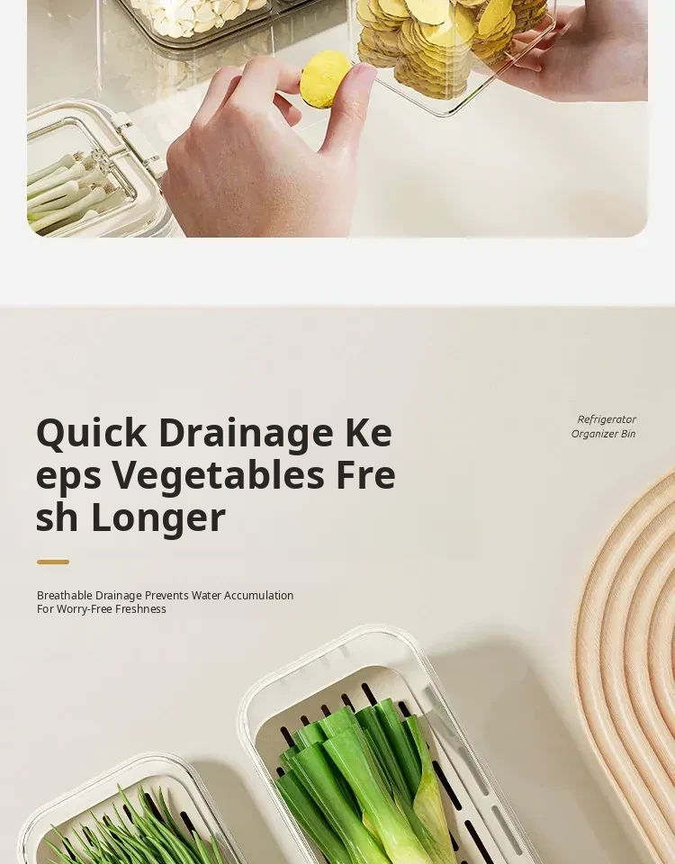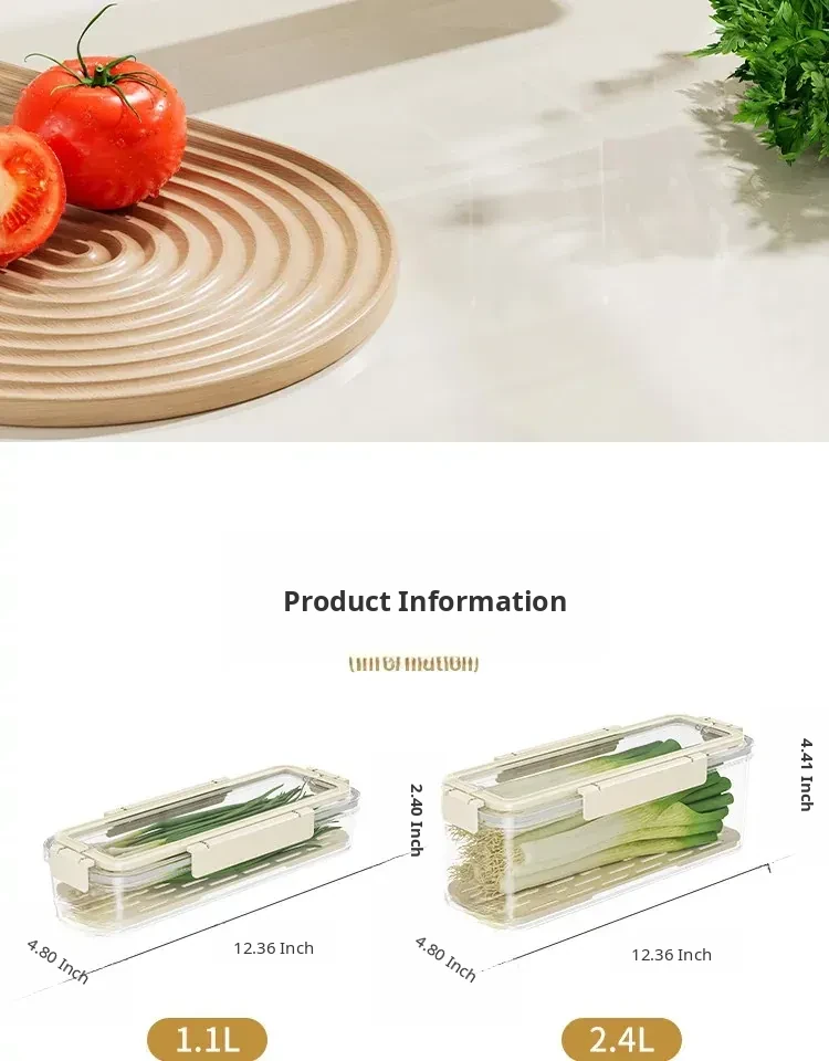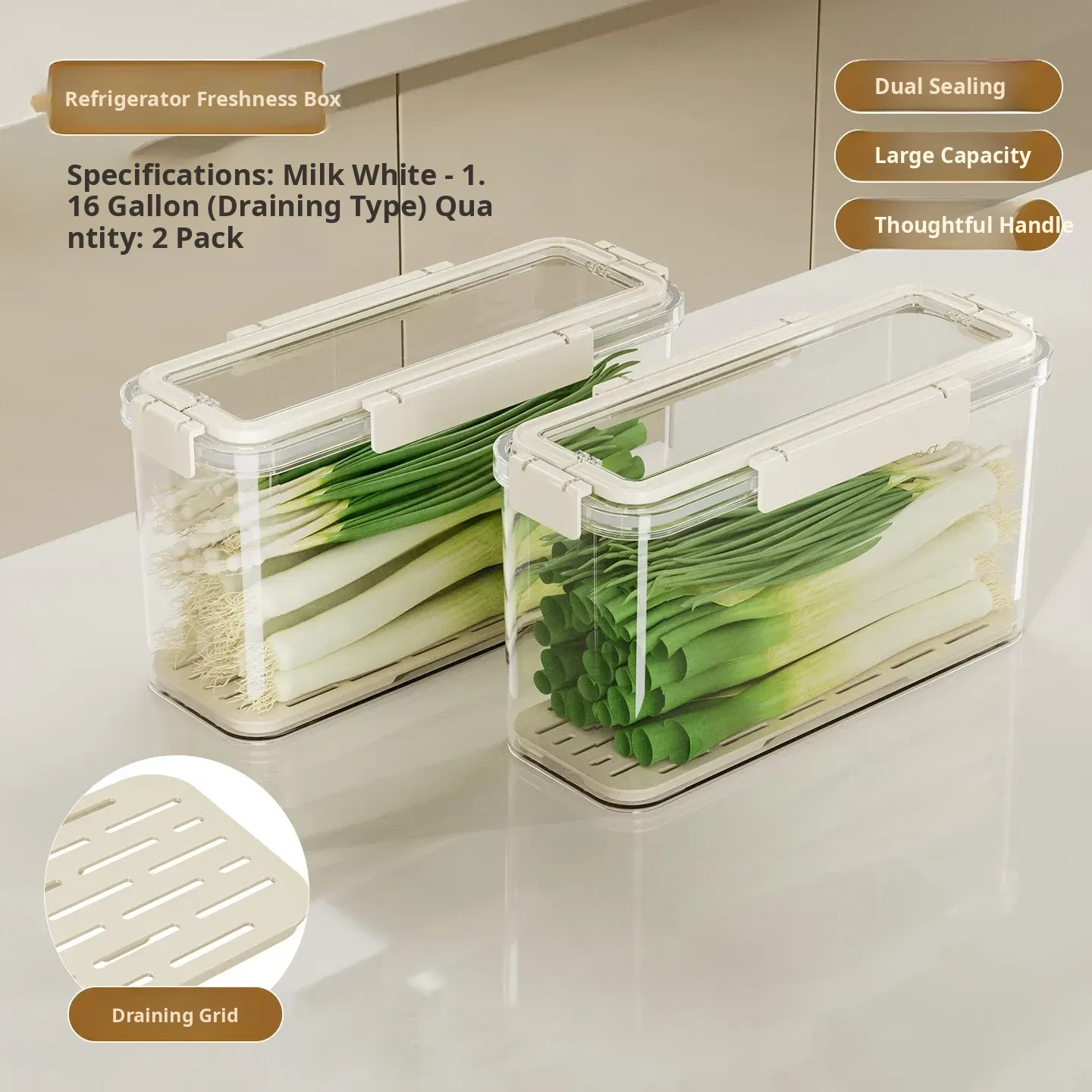 Food-Grade Freshness Keeper for Green Onions, Ginger, and Garlic - Stackable Sealed Storage Box for Cilantro and Leeks with Draining Design - Perfect Kitchen Organizer for Your Refrigerator