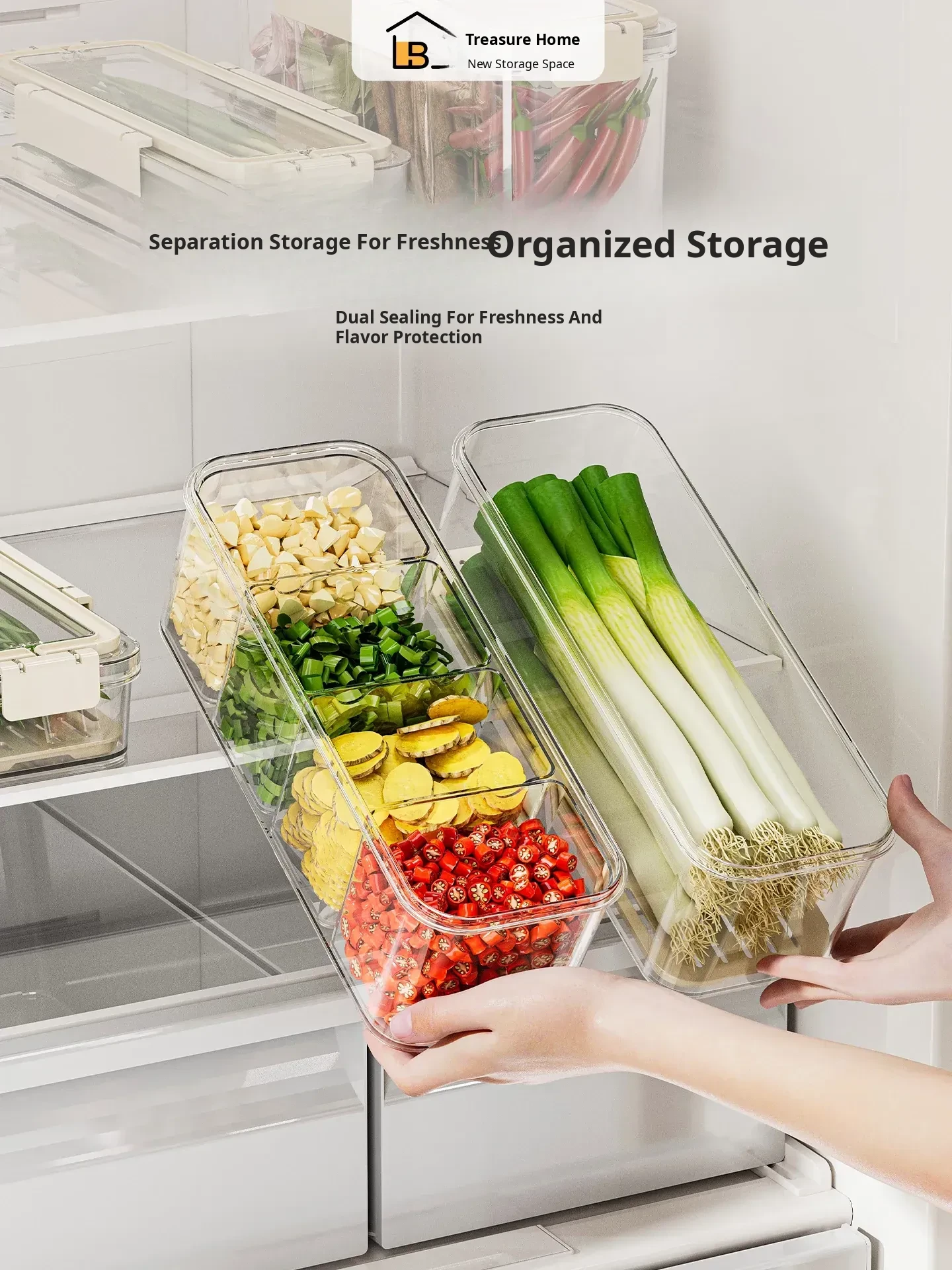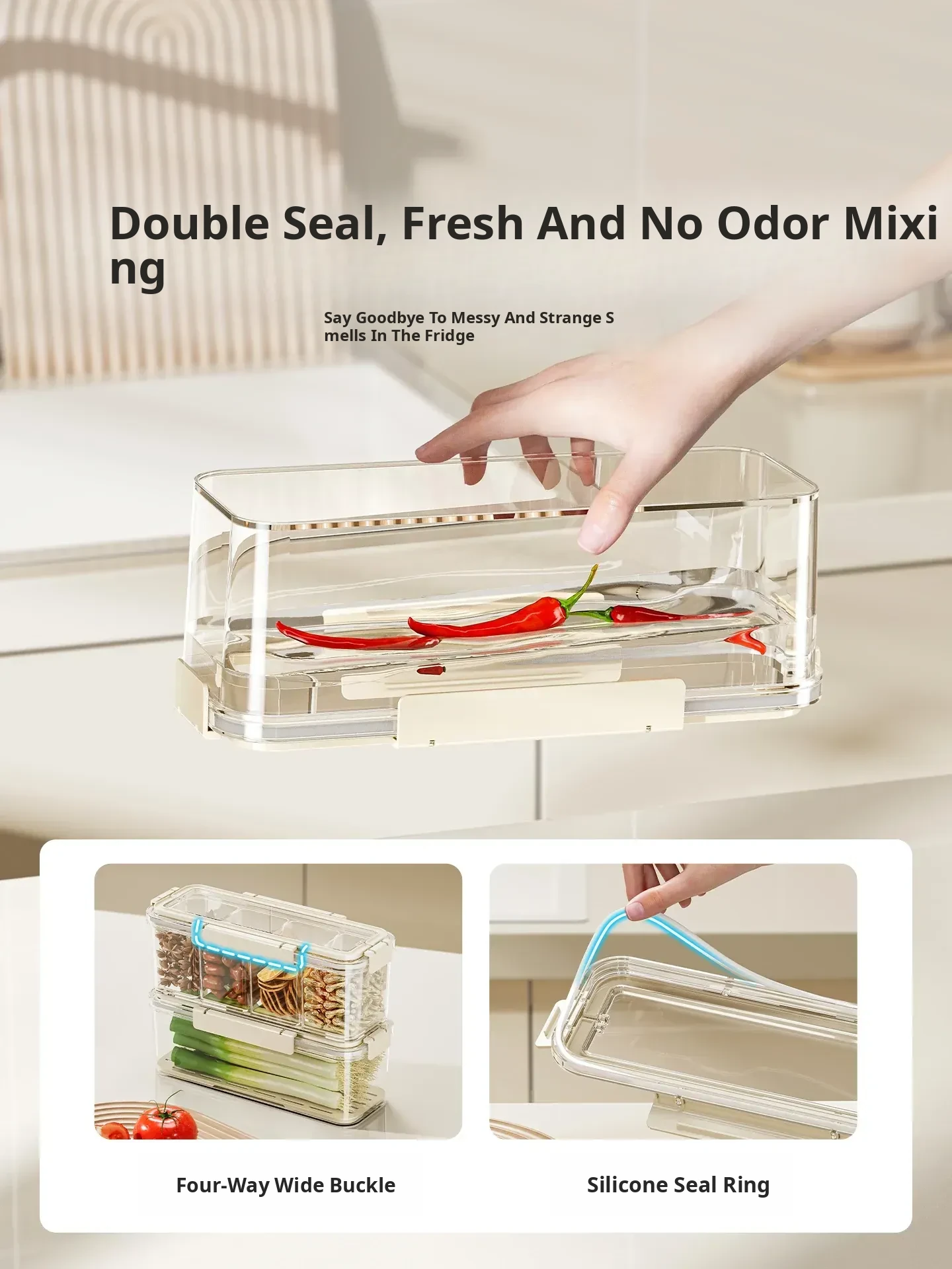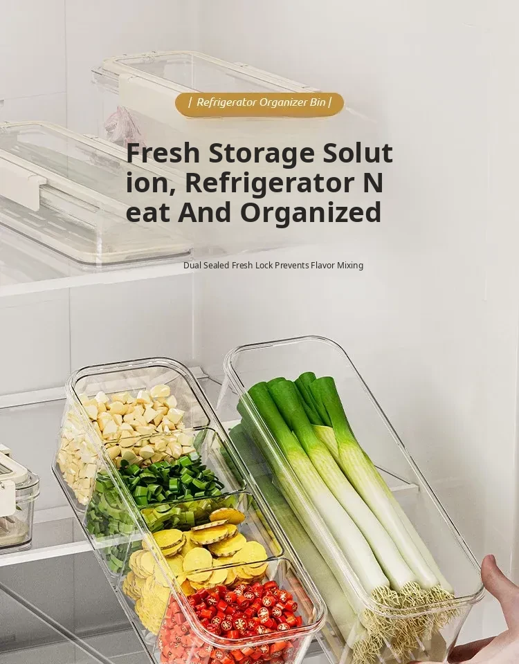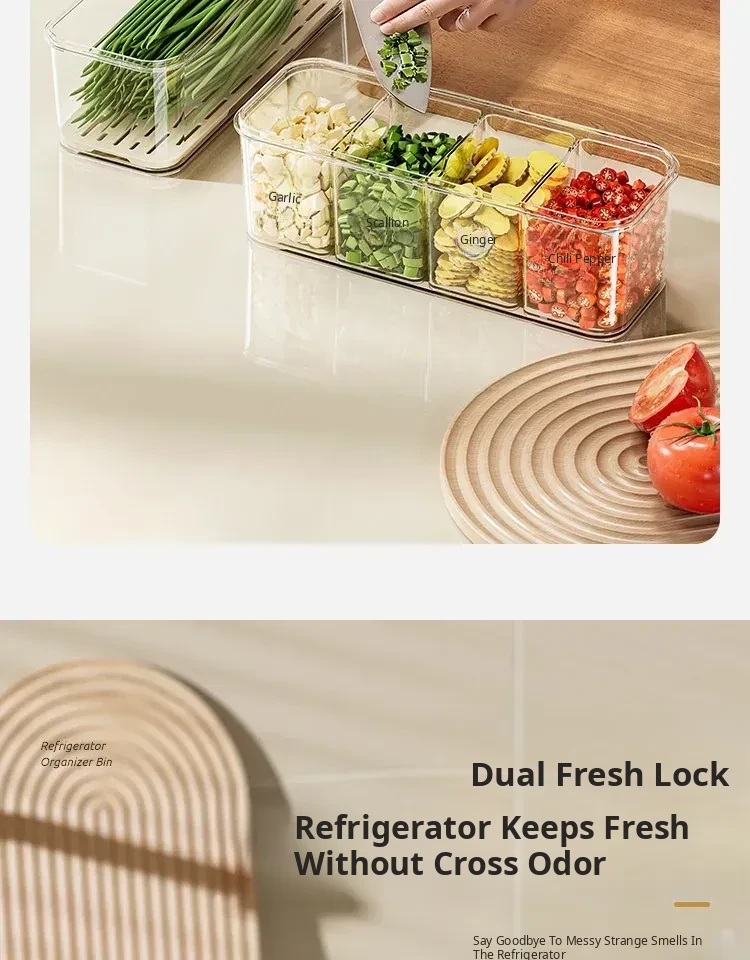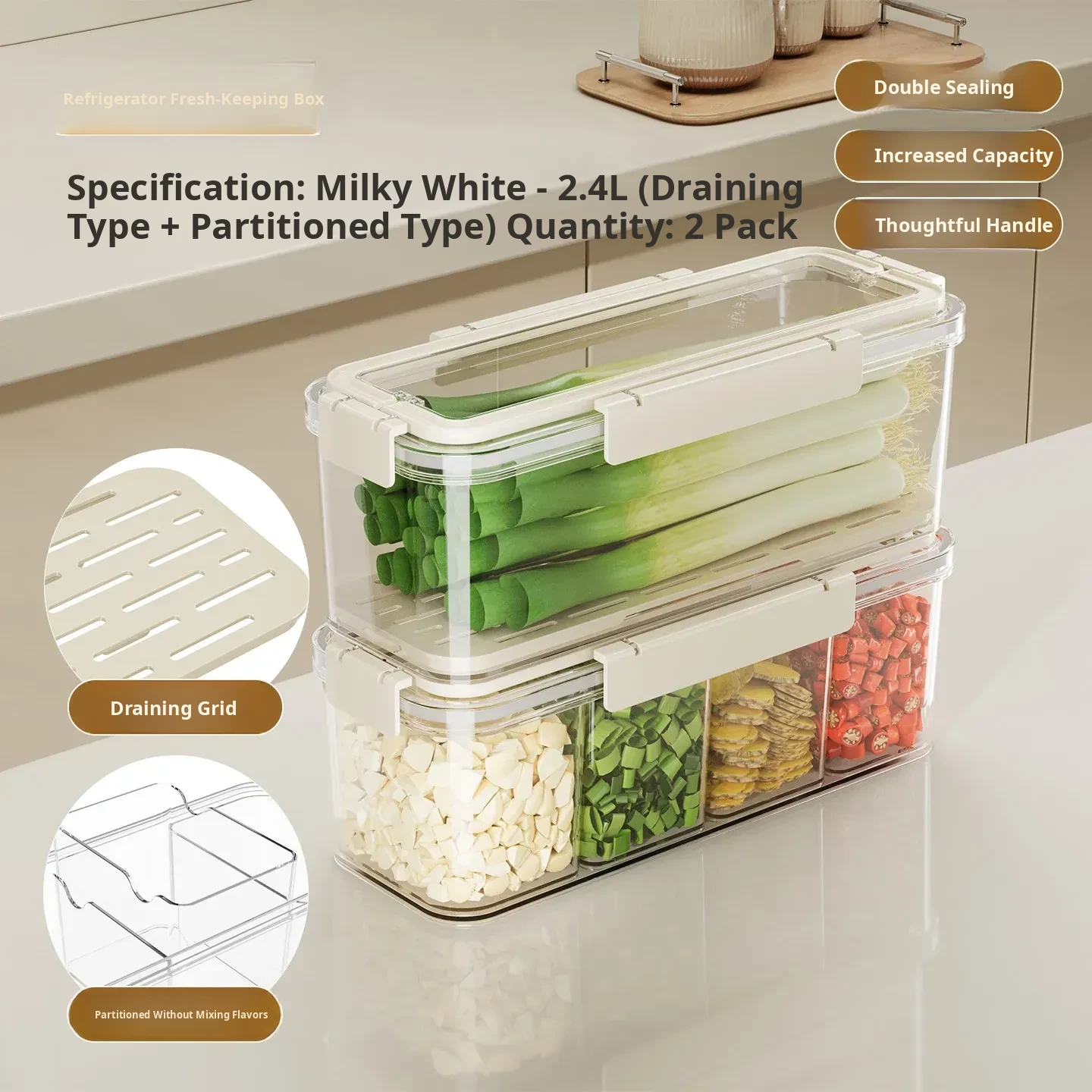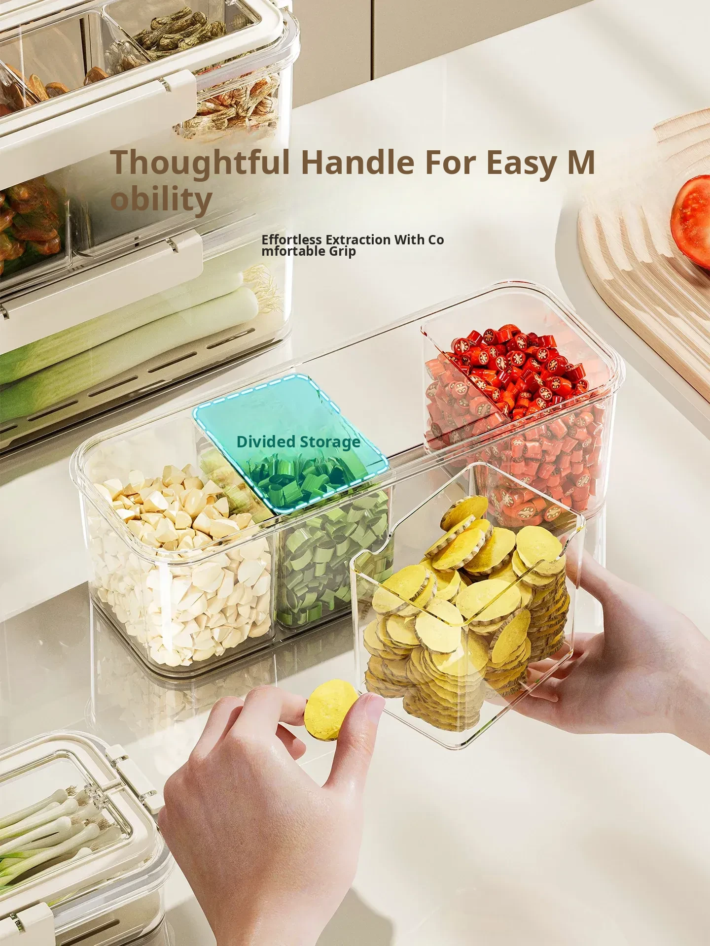Food-Grade Freshness Keeper for Green Onions, Ginger, and Garlic - Stackable Sealed Storage Box for Cilantro and Leeks with Draining Design - Perfect Kitchen Organizer for Your Refrigerator